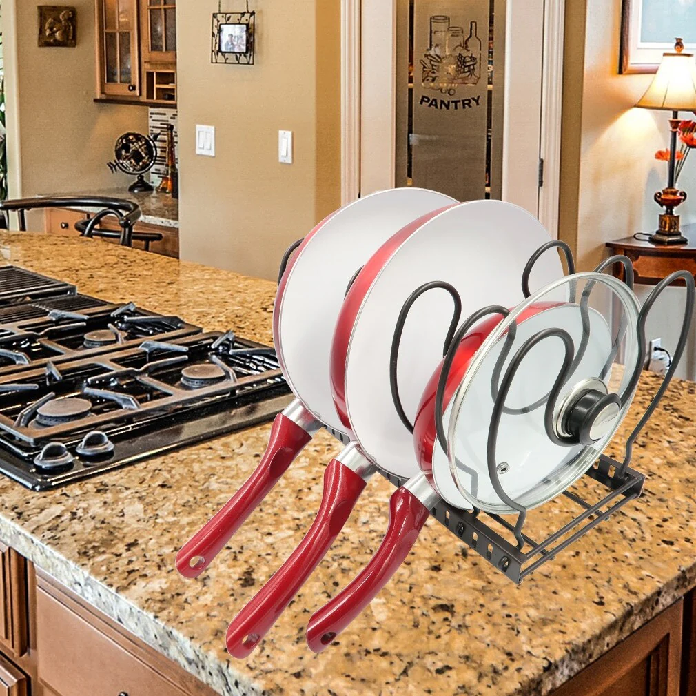 Evelots Pot/Pan/Lid Rack-Adjustable Widths-5 Divider-Powder Coated Carbon Steel – Single unit