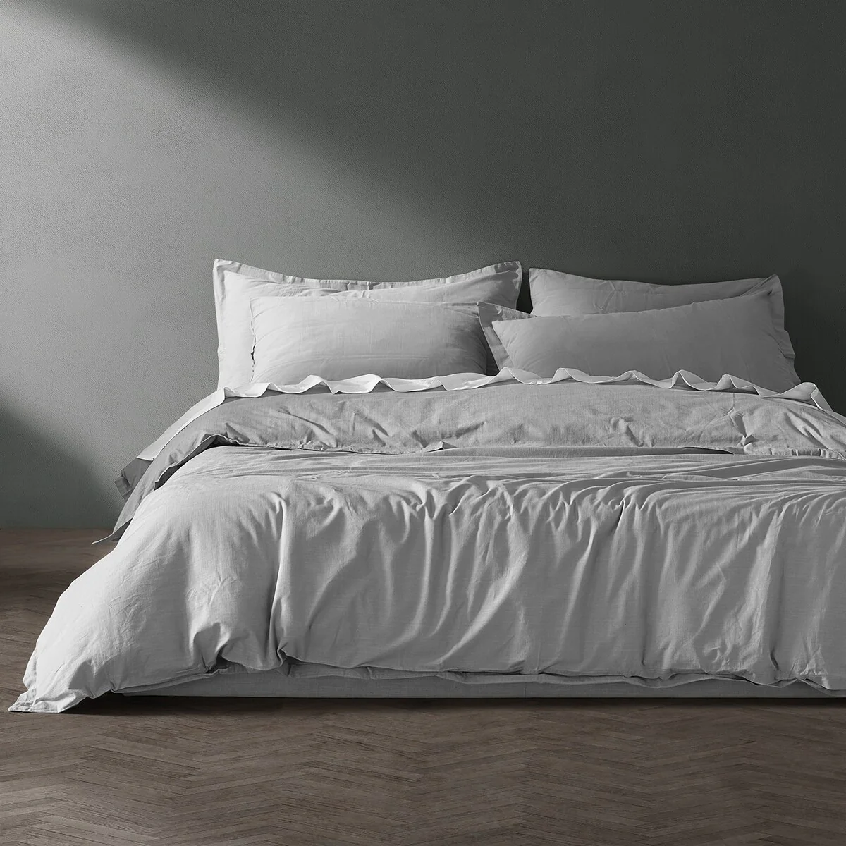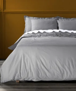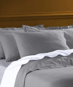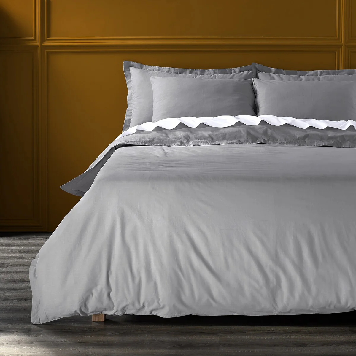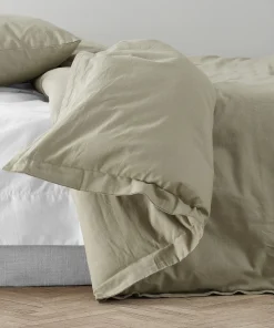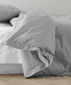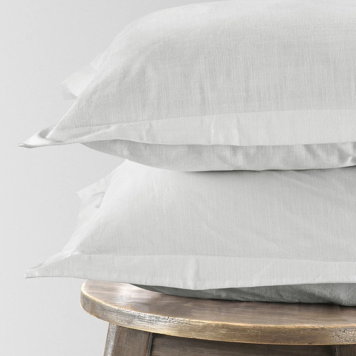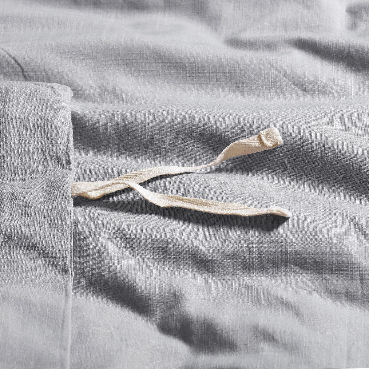 Our duvet set the standard for simple, sophistication. The modern colors and simple design speaks to the elegance that goes hand in hand with restraint. Made from 100% textured cotton this set is finished with a two-inch flange to bring a clean sophisticated style to your room. Included with each set is one duvet cover with button closures, two shams with zippered closures and two pillowcases with envelope closures. The duvet also features interior ties to keep your duvet insert in place.