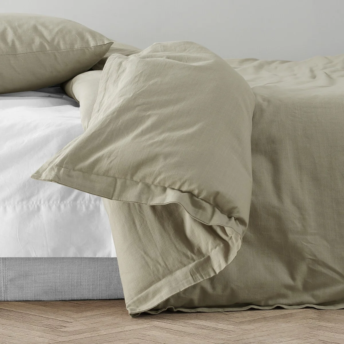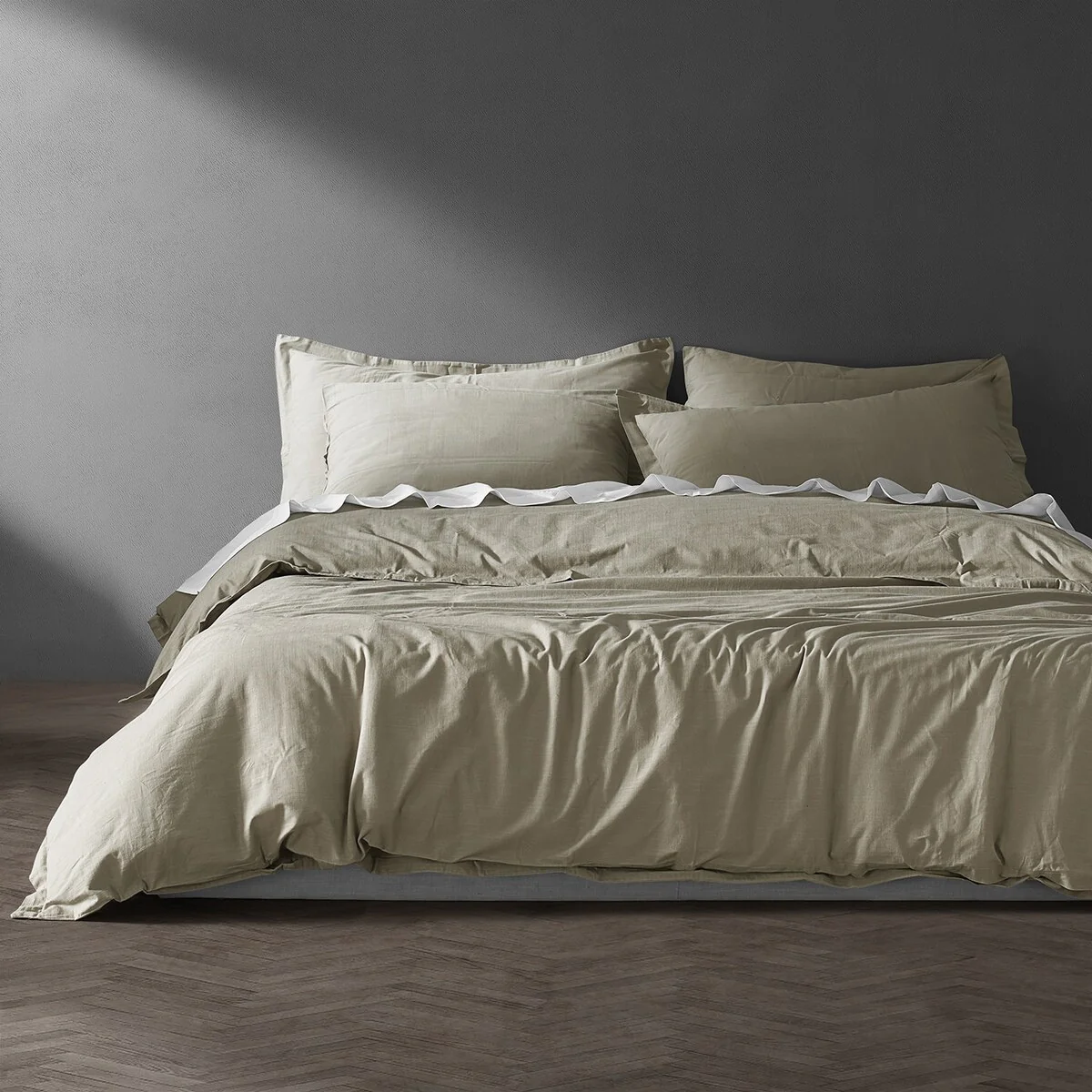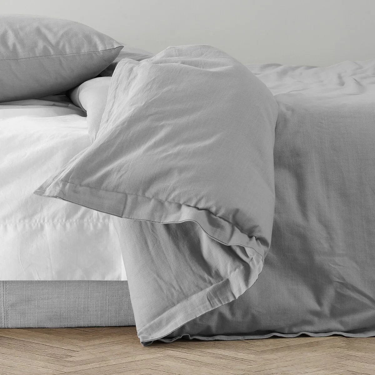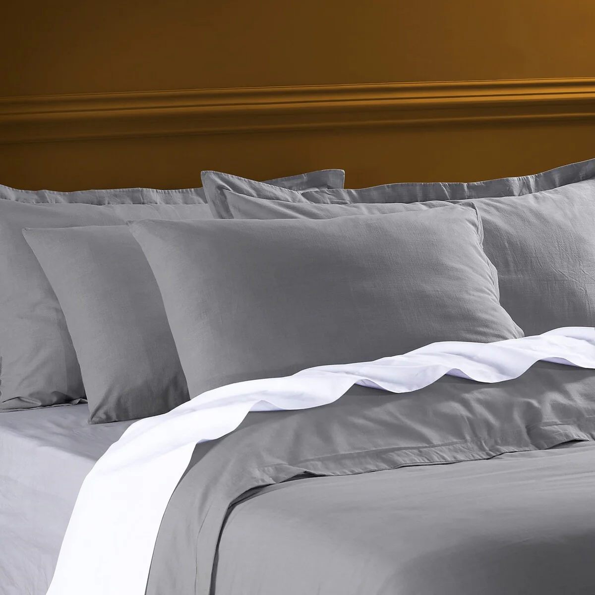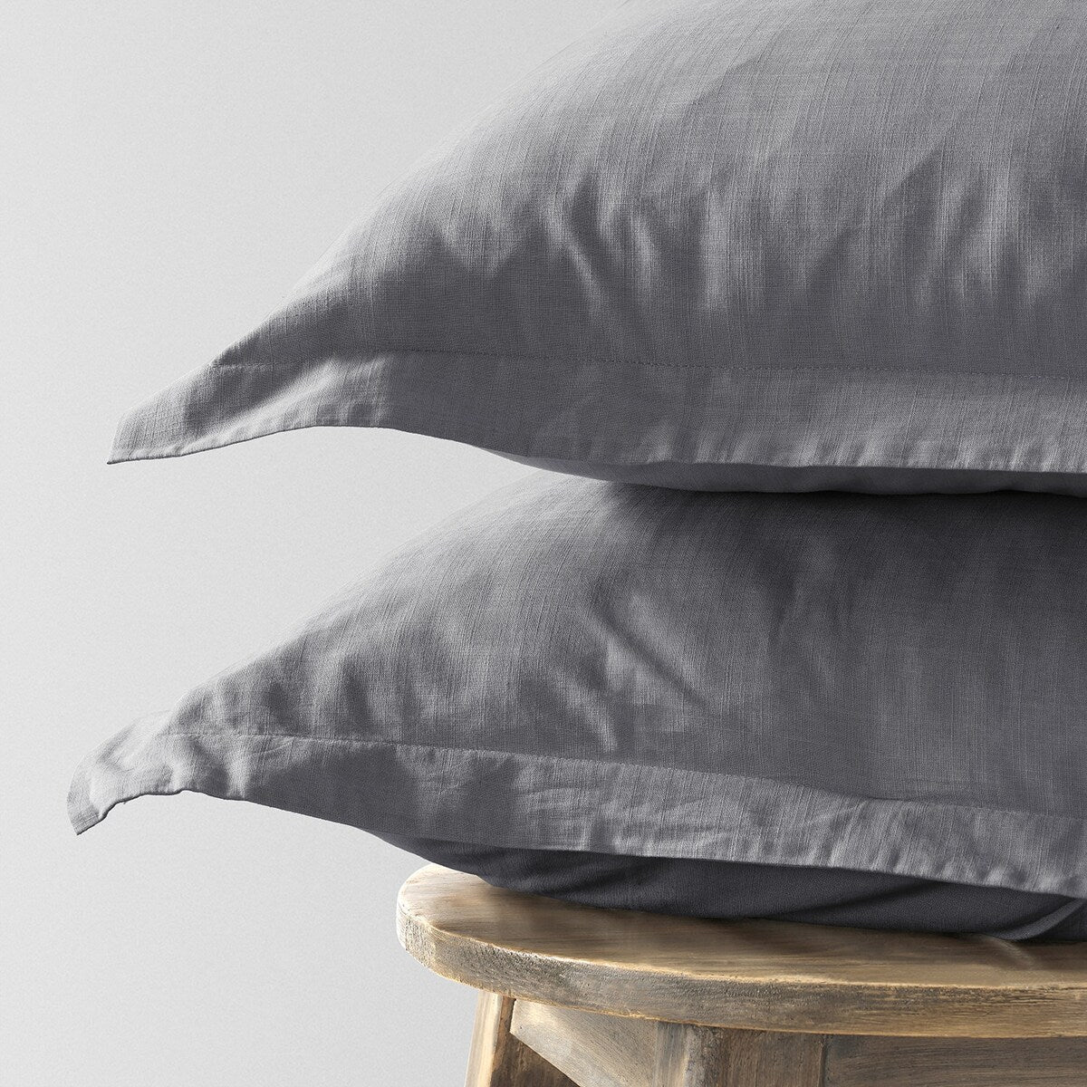Our duvet set the standard for simple, sophistication. The modern colors and simple design speaks to the elegance that goes hand in hand with restraint. Made from 100% textured cotton this set is finished with a two-inch flange to bring a clean sophisticated style to your room. Included with each set is one duvet cover with button closures, two shams with zippered closures and two pillowcases with envelope closures. The duvet also features interior ties to keep your duvet insert in place.
