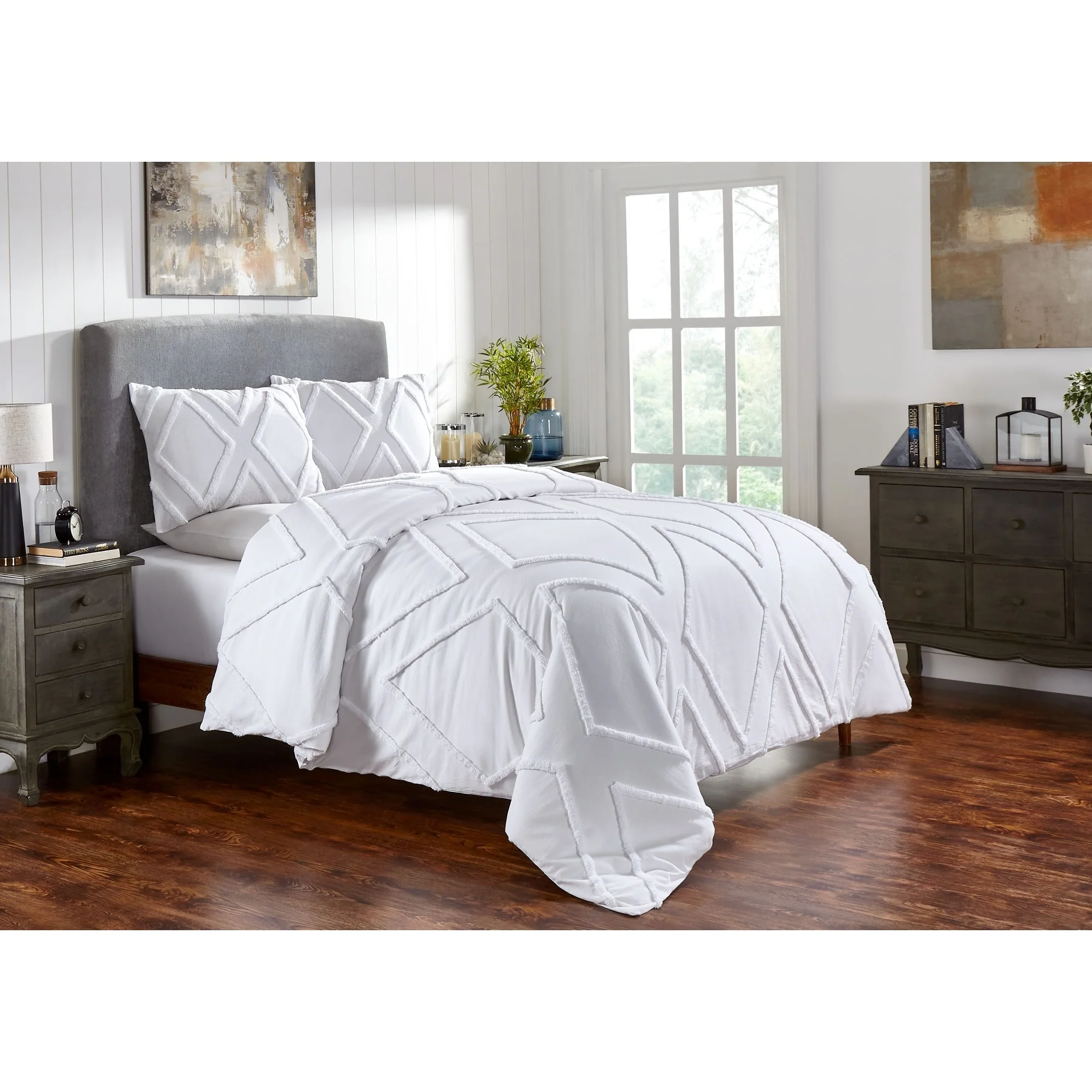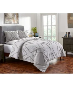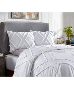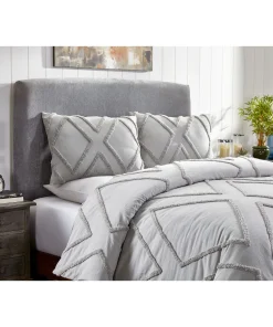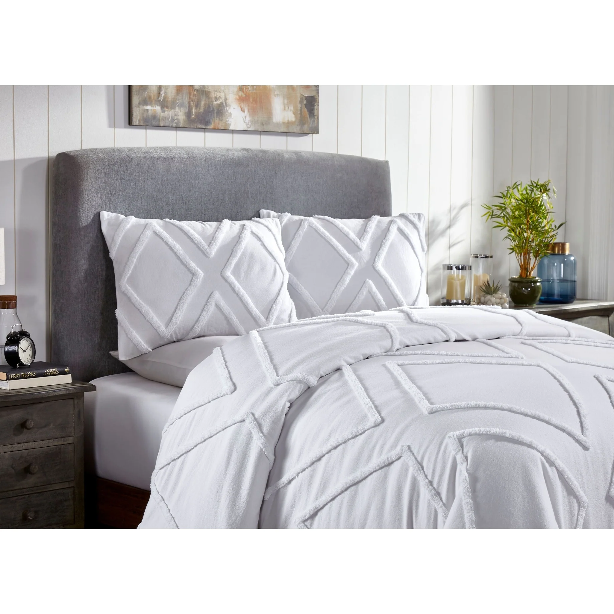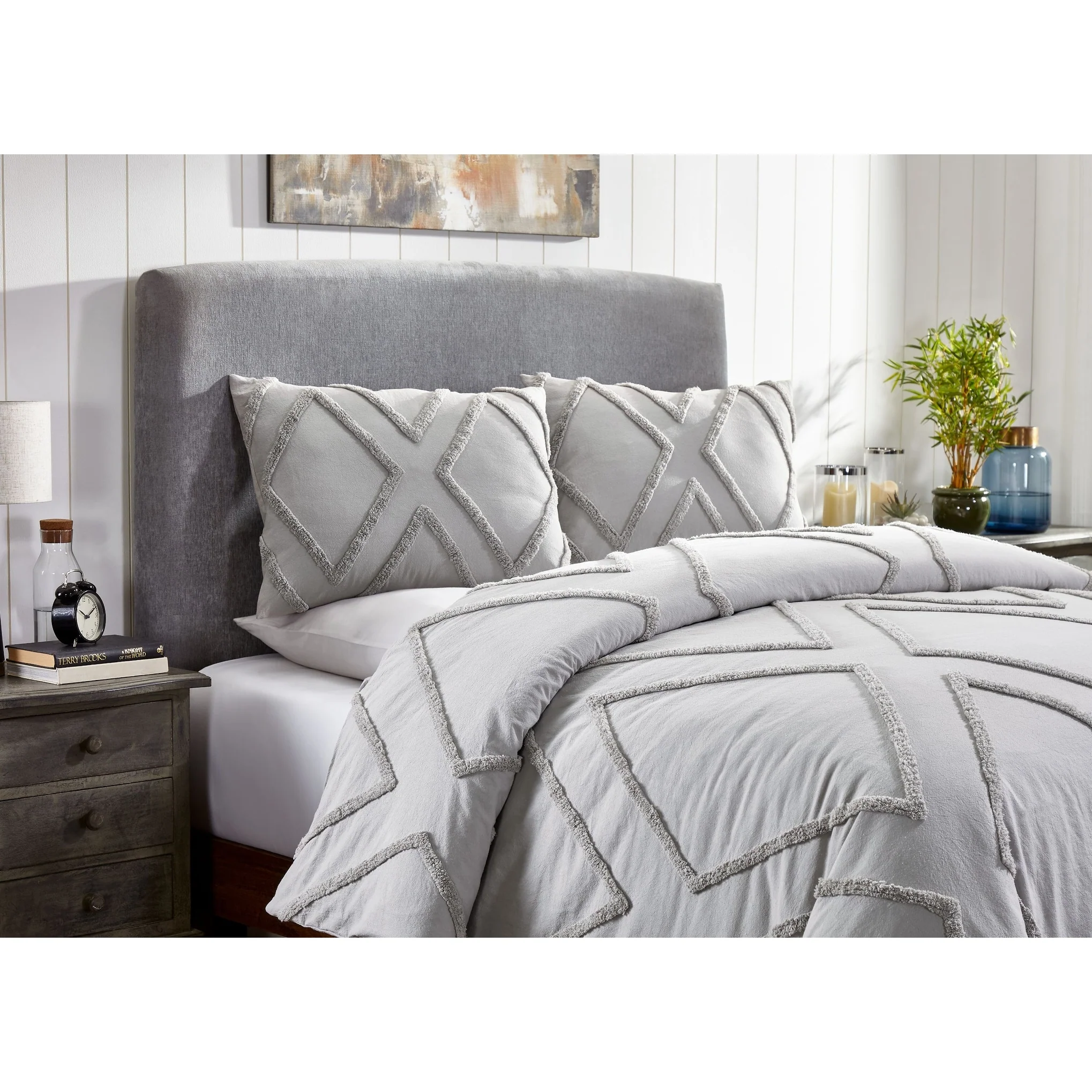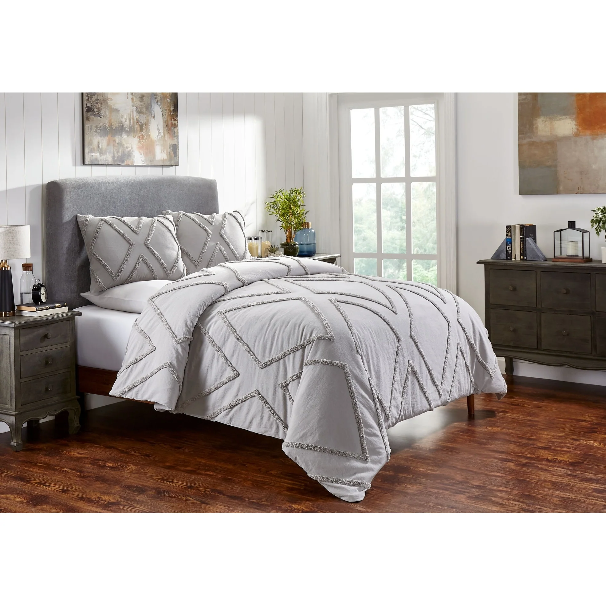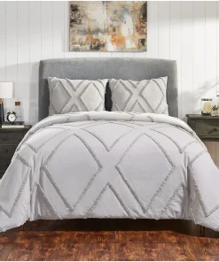 Transform your bedroom into a cozy and chic retreat with the Fabstyles Arizona Chenille 3 Piece Duvet Cover Set. Crafted from hypoallergenic 100% cotton fabric in a soothing grey and white hue, each piece features a rustic tufted geometric design that adds texture and depth to your bedding. With a duvet cover and two shams included in the set, refreshing your bedroom has never been easier. Plus, this machine washable and dryer safe set ensures effortless maintenance and long-lasting use.