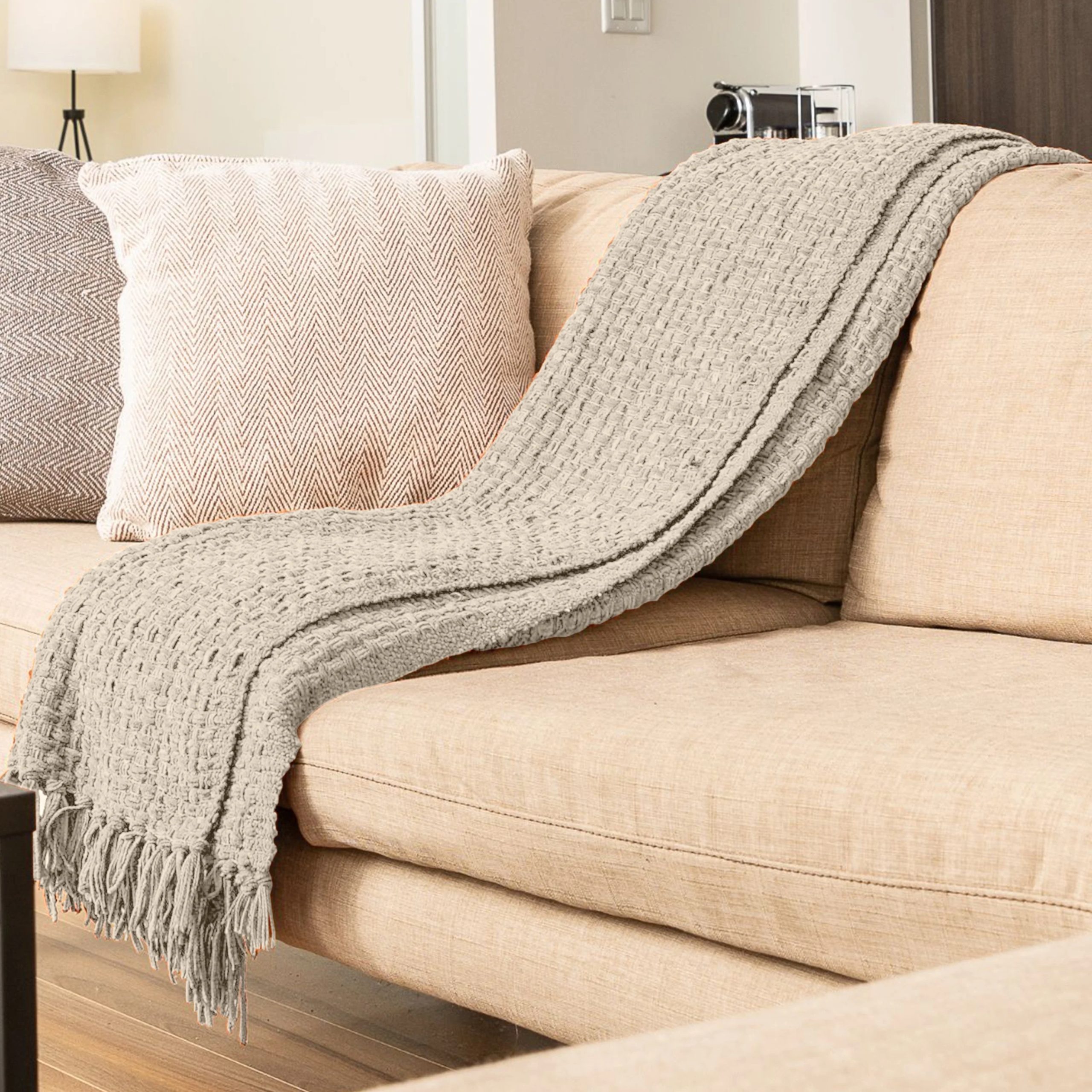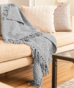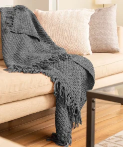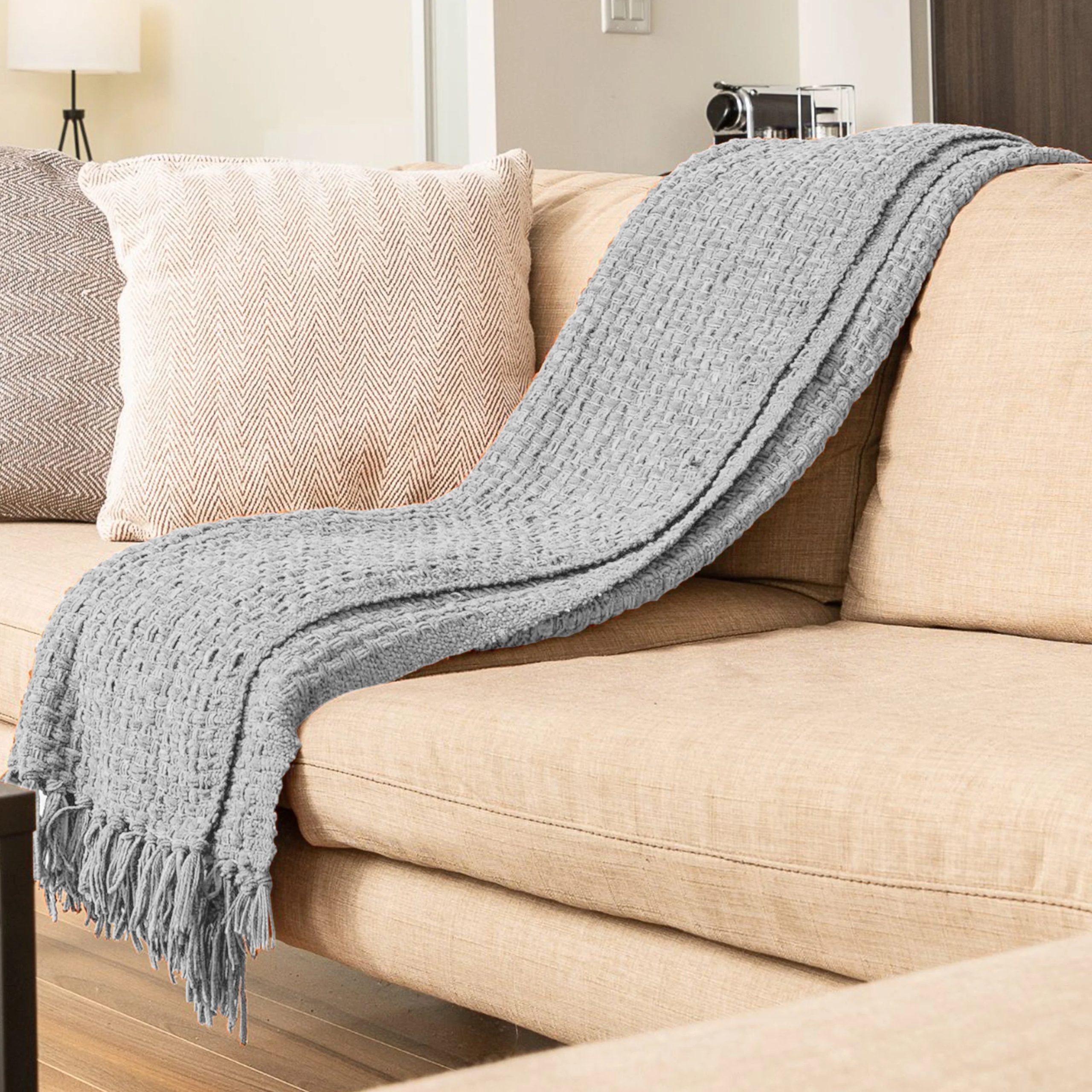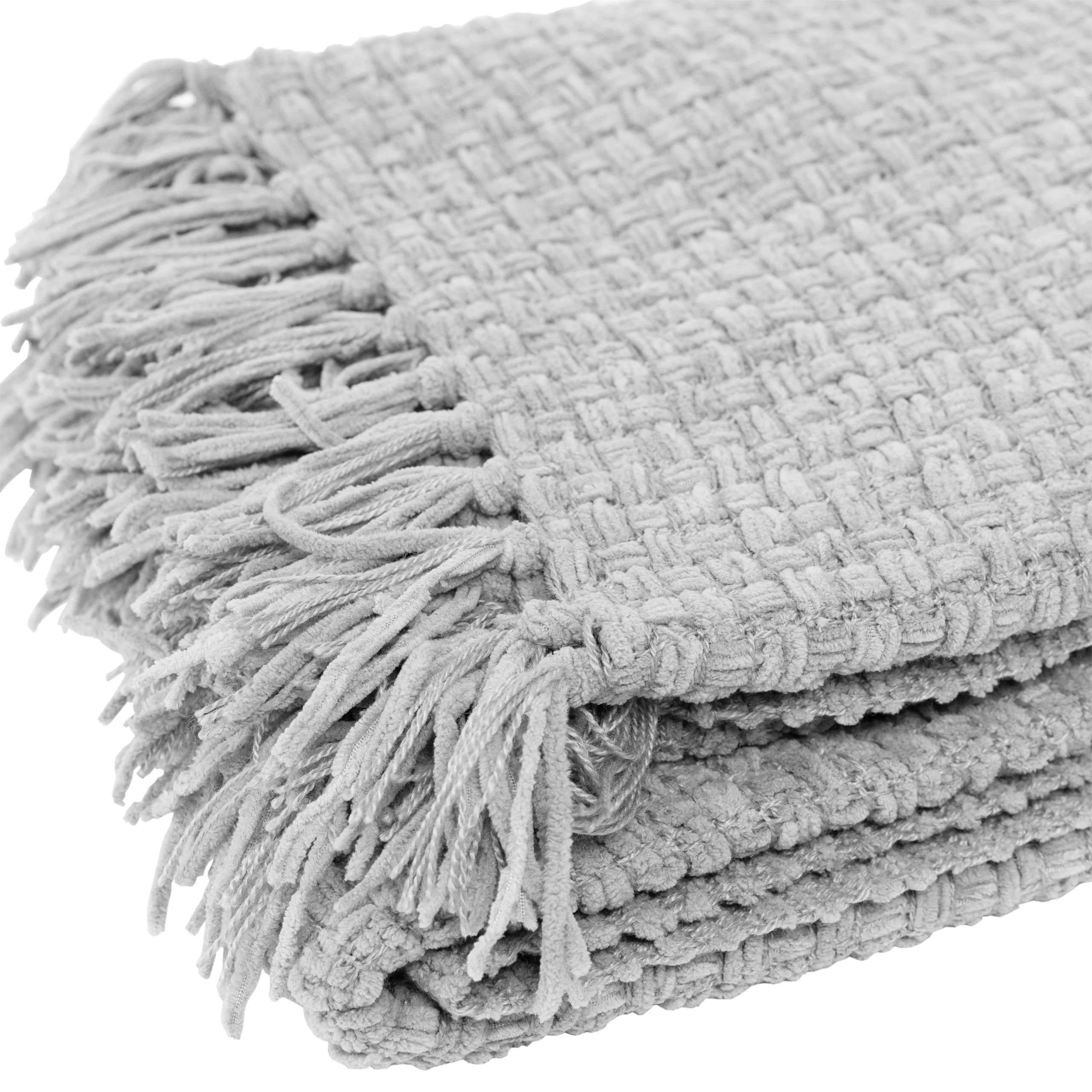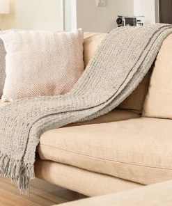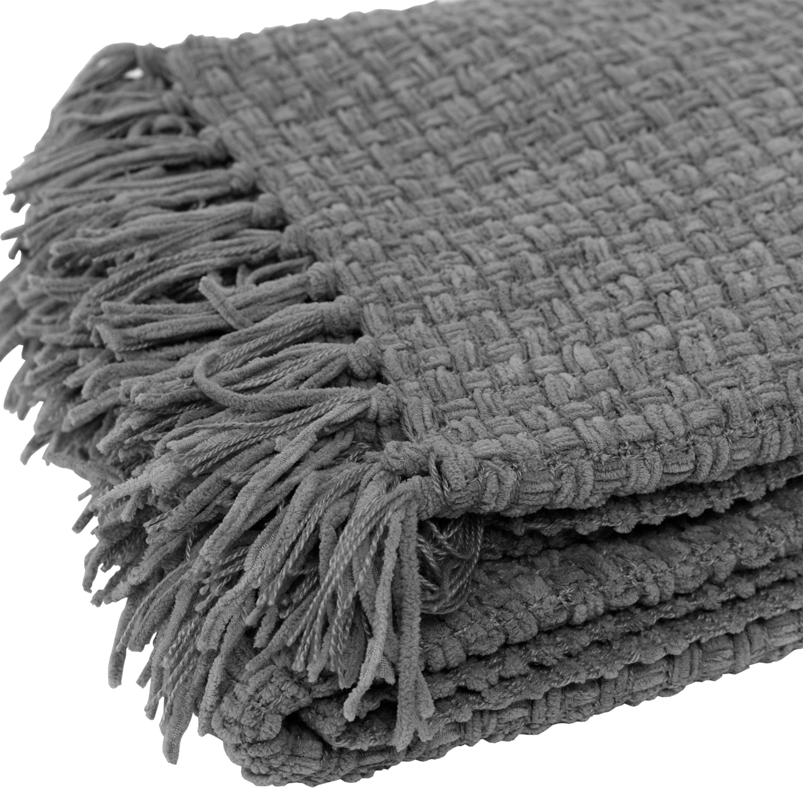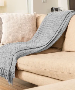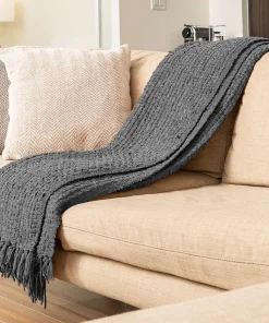 Thick and thin yarns weave a subtly textured throw that’s sophisticated and soft to the touch with high-quality materials to ensure durability and maintain comfort. This throw works great on a cool night but can also be used to layer on a couch to give your living room an extra element of design.Â