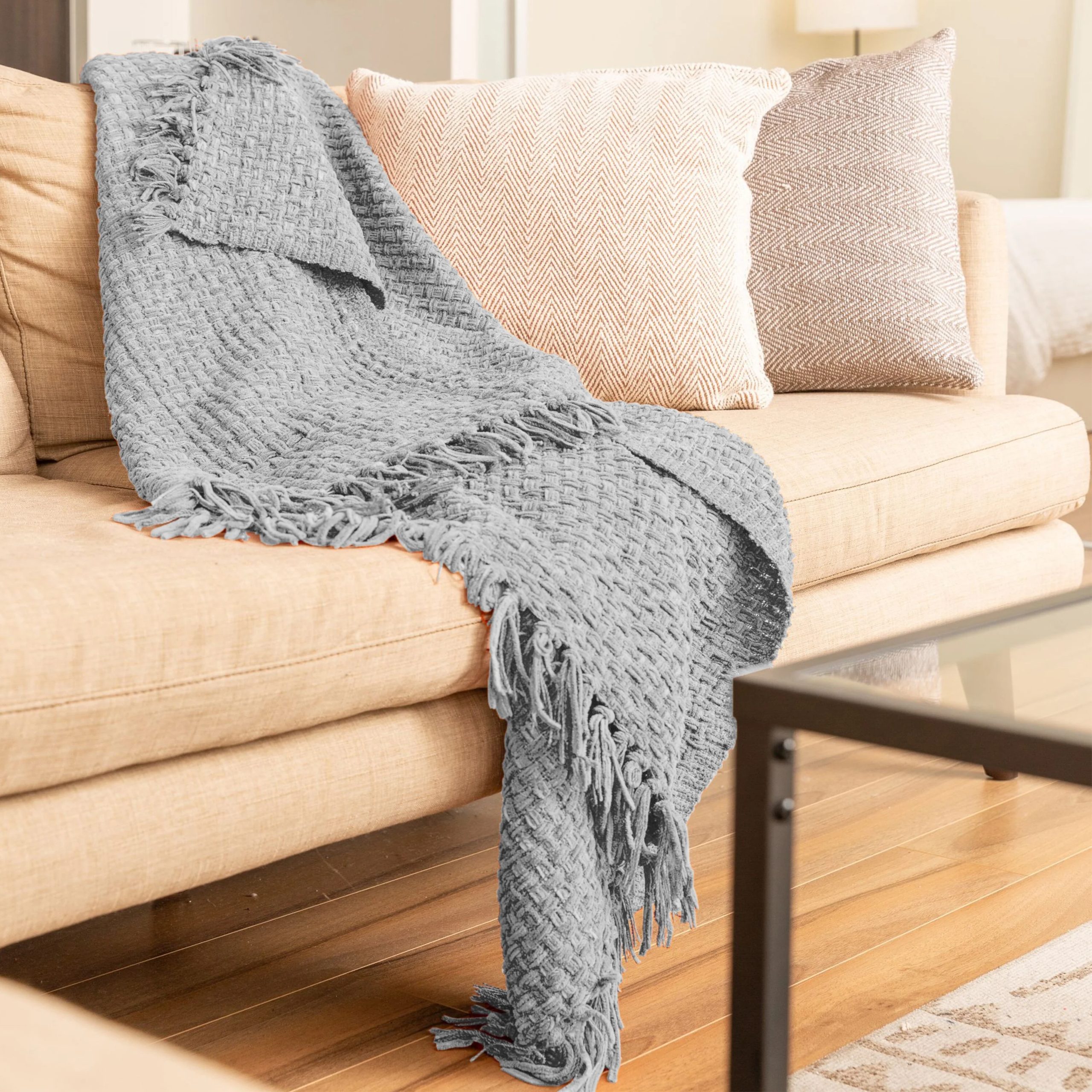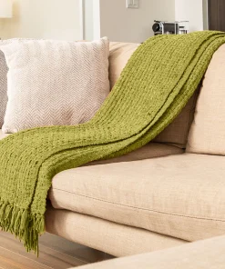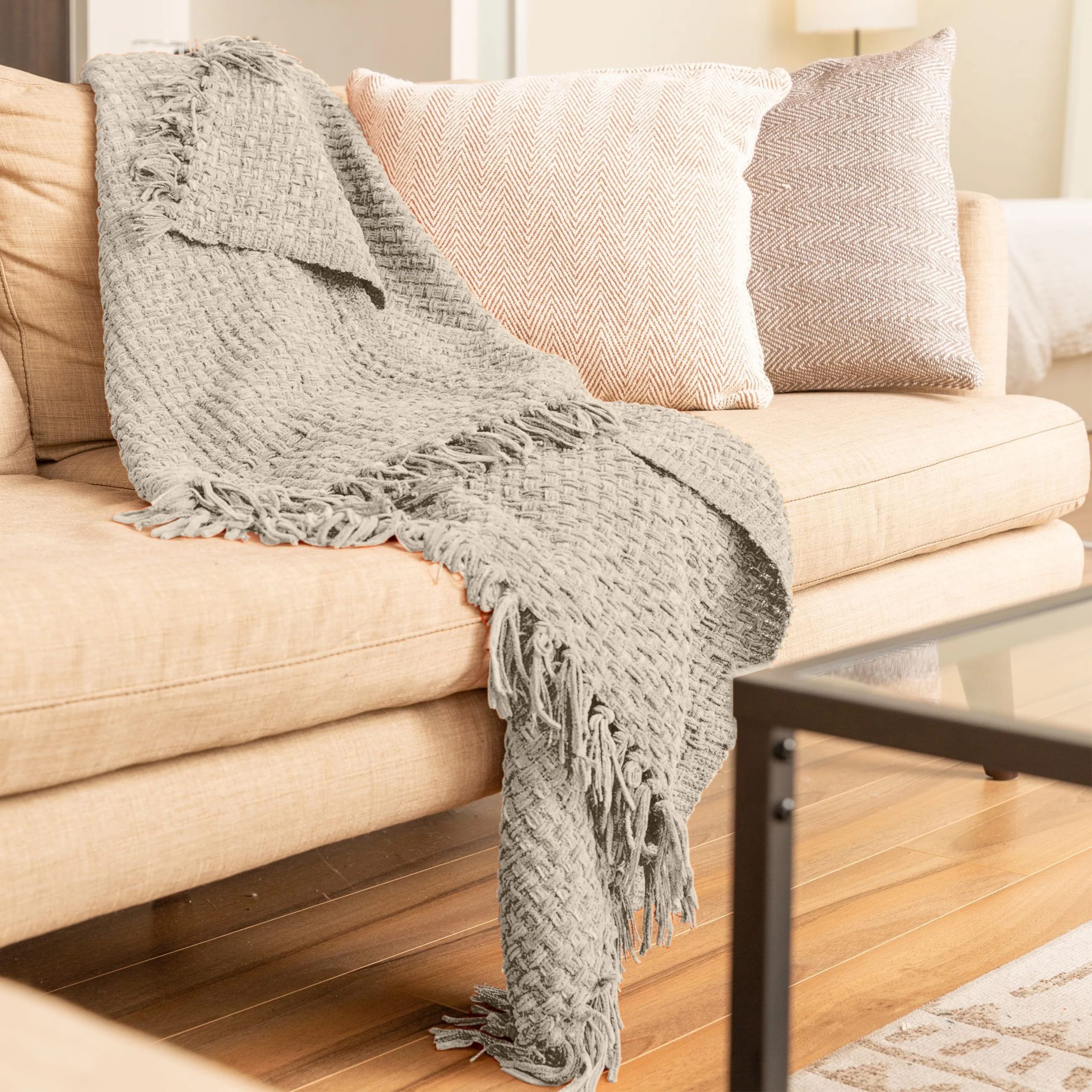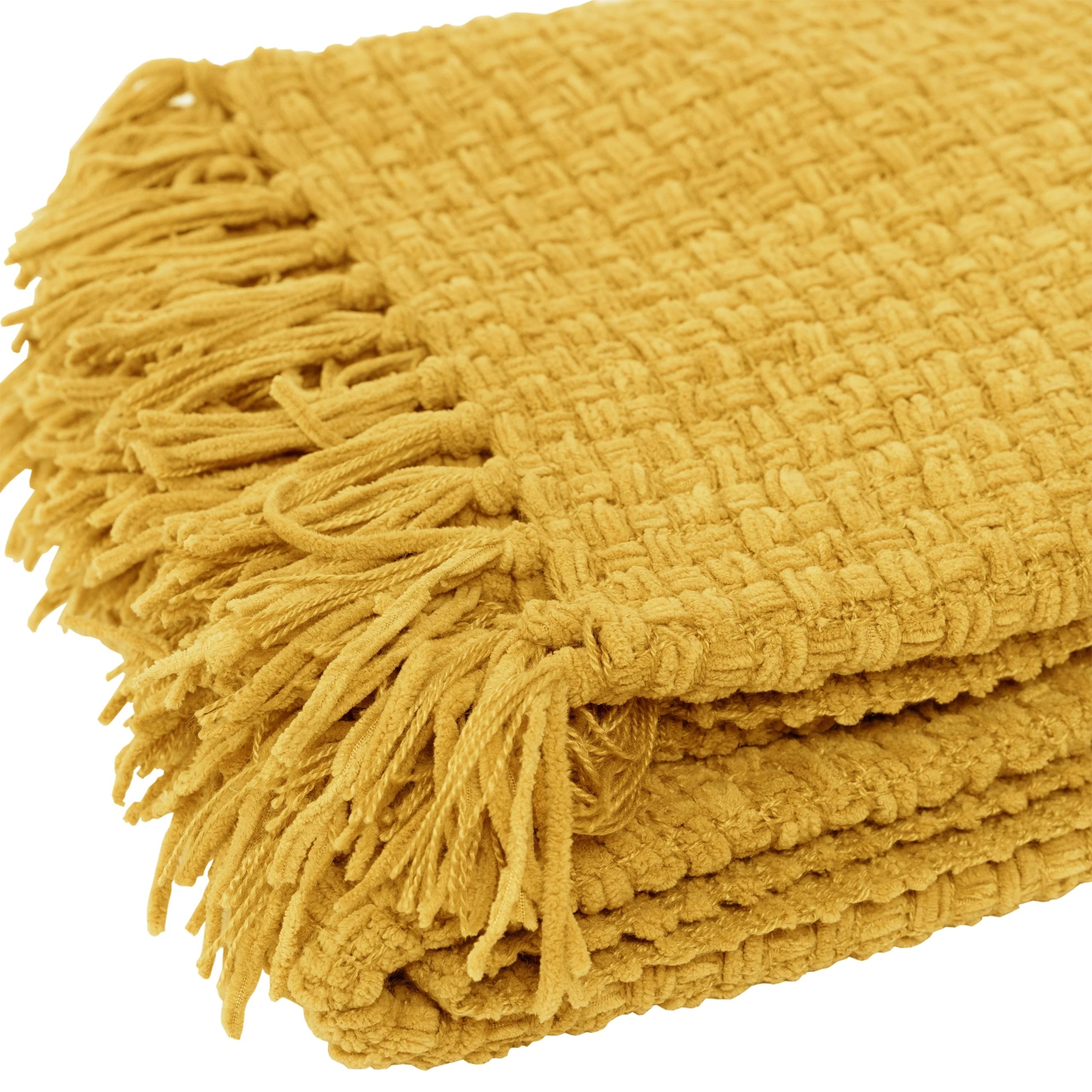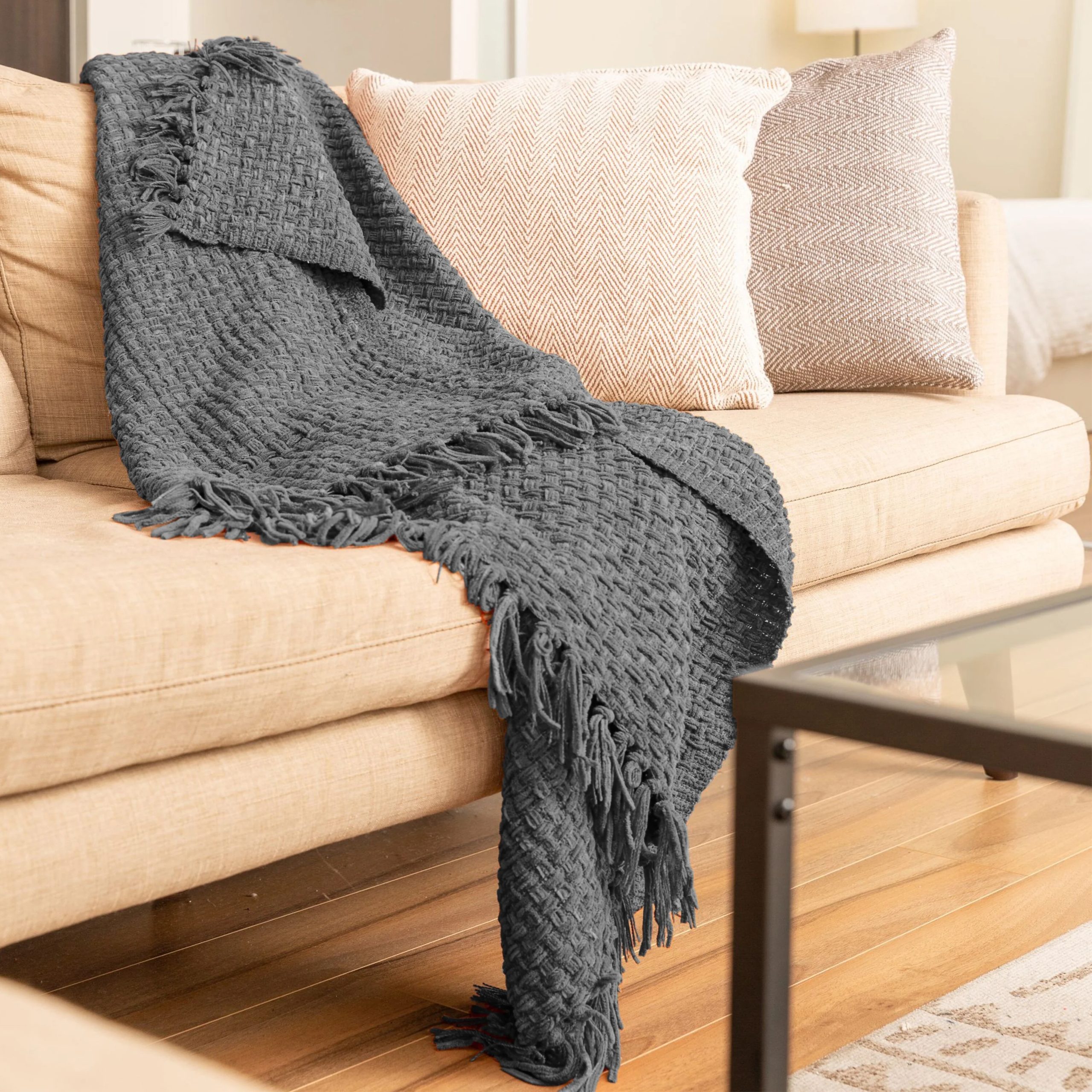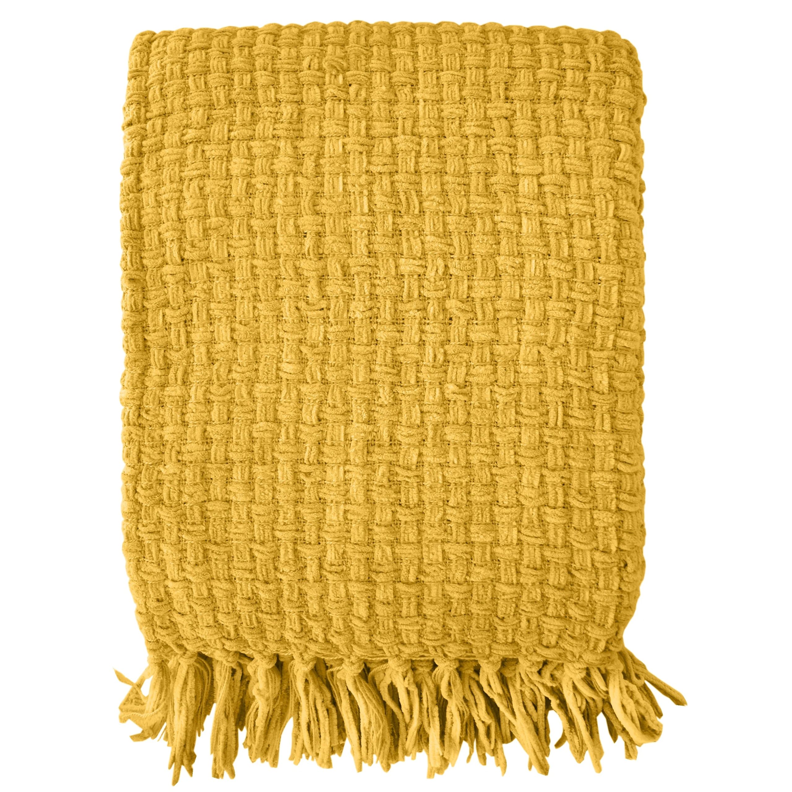 Thick and thin yarns weave a subtly textured throw that’s sophisticated and soft to the touch with high-quality materials to ensure durability and maintain comfort. This throw works great on a cool night but can also be used to layer on a couch to give your living room an extra element of design.Â