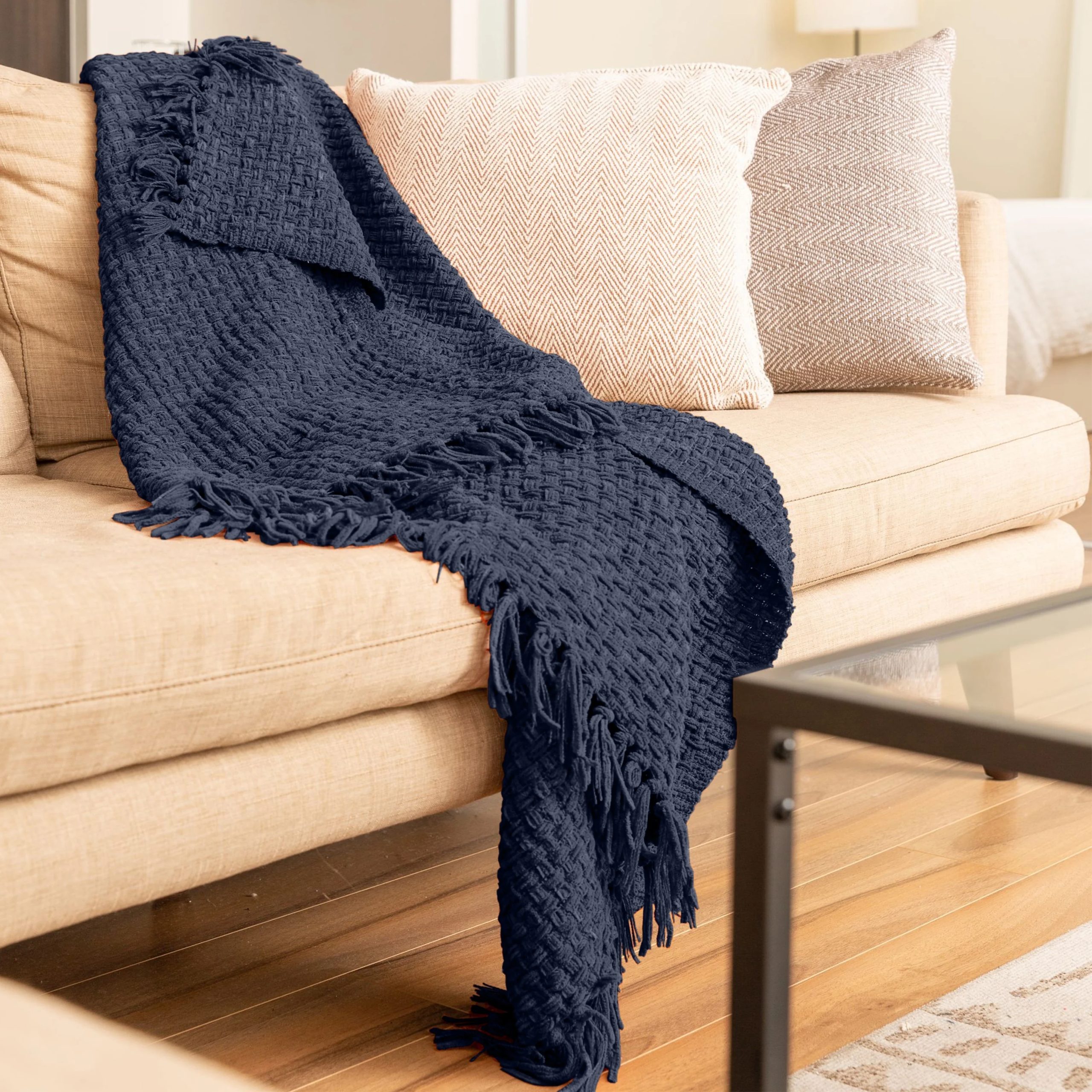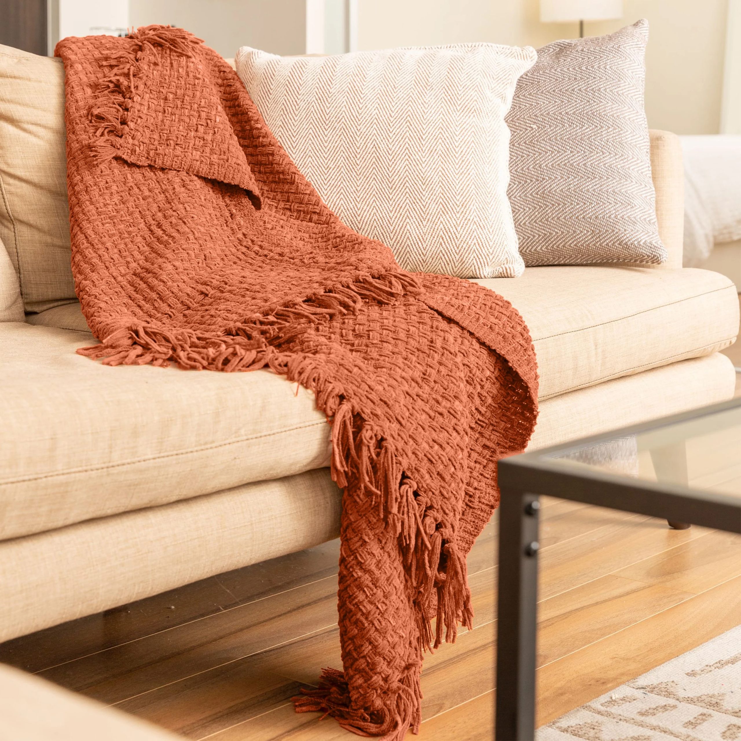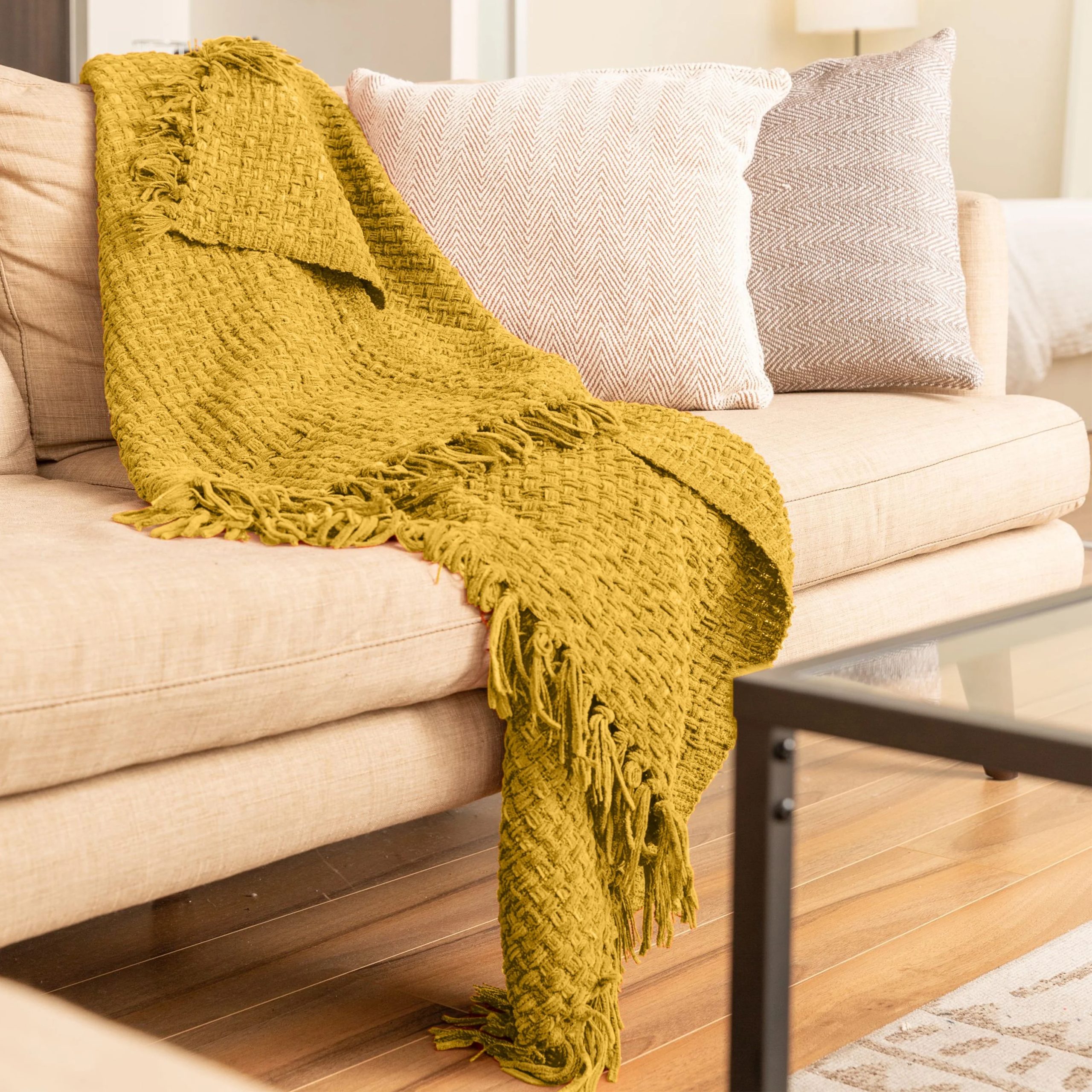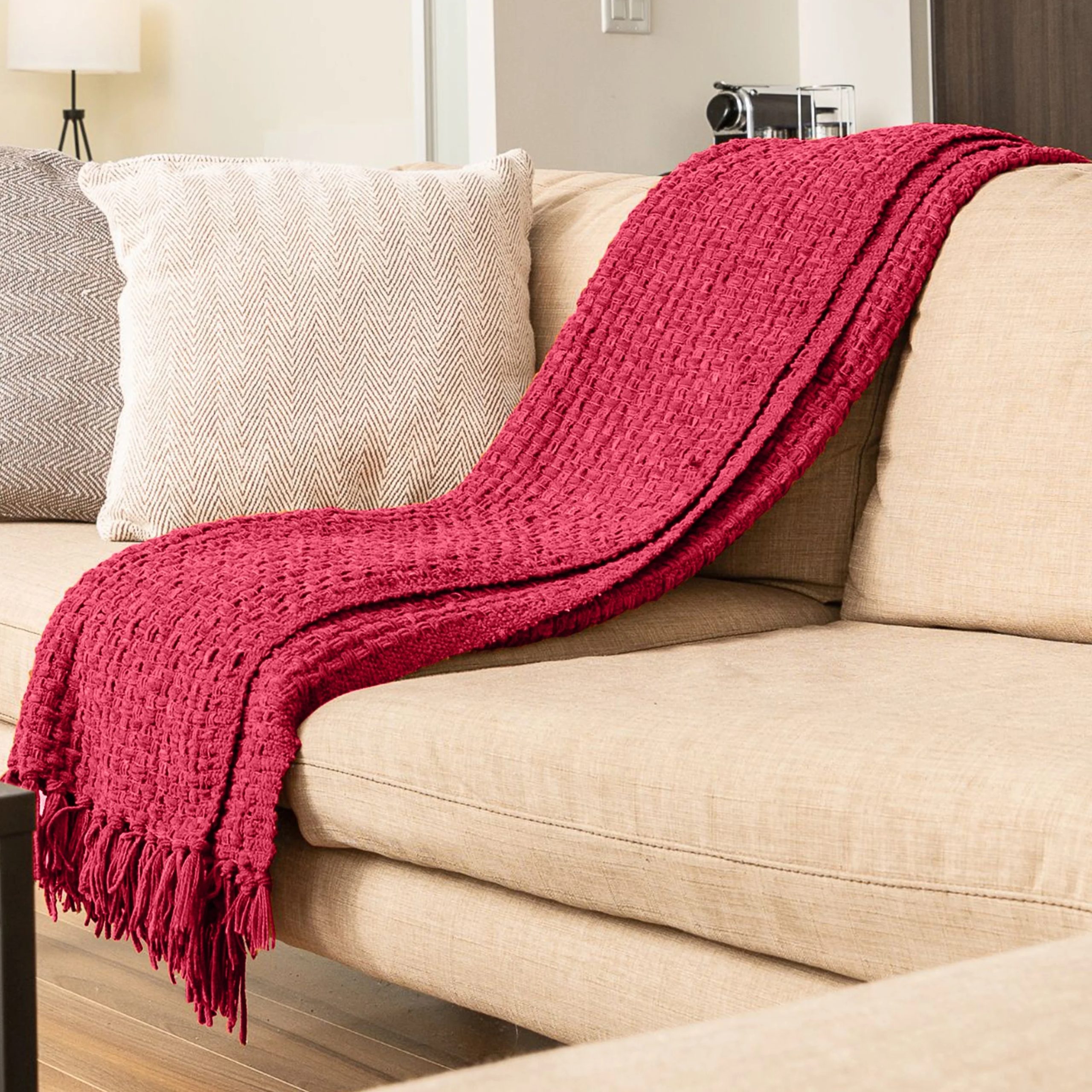 Thick and thin yarns weave a subtly textured throw that’s sophisticated and soft to the touch with high-quality materials to ensure durability and maintain comfort. This throw works great on a cool night but can also be used to layer on a couch to give your living room an extra element of design.Â