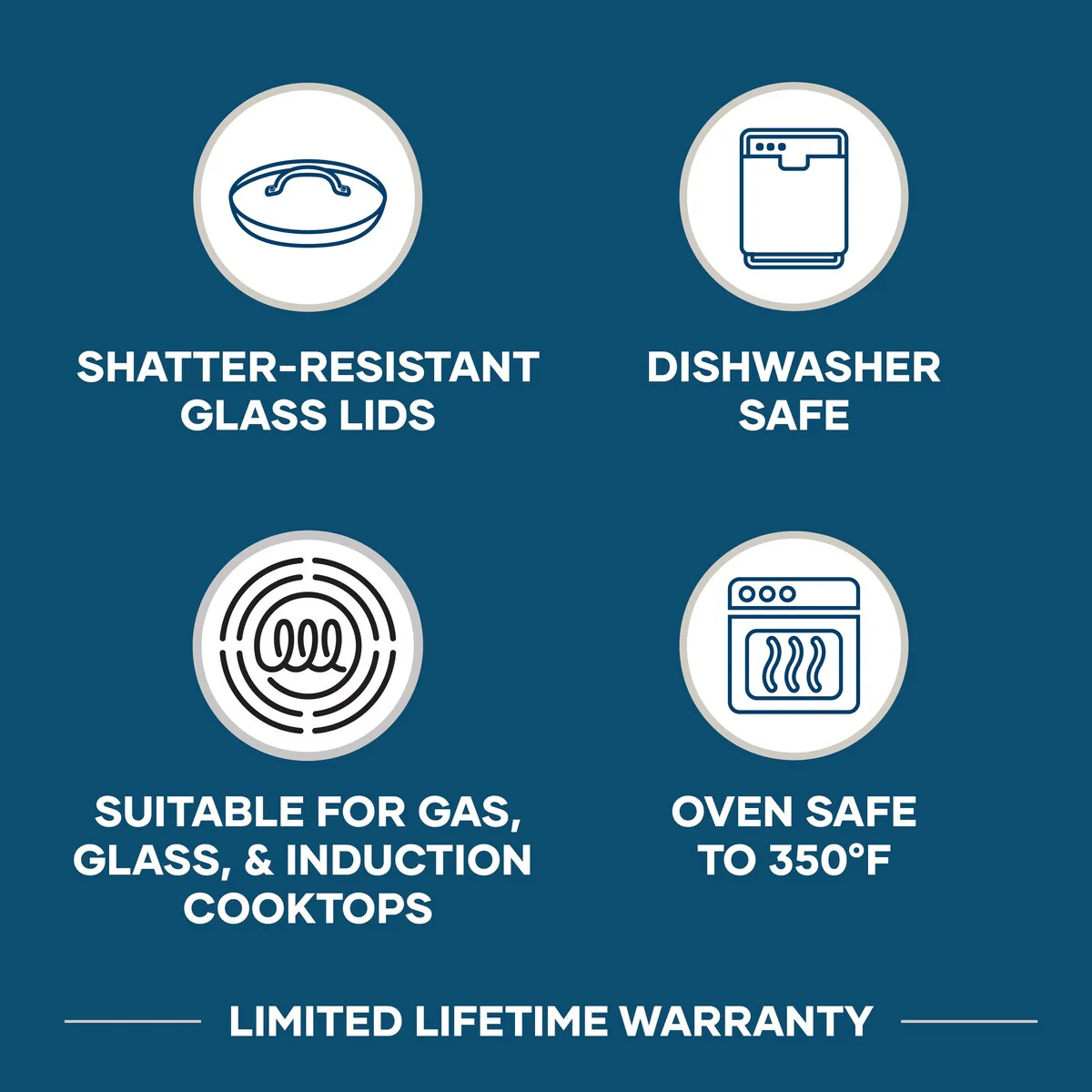 - DISHWASHER & OVEN SAFE: The fully encapsulated impact-bonded base completely seals the bottom of the cookware to make it truly dishwasher safe. Pan is oven safe to 350 degrees F.