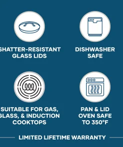 - TEMPERED-GLASS LID: The tempered-glass lid with vent locks in heat and moisture while allowing home chefs to easily monitor food as it cooks.