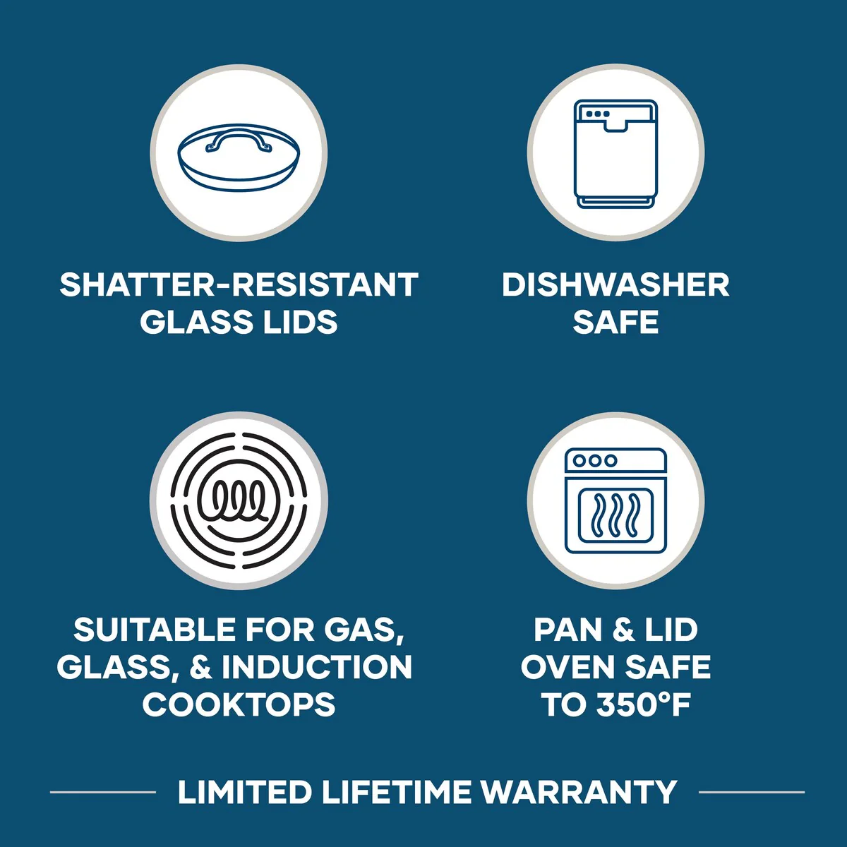 - DISHWASHER & OVEN SAFE: The fully encapsulated impact-bonded base completely seals the bottom of the cookware to make it truly dishwasher safe. Stockpot and lid are oven safe to 350 degrees F.