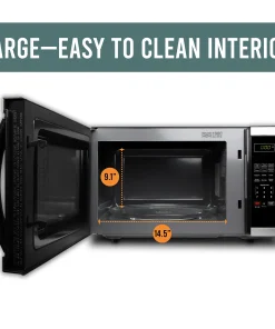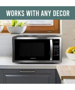 This Farberware FM11BKBSS 1.1 Cu. Ft. 1000-Watt Stainless-Steel microwave oven is the ideal size for office break rooms or home kitchens. 6 ONE touch cooking programs lets you optimally cook six of the most popular food items with the touch of a button. Choose from ten power levels up to 1000 watts on this countertop microwave ovens. The large digital screen has a clock feature and can display a countdown timer in addition to the cooking time remaining. The memory function let you customize and save your favorite cook settings for added one-touch benefit. Quickly open or shut the microwave oven with the large, easy-to grip door and the child safety lock function provides an added level of security. The Stainless-Steel exterior looks great in any type of cooking area. The microwave oven can be activated for one to six minutes at 100 percent Power by just touching one of the express cooking buttons. If added cooking time is needed while the microwave oven is running, press the 30 second plus button to add an additional cooking time.