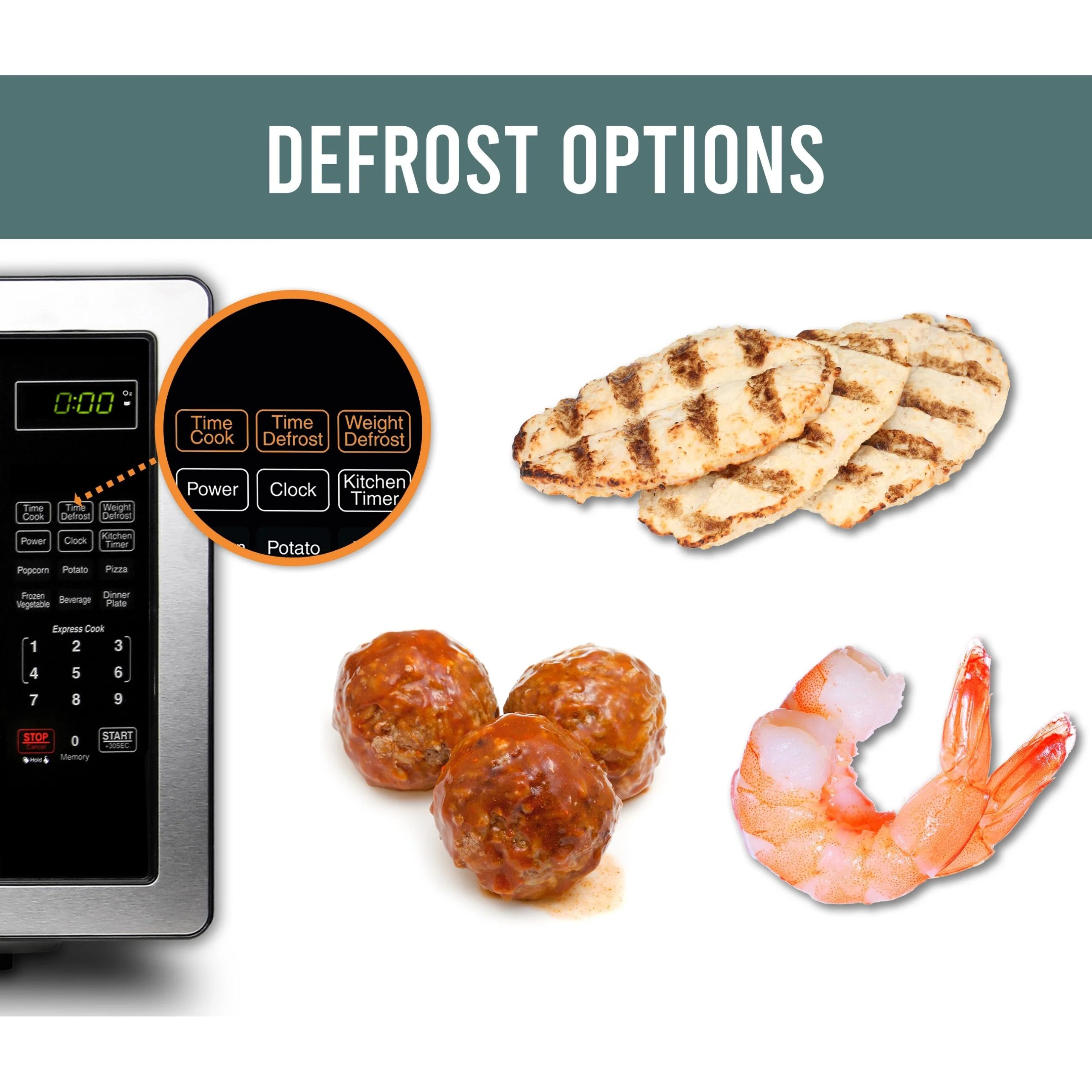 - COOK EASY & POWERFUL: This microwave offers 10 power levels with multi-stage cooking. Fully customize your cooking with 6 one-touch cooking programs including popcorn, potato, and pizza. Defrost by weight or by time settings help make quick work of any cooking task