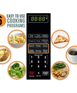 - QUICK & EASY: Prepare meals and snacks in a snap with this compact microwave that packs 1000 Watts of output power. 1-6 min. Express cooking and plus 30 sec. Button offer simple press-and-go speed while the memory function lets your store your most used customized settings