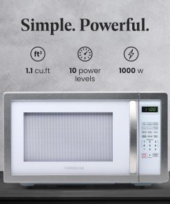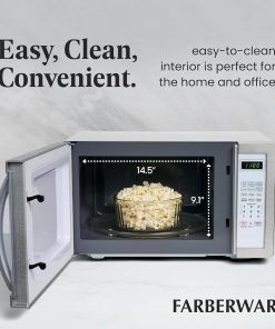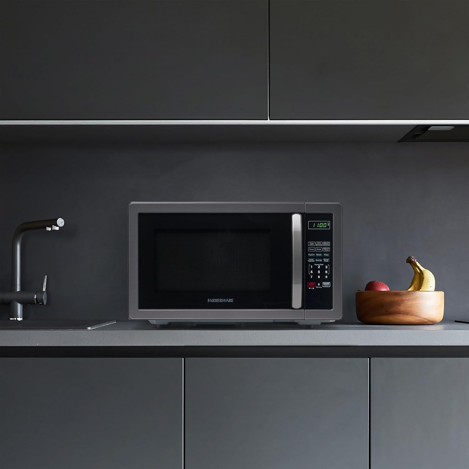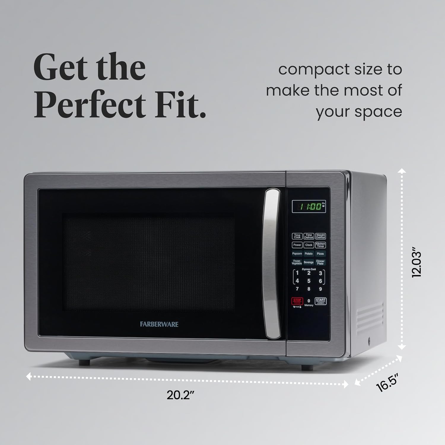 Farberware Countertop Microwave 1000 Watts, 1.1 cu ft – Microwave Oven With LED Lighting and Child Lock – Perfect for Apartments and Dorms – Easy Clean Stainless Steel