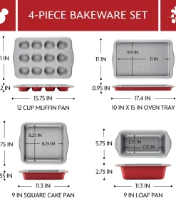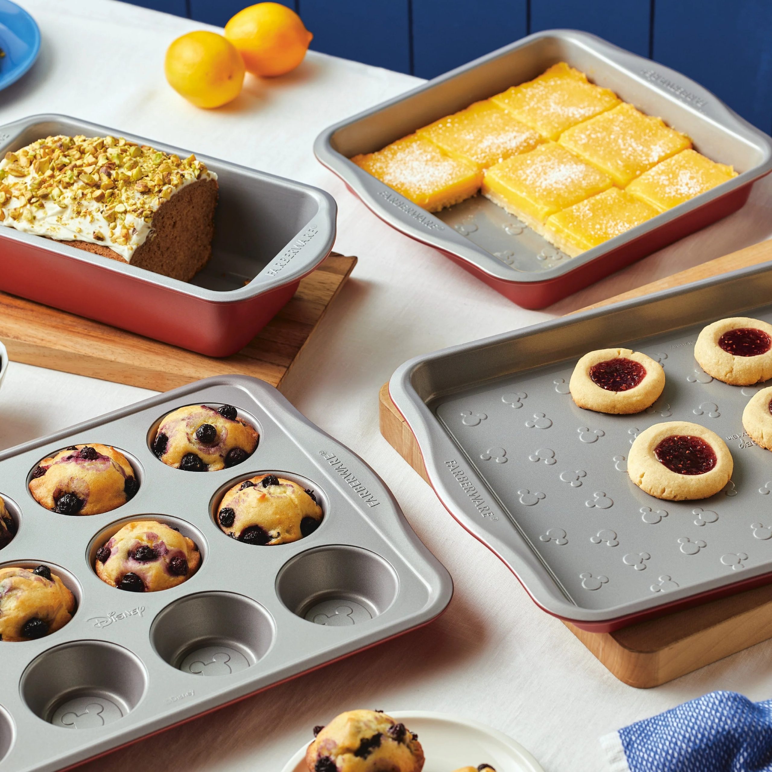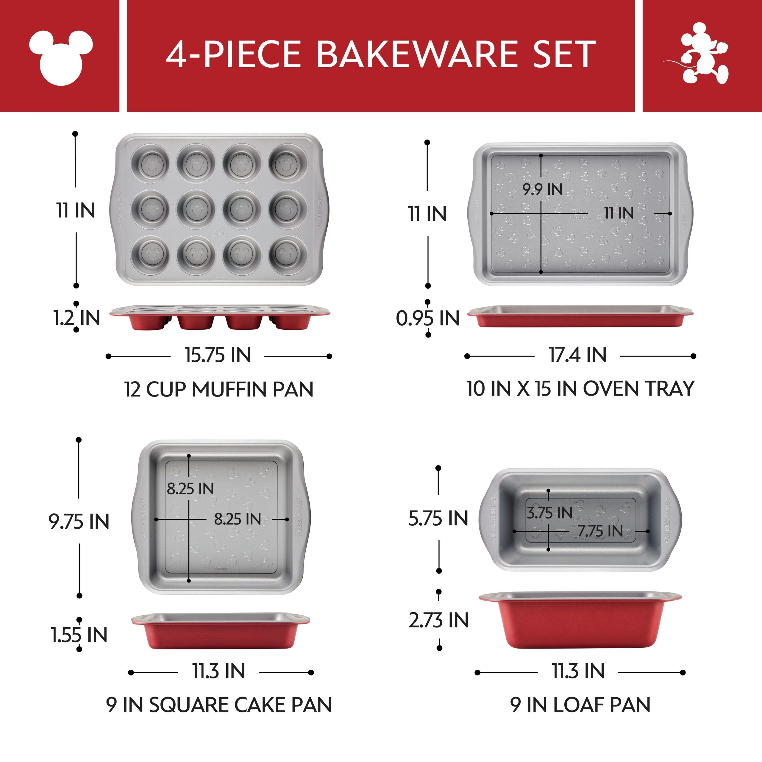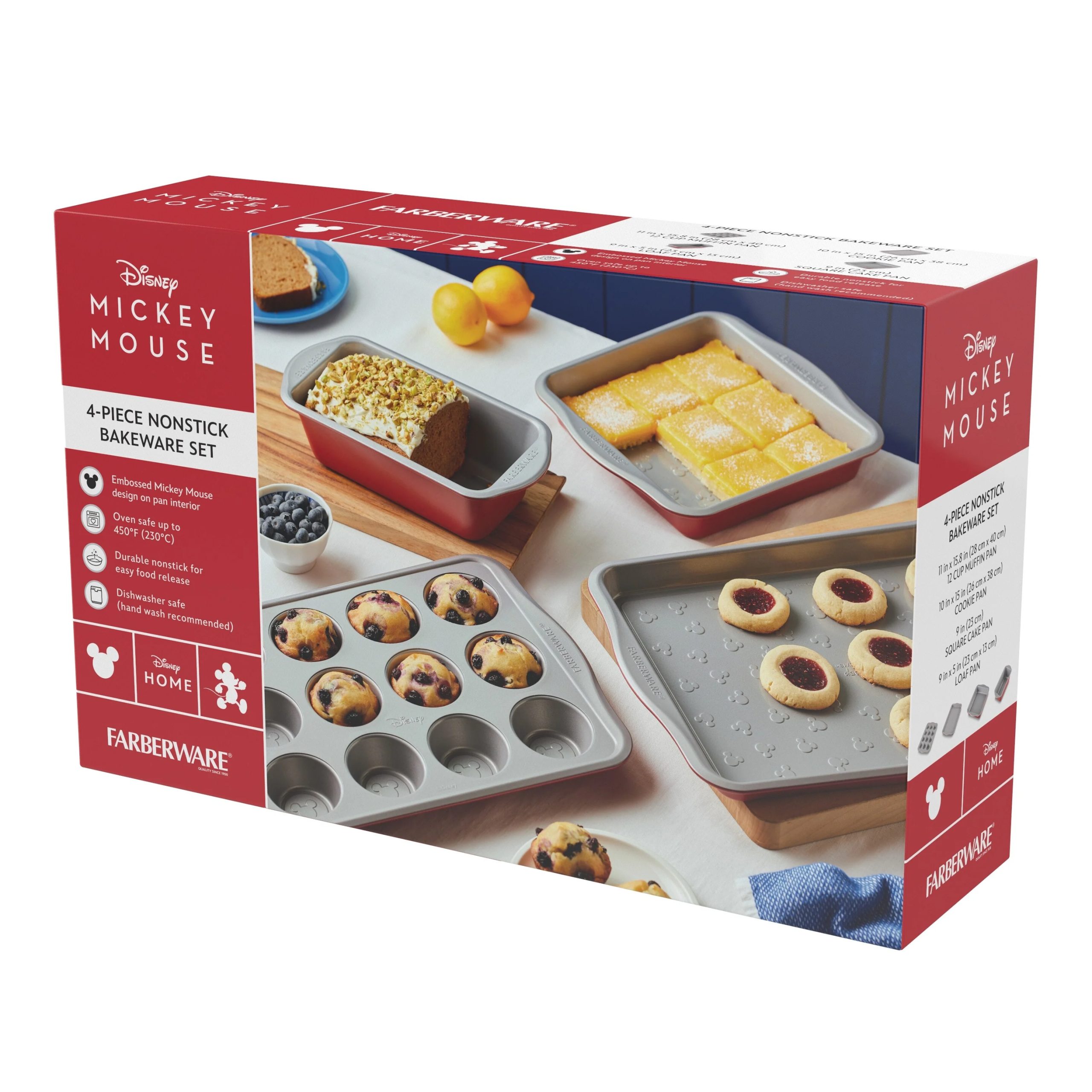- THE MAGIC OF DISNEY: This bakeware set includes a muffin pan, cookie pan, cake pan, and loaf pan – each with Disney Mickey Mouse’s beloved silhouette embossed into the baking surface – to help bring a touch of Disney magic to your kitchen while creating your favorite sweet and savory baked good.