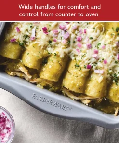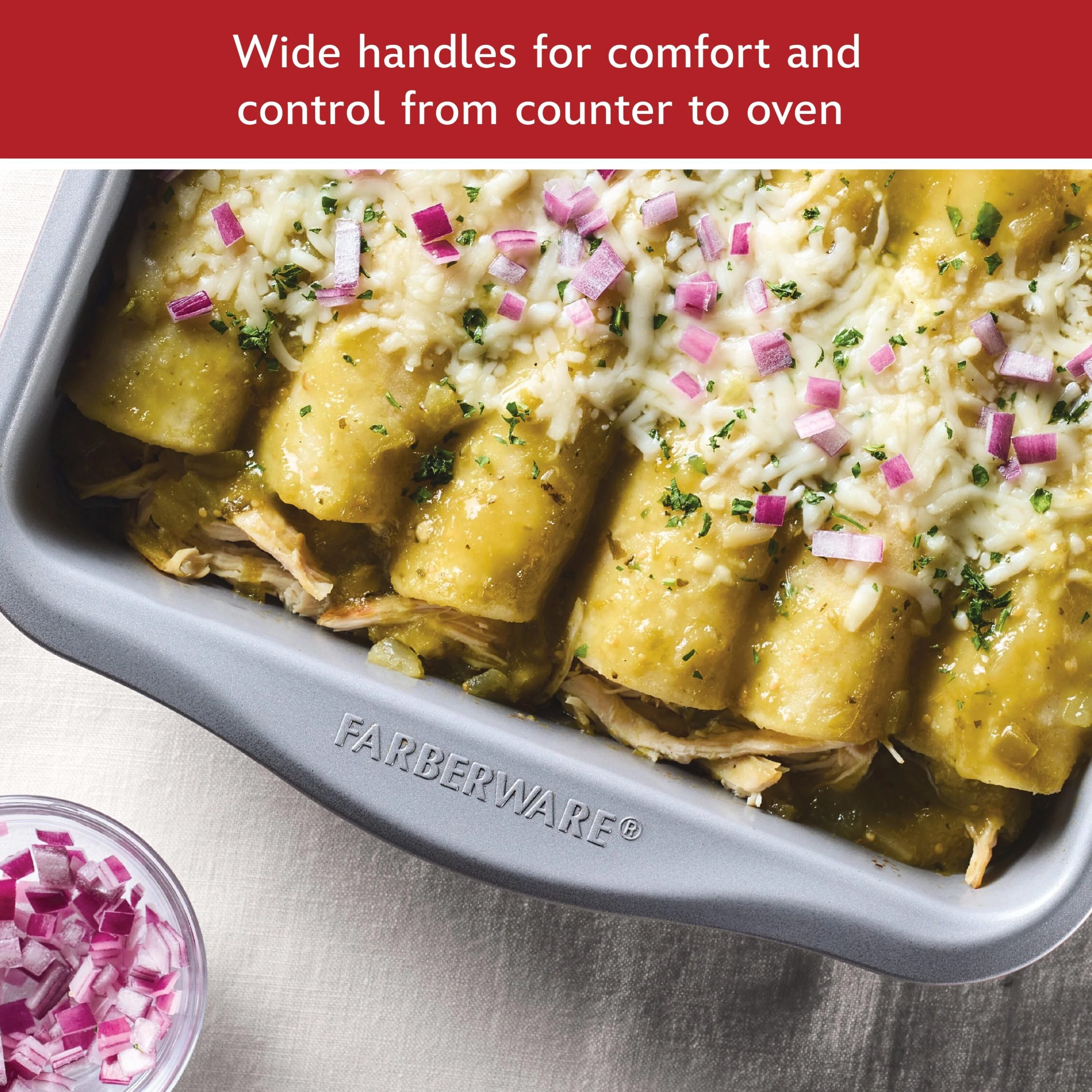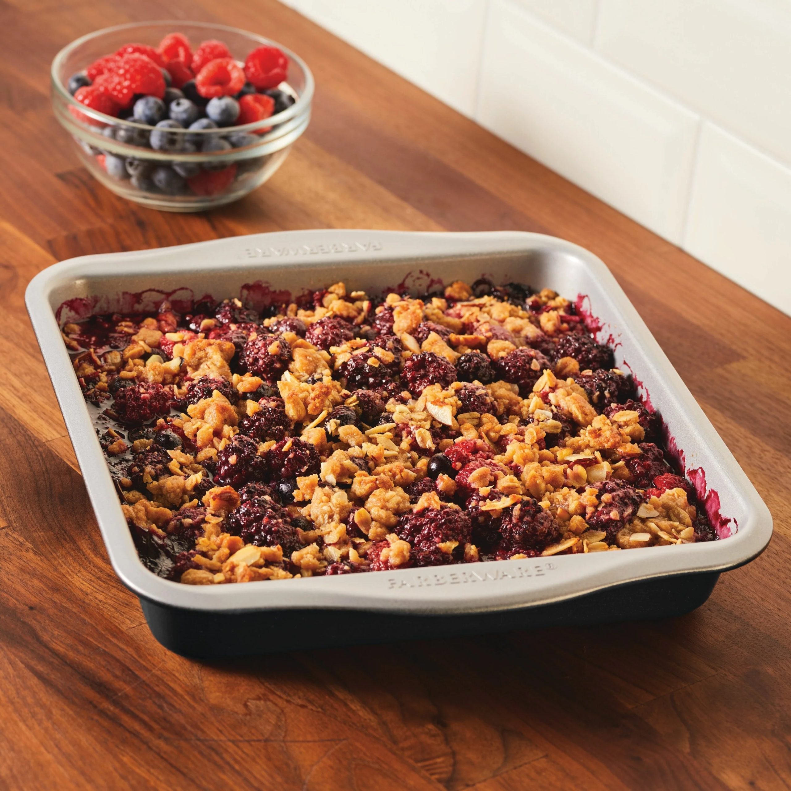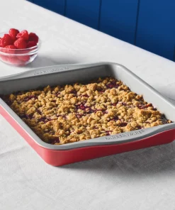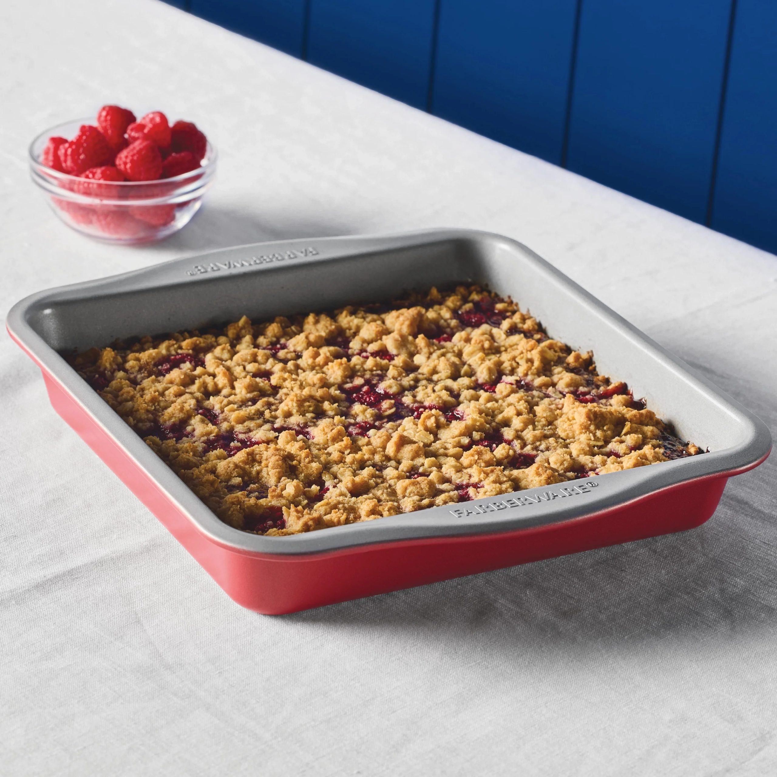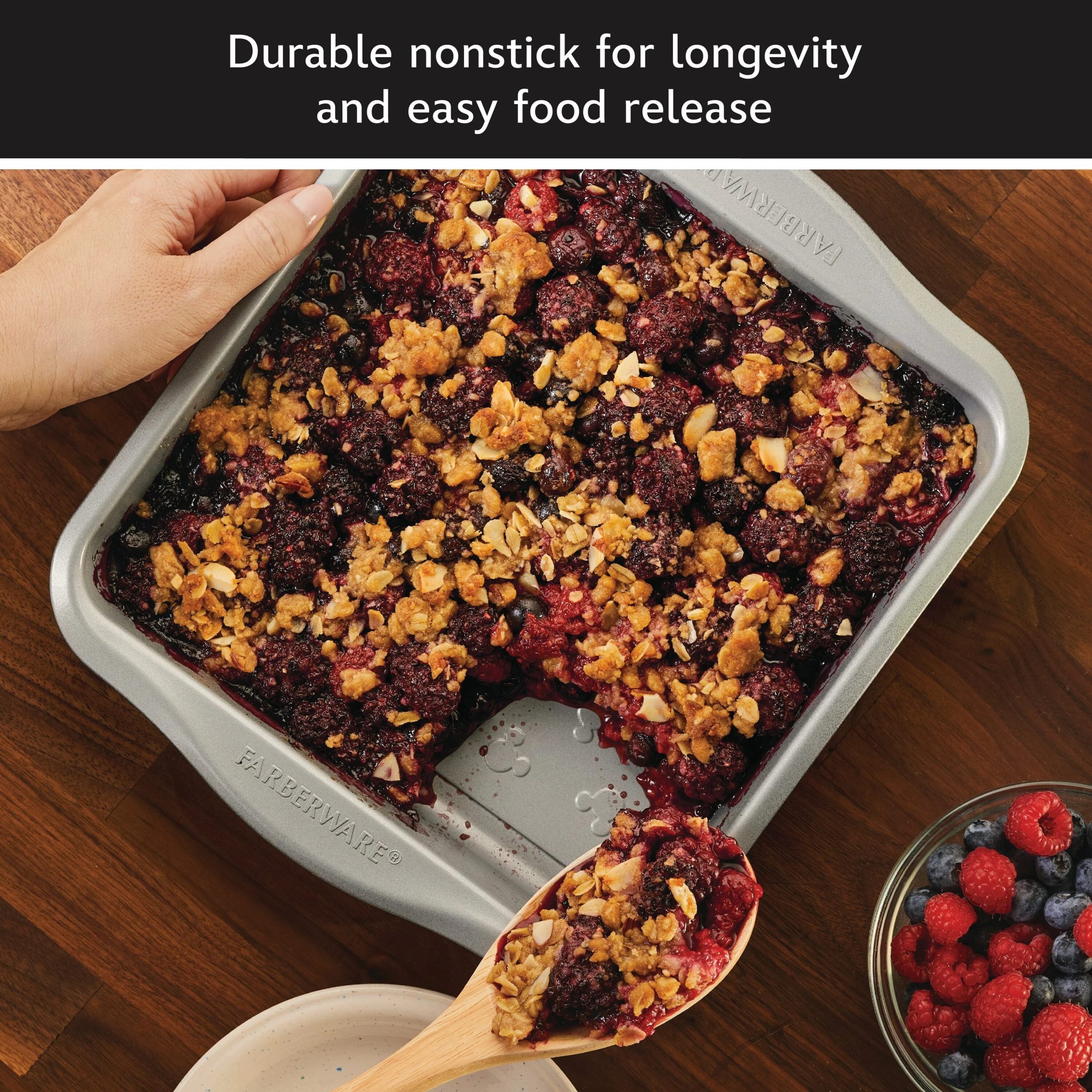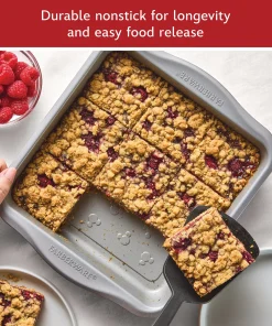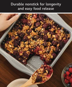 - DURABLE NONSTICK PERFORMANCE: Made from heavy-duty steel, this 9-inch square cake pan won’t warp, while its nonstick coating ensures easy food release.