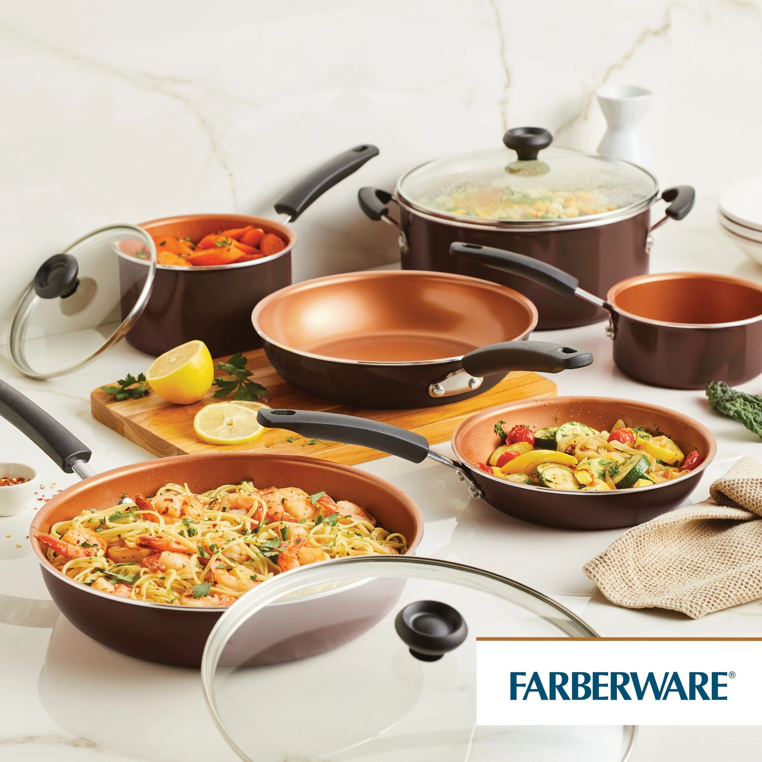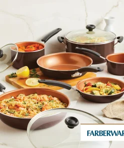- COOK WITH CONVENIENCE: Farberware nonstick cookware is oven safe to 350 degrees F and the pots and pans and LocknLock storage containers are dishwasher safe for convenient cleanup.