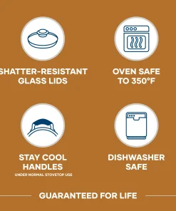 - SUPERIOR HANDLING: Glass lids seal in heat and flavor while you watch foods cook and sturdy handles provide a confident grip.