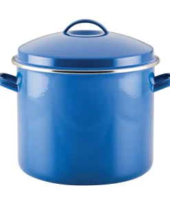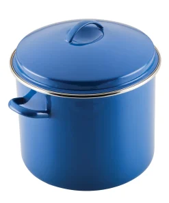 Stocks are up and at ’em, and so are jumbo-sized batches of stews, soups and other delicious foods, with the sturdy, colorful Farberware Enamel on Steel 16-Quart Stockpot with Lid. On the interior, cream-colored enamel provides a timeless kitchen look and a cooking surface that cleans easily even with browned bits and long-simmered stocks and broths. The colorful enamel exterior is also stain resistant and easy to clean so your stockpot will continue to look new through the years. Generous loop handles integrated into the construction make it easy to move the big stockpot between kitchen stations, even when full. For a final practical and great-looking touch, the rolled stainless steel rim helps to protect the pot’s edge against dents and dings. The colorful domed lid seals in heat and moisture, and the pot includes a Farberware quality assurance guarantee. Oven safe to 400 degrees F, the stockpot is suitable for all stovetops, including induction. Stock up with everyday ease, making soups, stews, stocks and more easy-to-clean and easy-to-appreciate Farberware Enamel on Steel 16-Quart Stockpot with Lid.