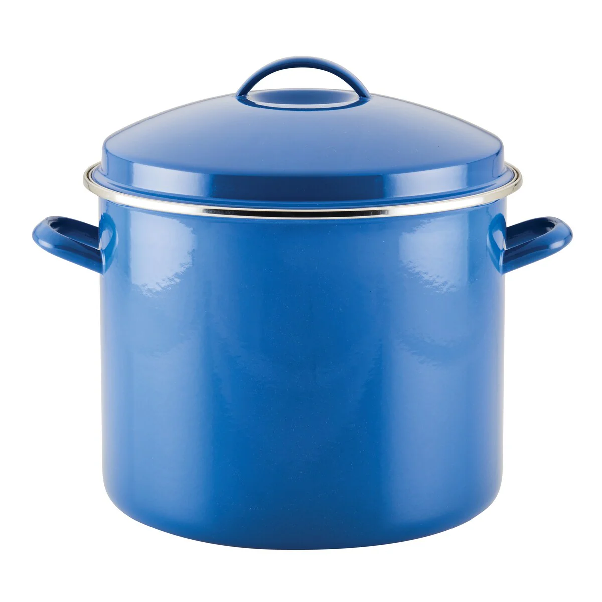 - COOK IN COLOR: The colorful stockpot enamel on steel exterior is stain resistant, and the sturdy steel loop handles provide solid support.