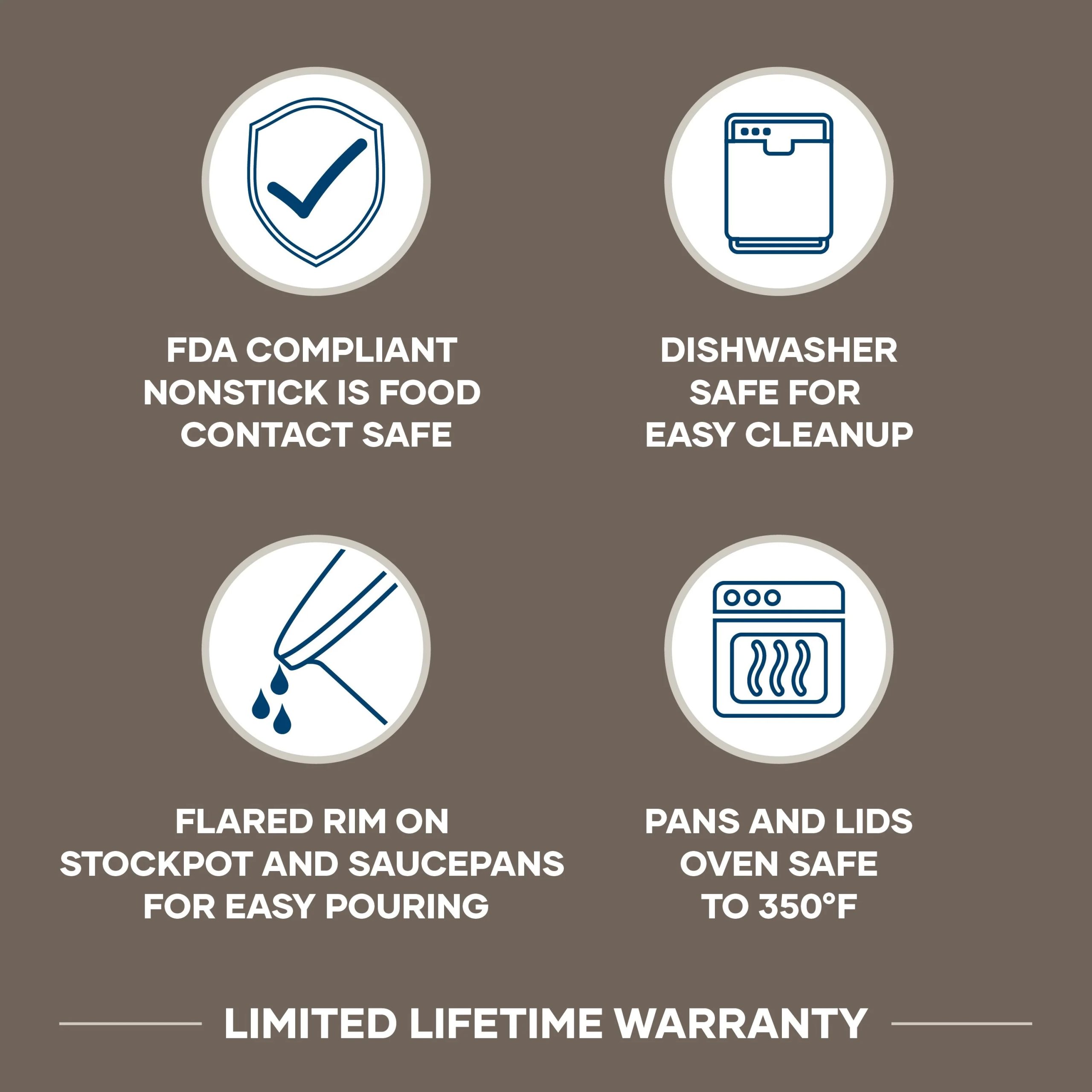 - EASY-RELEASE NONSTICK: This cookware is made with durable, dependable, and exceptionally smooth nonstick for quick and easy food release and effortless cleanup.