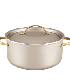 - RADIANT STYLE: With a contemporary champagne-colored surface, color-matched lid, and sleek gold stainless steel handles that are the ultimate on-trend accents, this Dutch oven makes a statement in any kitchen.