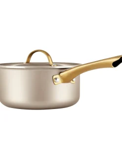 - RADIANT STYLE: With a contemporary champagne-colored surface, color-matched lid, and sleek gold stainless steel handle that is the ultimate on-trend accent, this saucepan makes a statement in any kitchen.