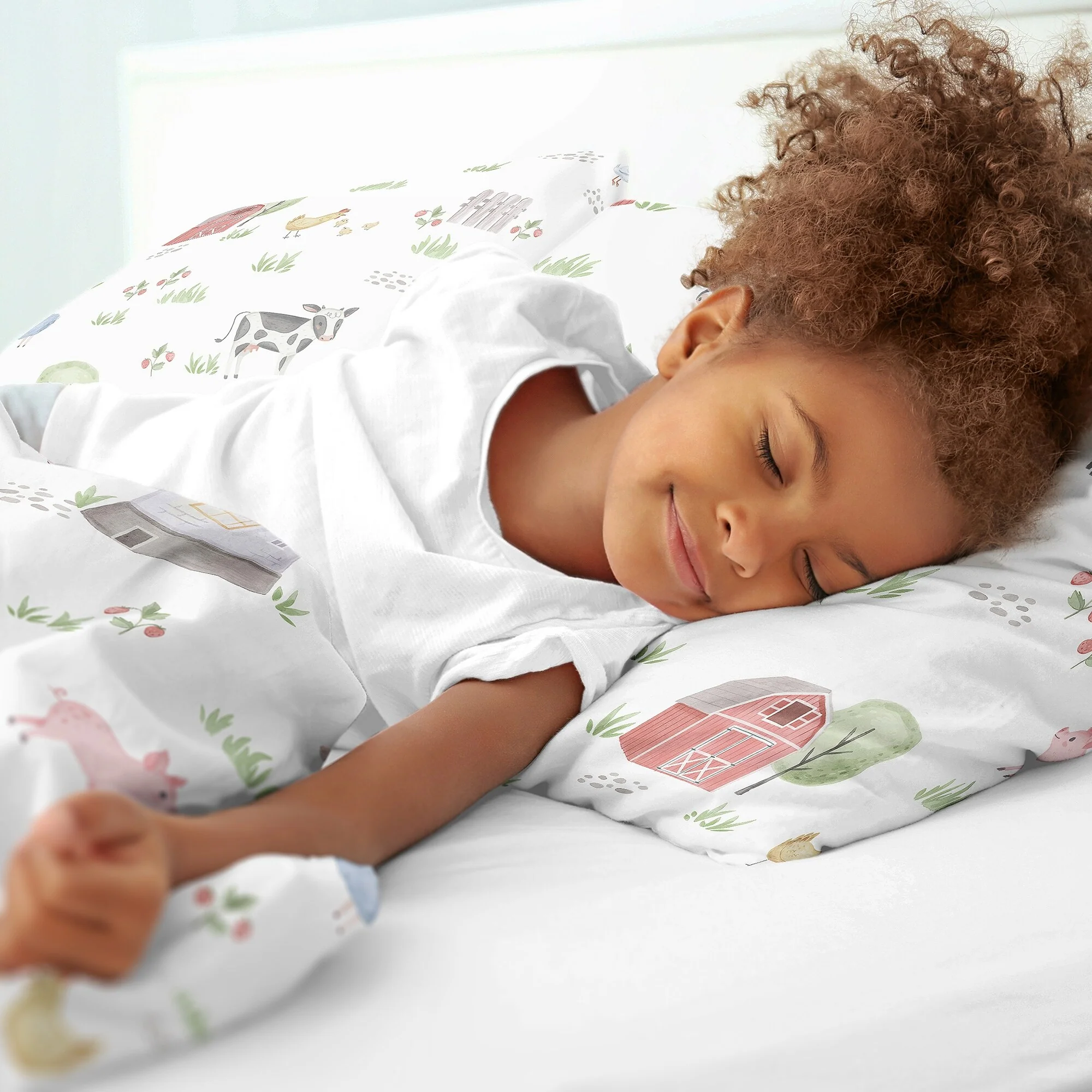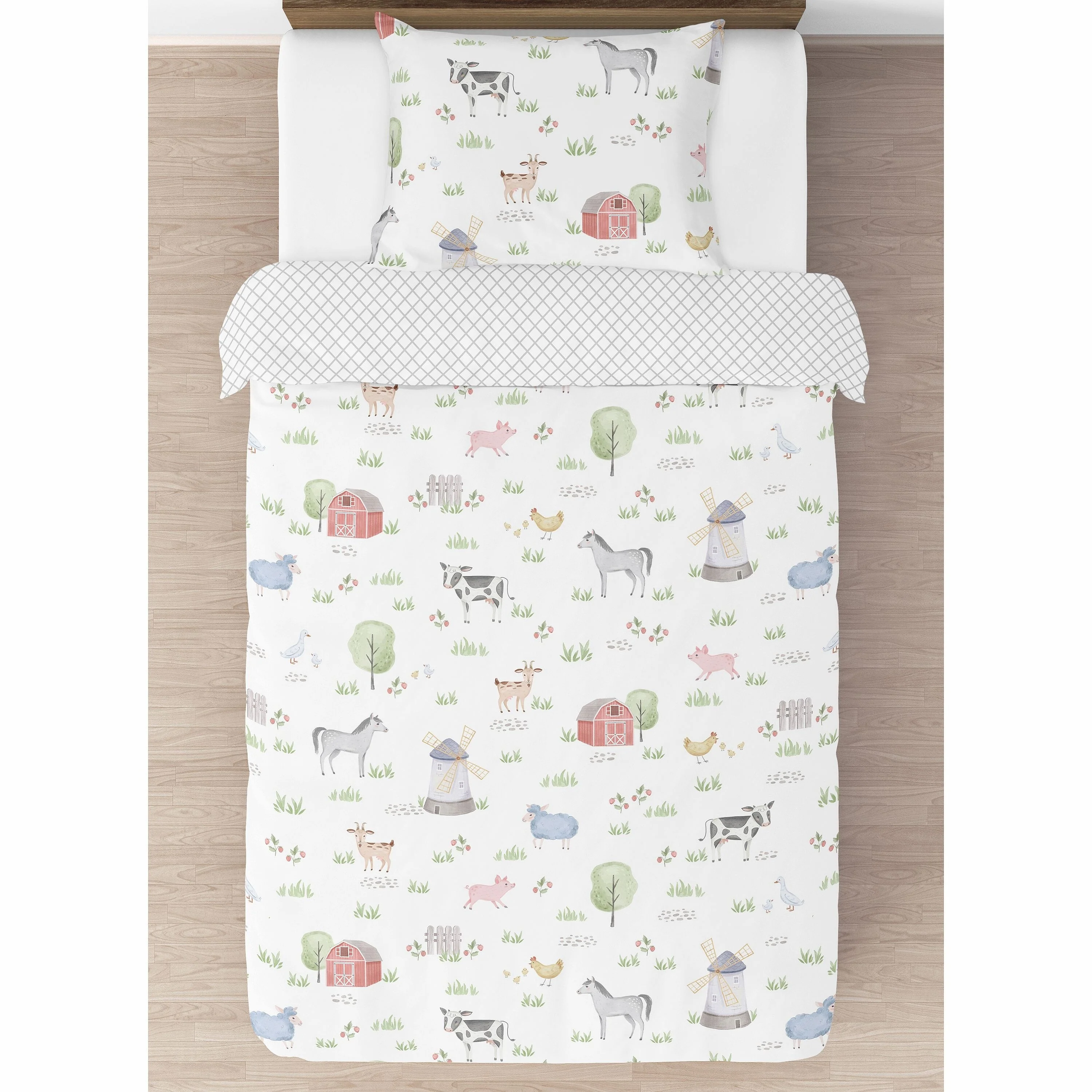Farm Animals Collection Boy or Girl 2-piece Twin-size Comforter Set – Watercolor Farmhouse Lattice Horse Cow Sheep Pig
