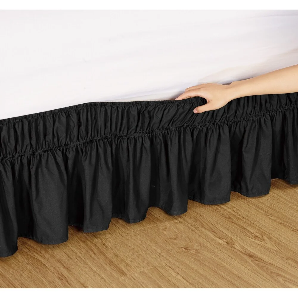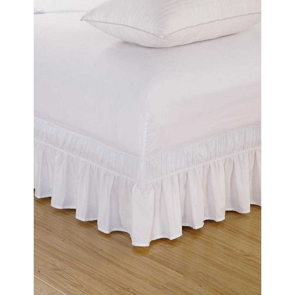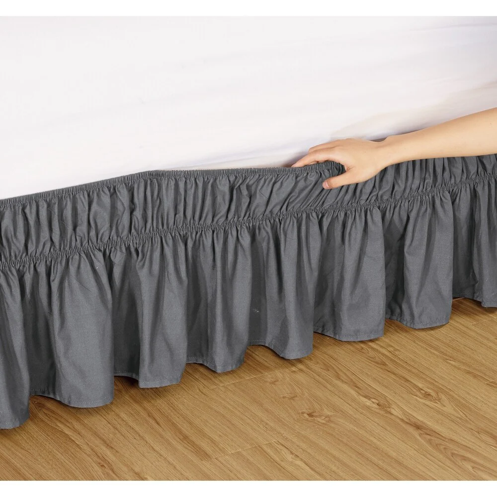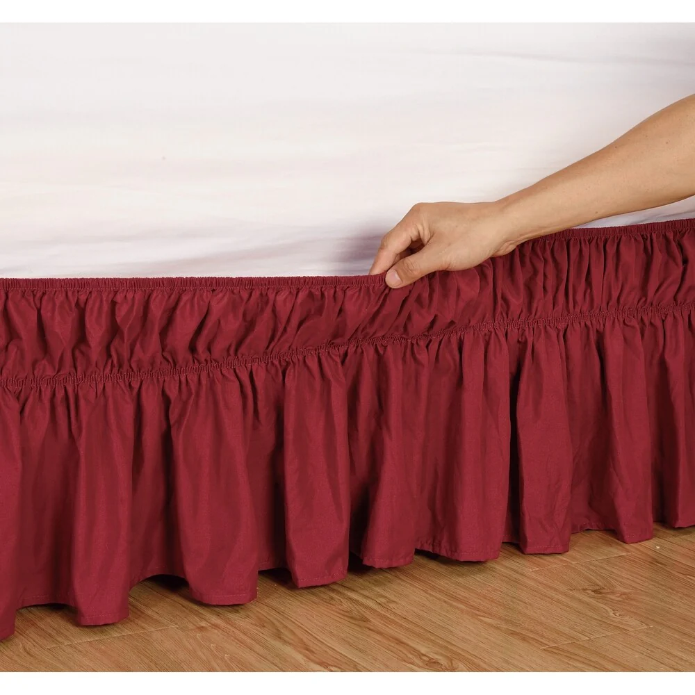 Simplify bed skirt installation with this wrap-around model. This soft brushed-microfiber bed skirt goes around the base of your bed without the need to lift up the box spring for easy on-off styling, and the ruffled construction adds a flowing texture to your bed base for an appealing finish.