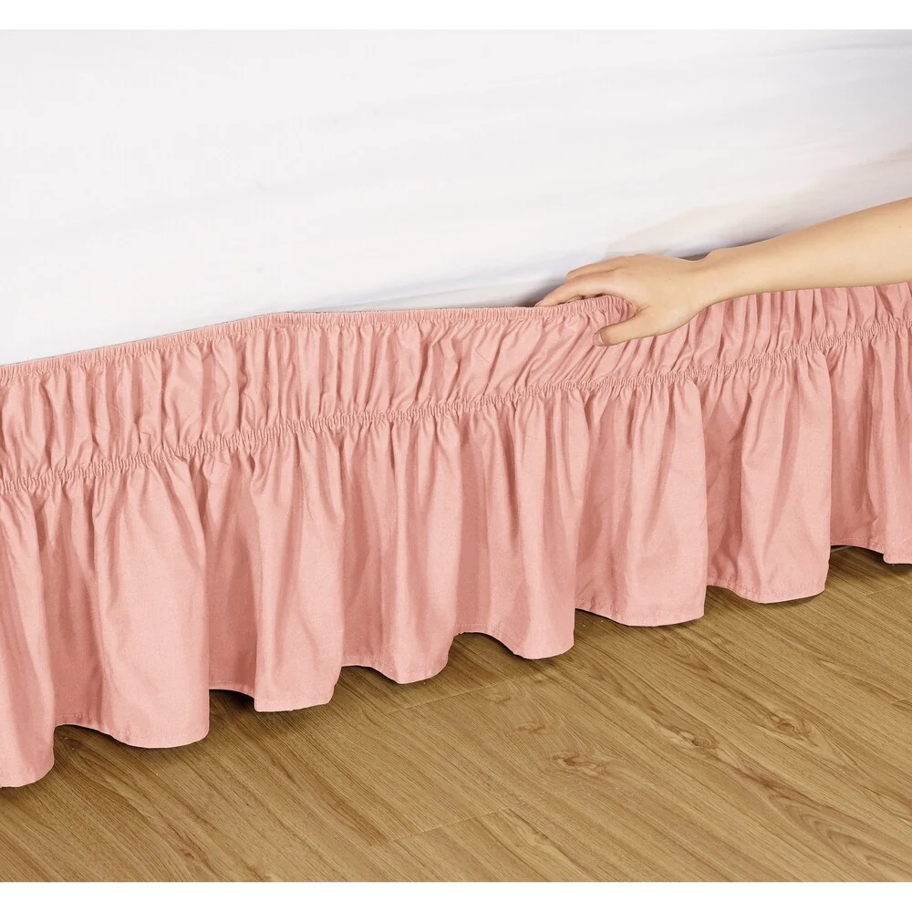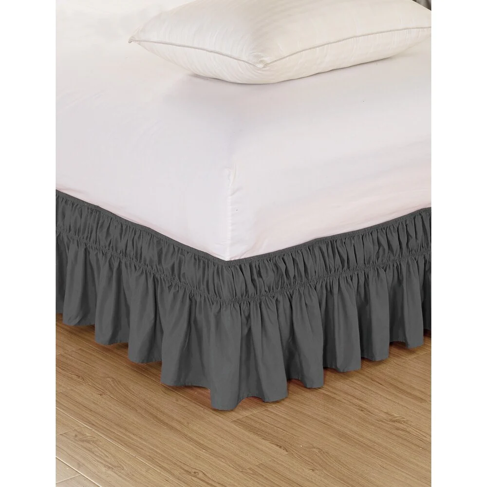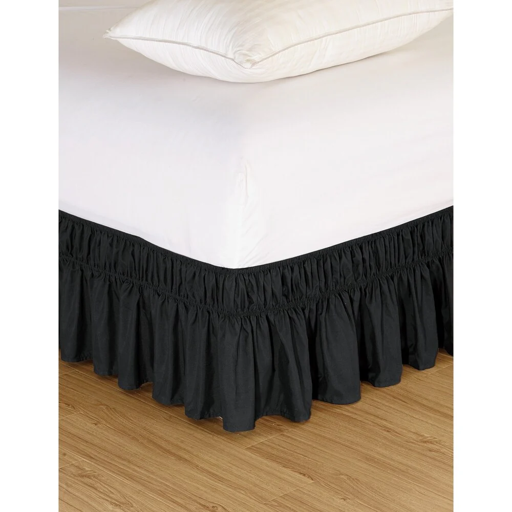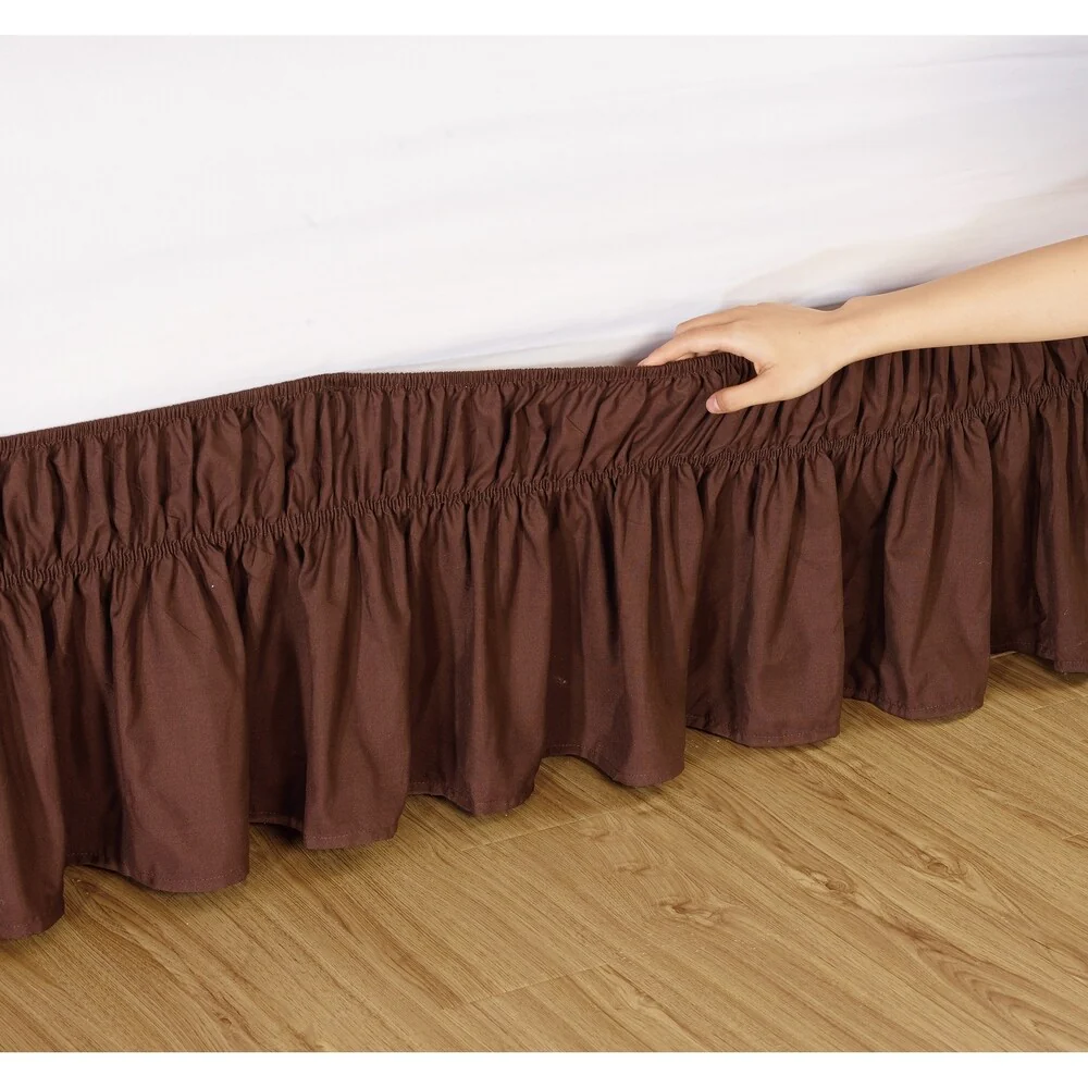 Simplify bed skirt installation with this wrap-around model. This soft brushed-microfiber bed skirt goes around the base of your bed without the need to lift up the box spring for easy on-off styling, and the ruffled construction adds a flowing texture to your bed base for an appealing finish.