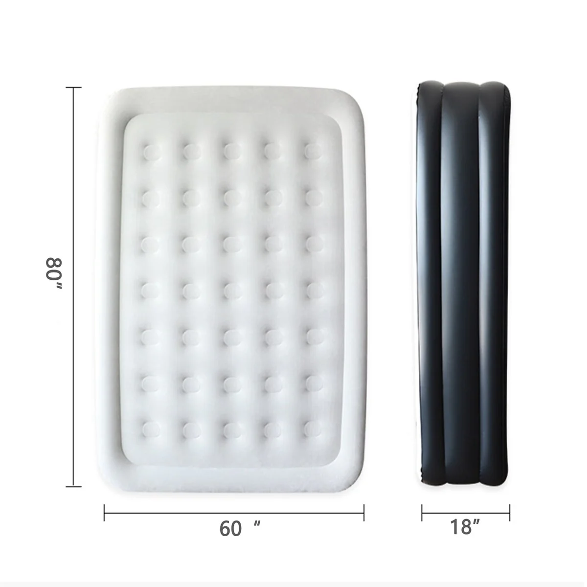 Introducing our Considerate Design Air Mattress, a perfect combination of comfort, stability, and convenience. The rounded grooves around the edges securely hold fitted sheets in place, while the high-quality PVC material at the bottom ensures excellent anti-skid and stability, eliminating worries about sliding or tilting during rest.