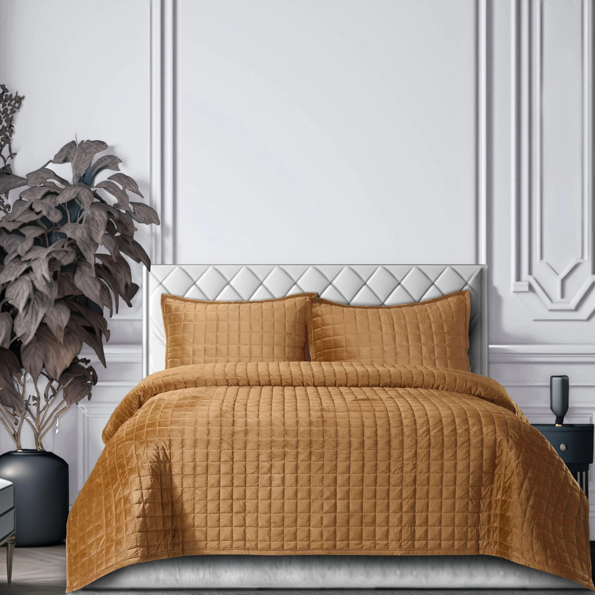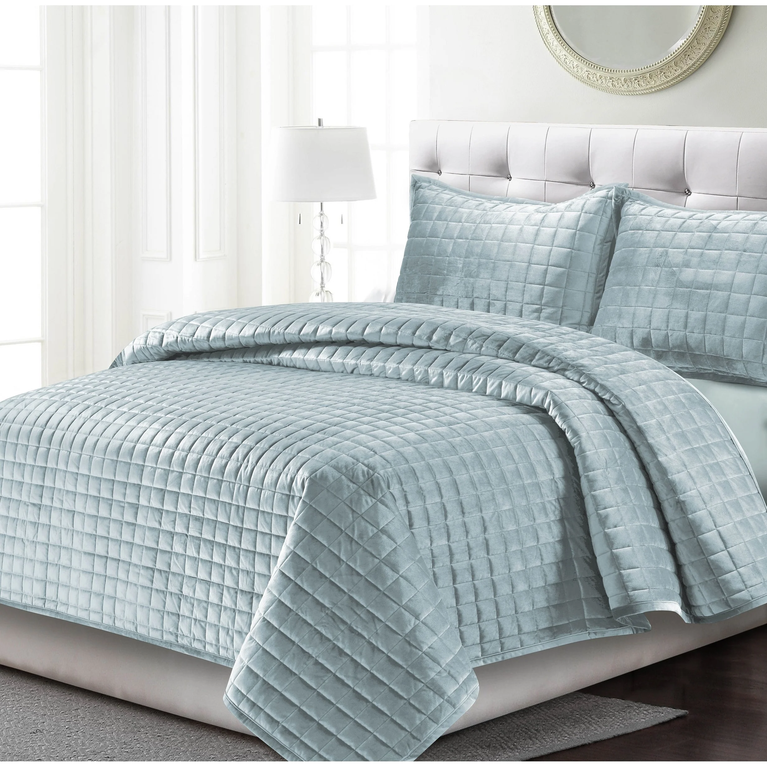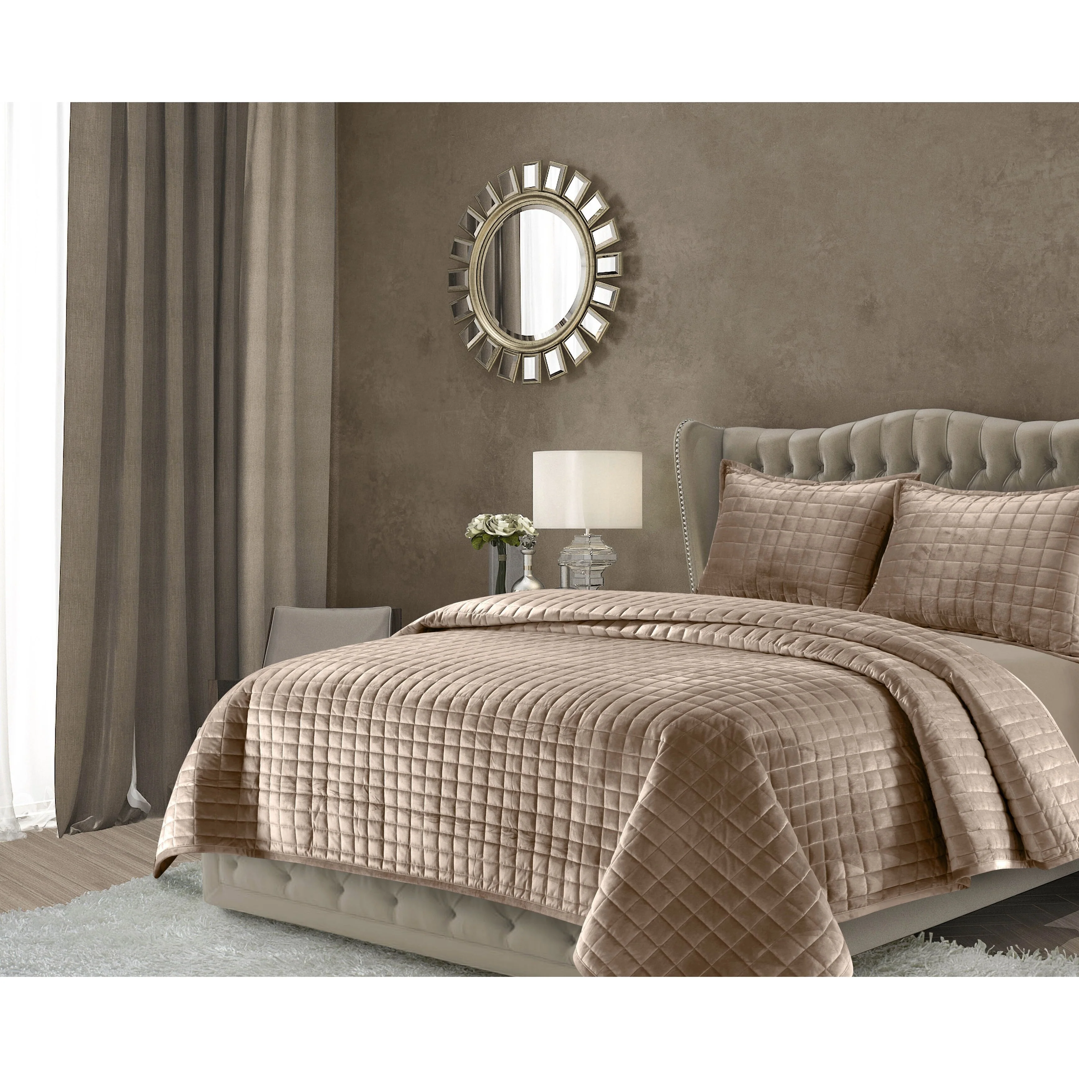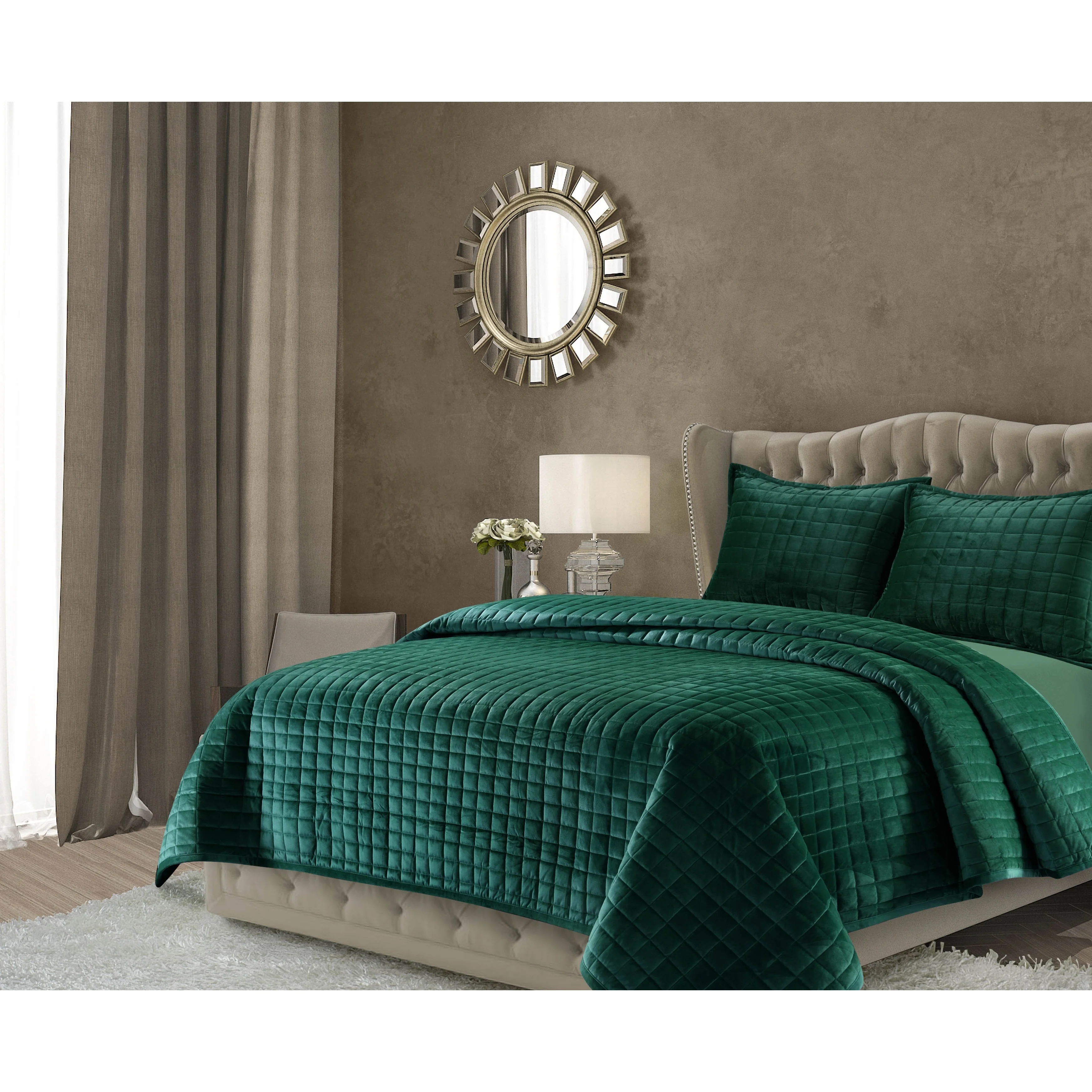 Add a touch of elegance to your bedroom with this luxurious Florence Velvet Oversized Solid Quilt Set. The quilt’s square-box stitching and solid color offer a classic and simple look that perfectly complements your current decor. Made with polyester velvet, it has a super-soft feel that guarantees a restful sleep. Its multiple available colors provide versatility and allow you to match it with any bedroom decor. Machine-washable for easy care, this bedding set is both stylish and practical.