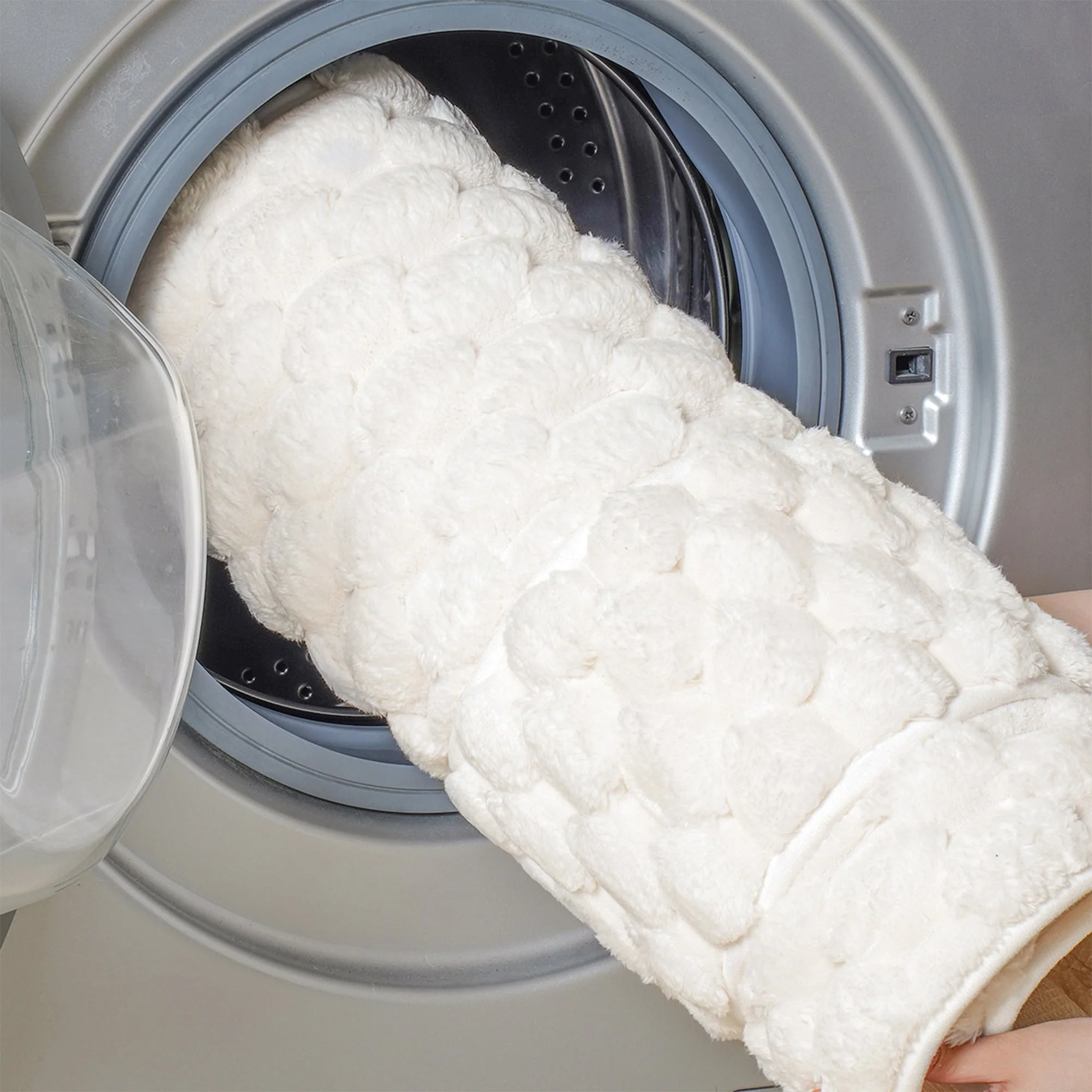 Non-Slip: Bathroom mat features a robust and enduring PVC backing, designed to prevent shifting or skidding.