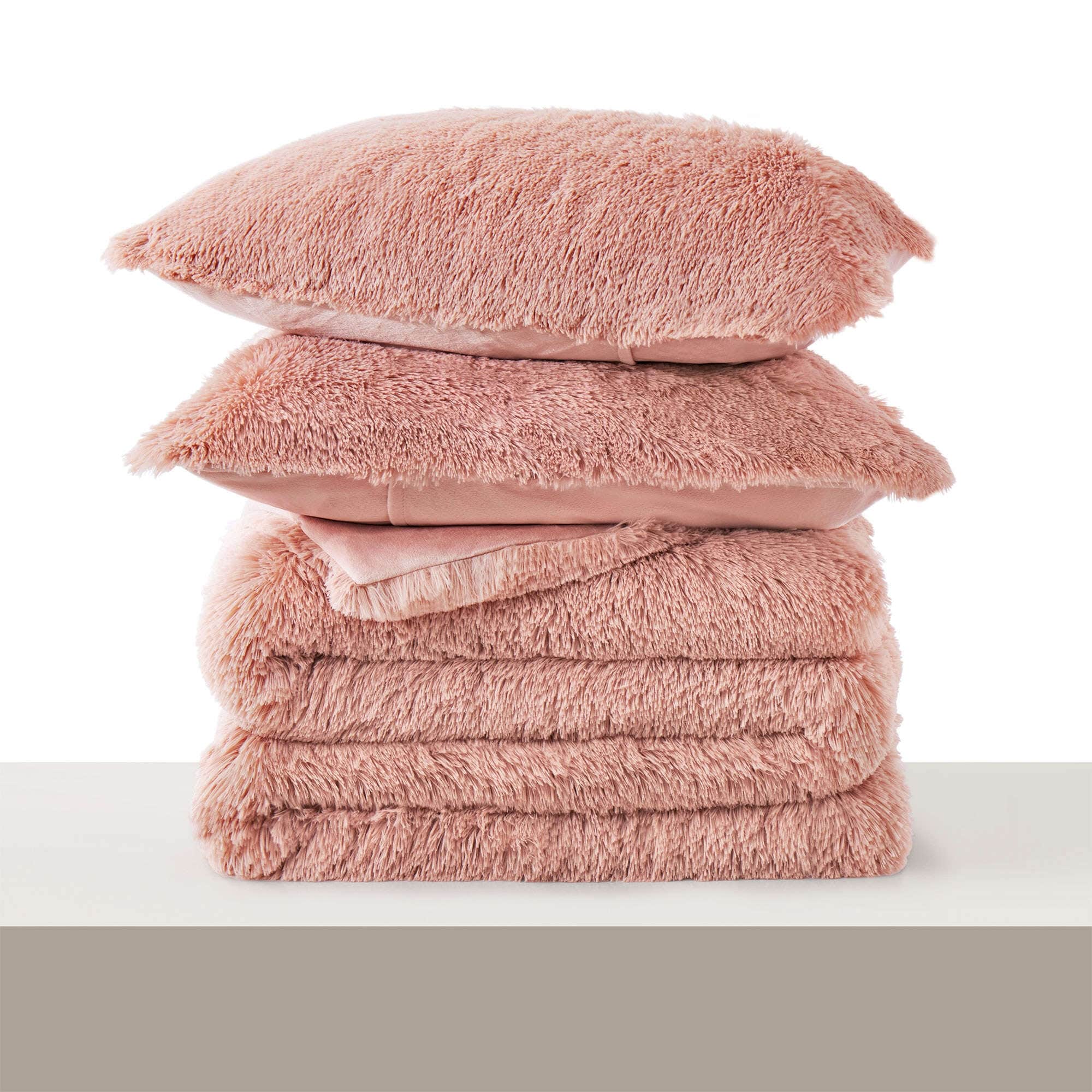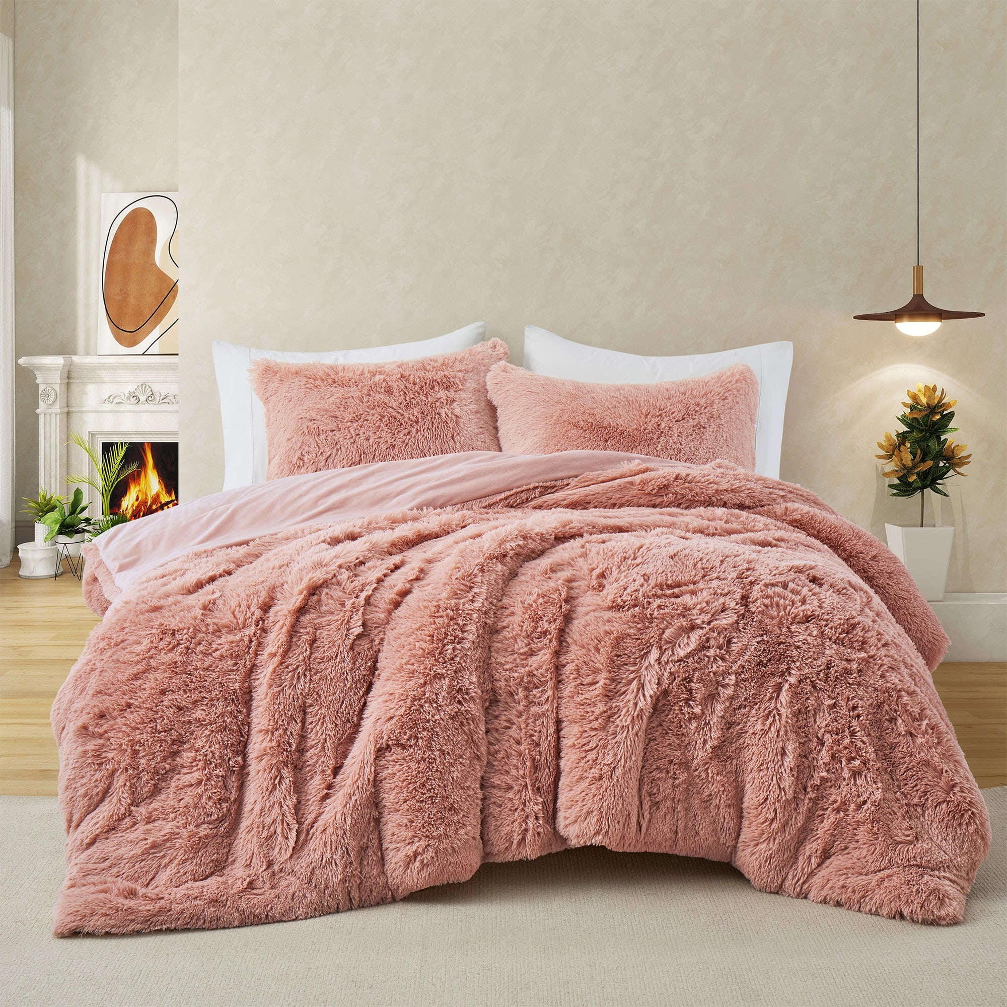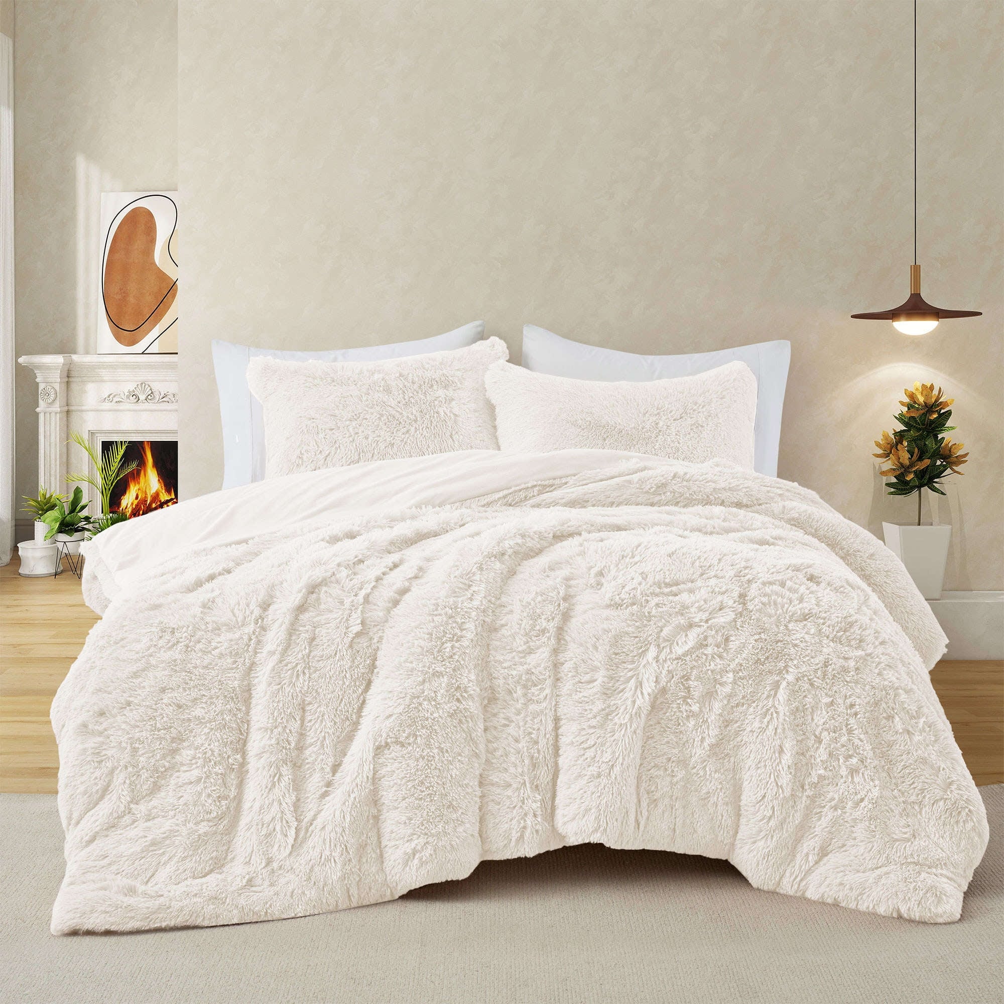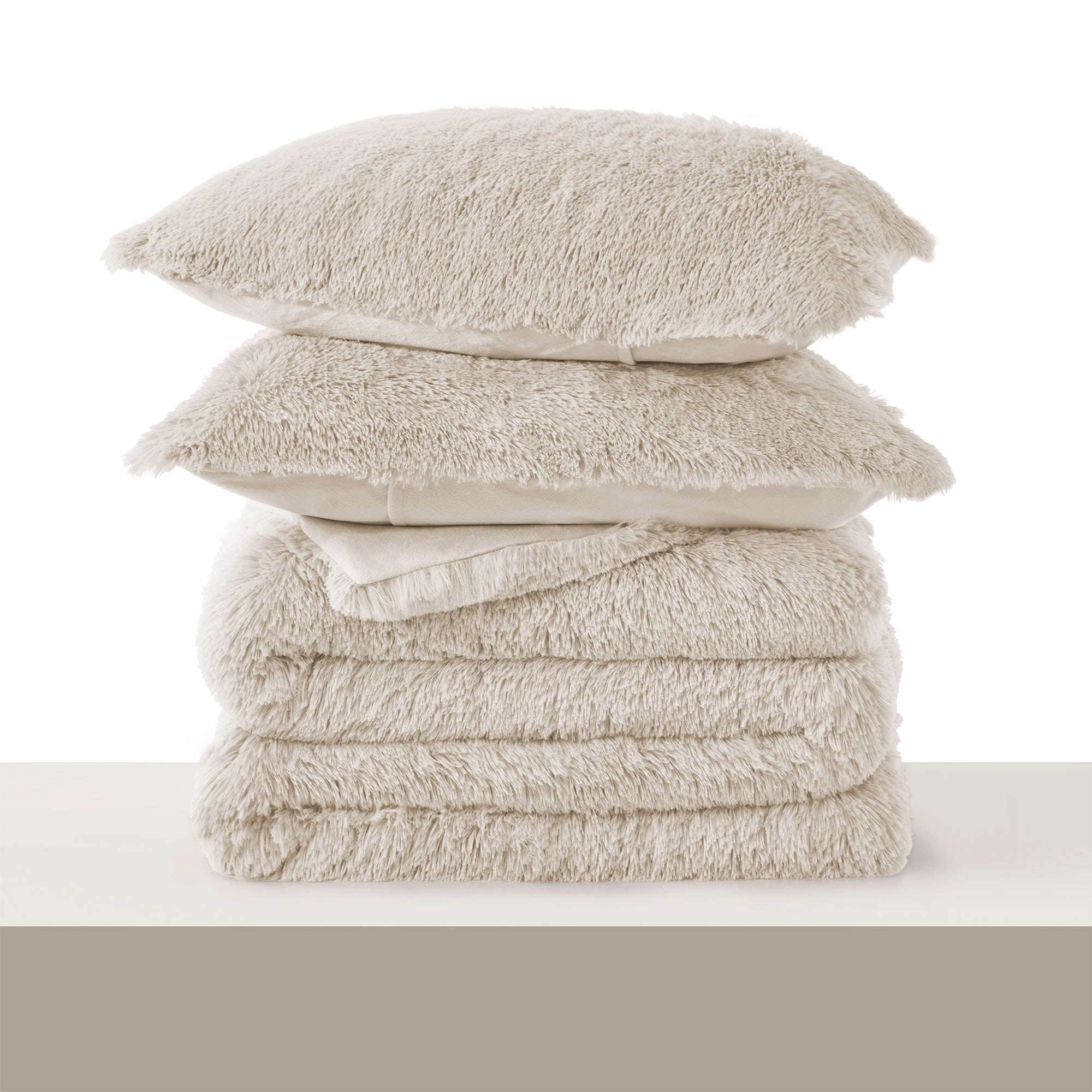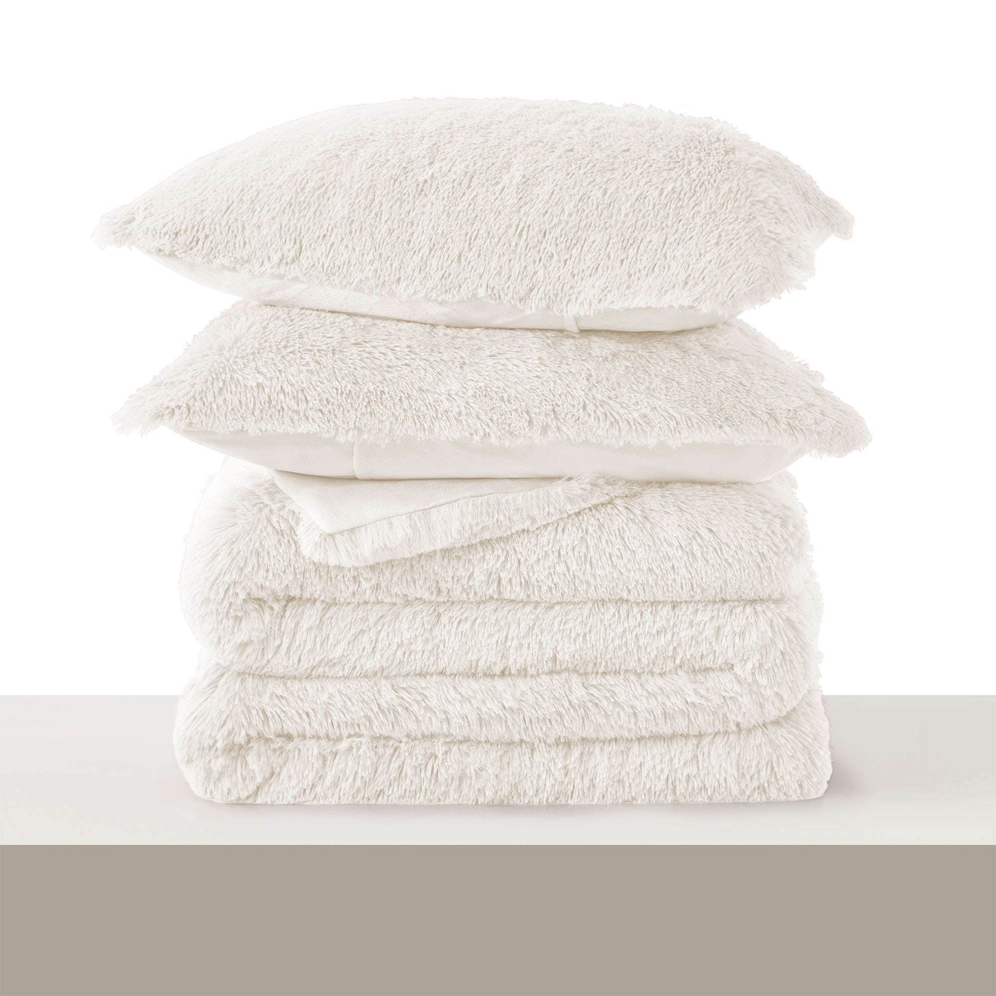 Fluffy Shaggy Reversible Faux Fur Comforter Set, Fuzzy Plush Bedding Set