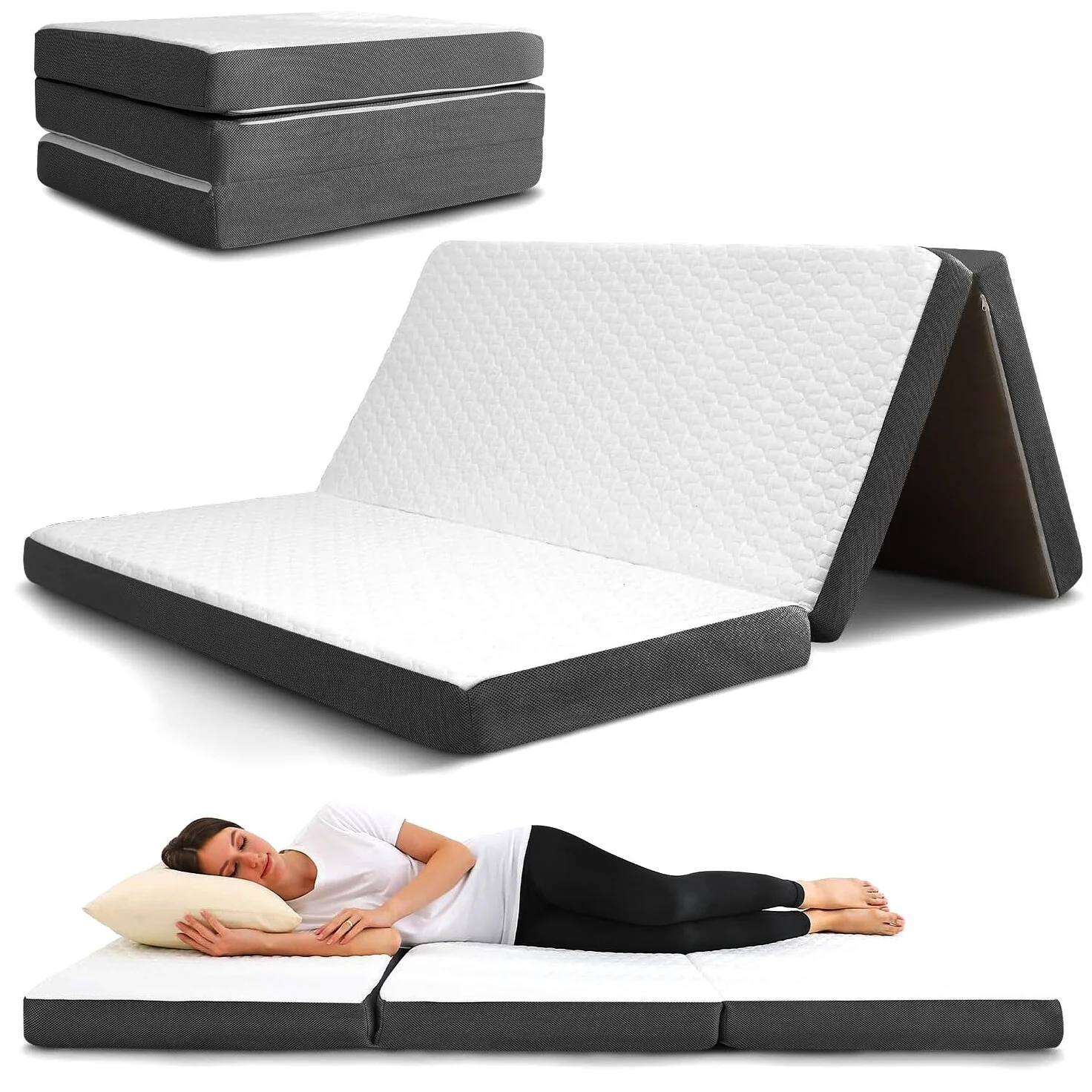 - THE TRI-FOLD MATTRESS IS CONSTRUCTED- luxurious memory foam and a supportive foam base for a great sleep experience.