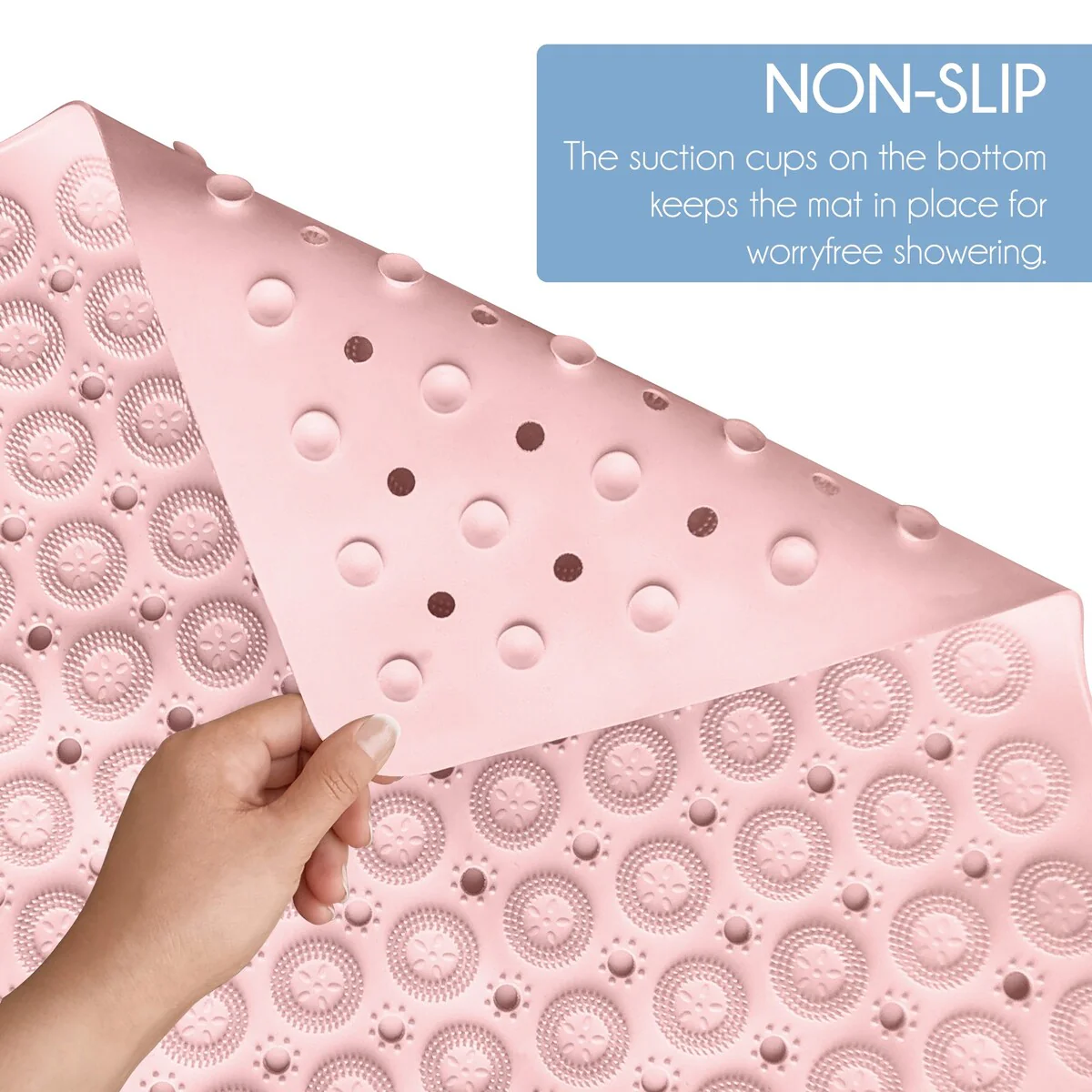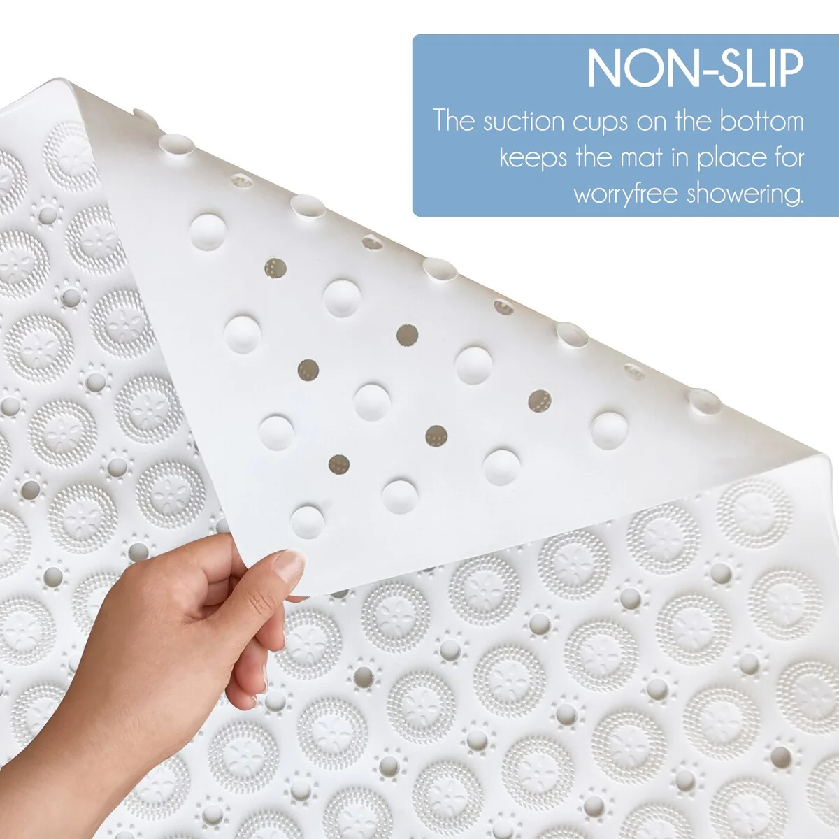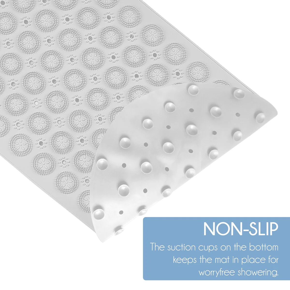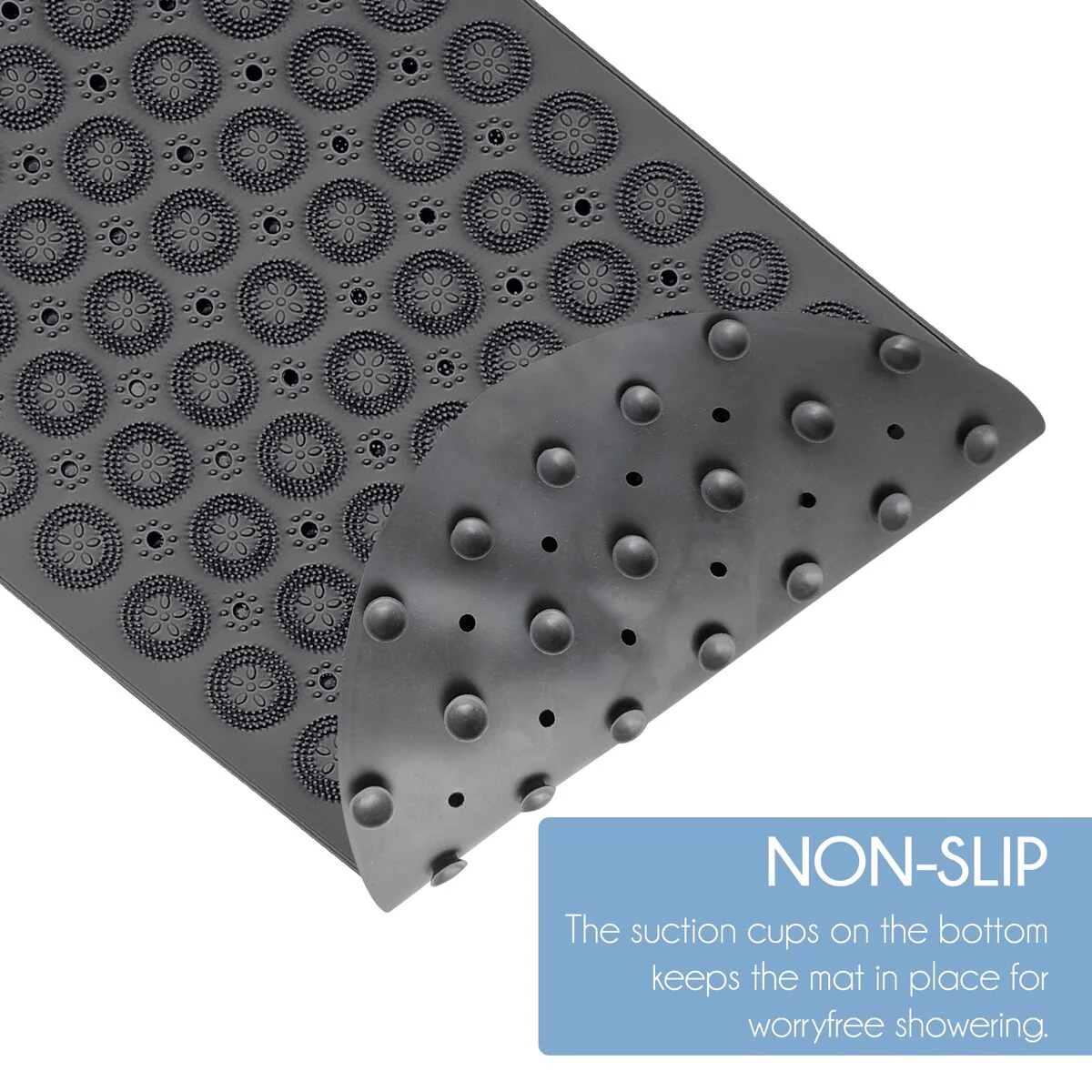 Strong Suction Cups: The mat has multiple strong suction cups that keep it securely in place, ensuring a safe and stable surface to stand on while in the tub. The suction cups are strategically placed to keep the mat from shifting or moving around while you bathe.