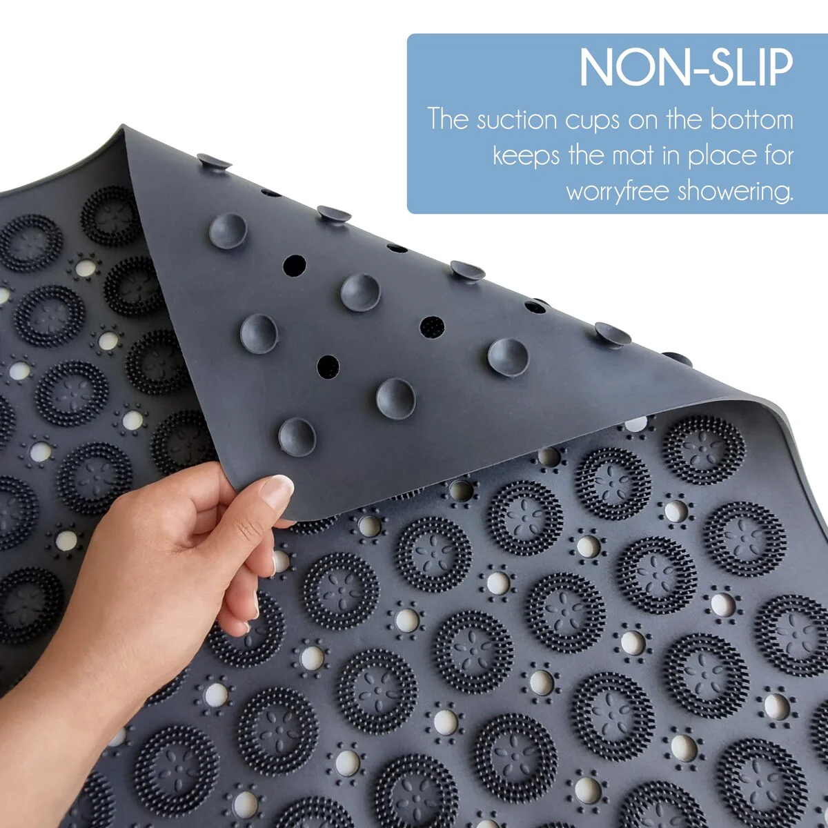 Introducing the Anti-Slip Bathtub Mat Massager with Suction Cups and Drain Holes! Keep yourself safe from slips and falls while enjoying a luxurious bath with this non-slip silicone bathtub mat. The mat features numerous suction cups that keep it securely in place, preventing slips and falls. With its clear design, this bath mat will blend in perfectly with any bathroom decor.