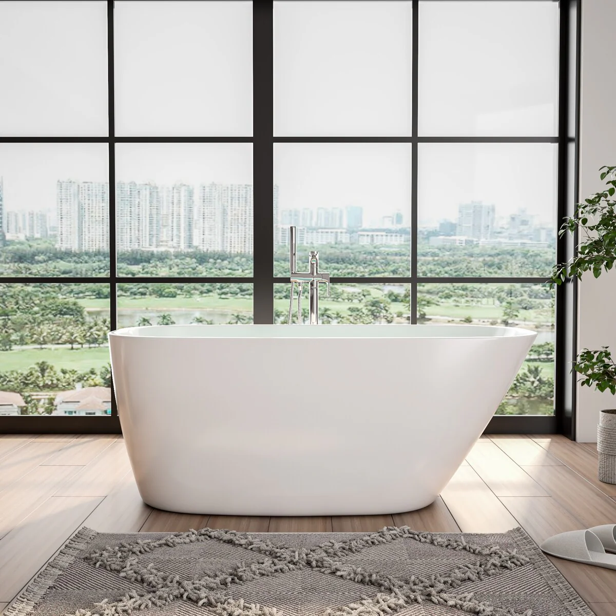 Bring classiness and neatness to your bathroom with this Vinura white freestanding bathtubs<br>