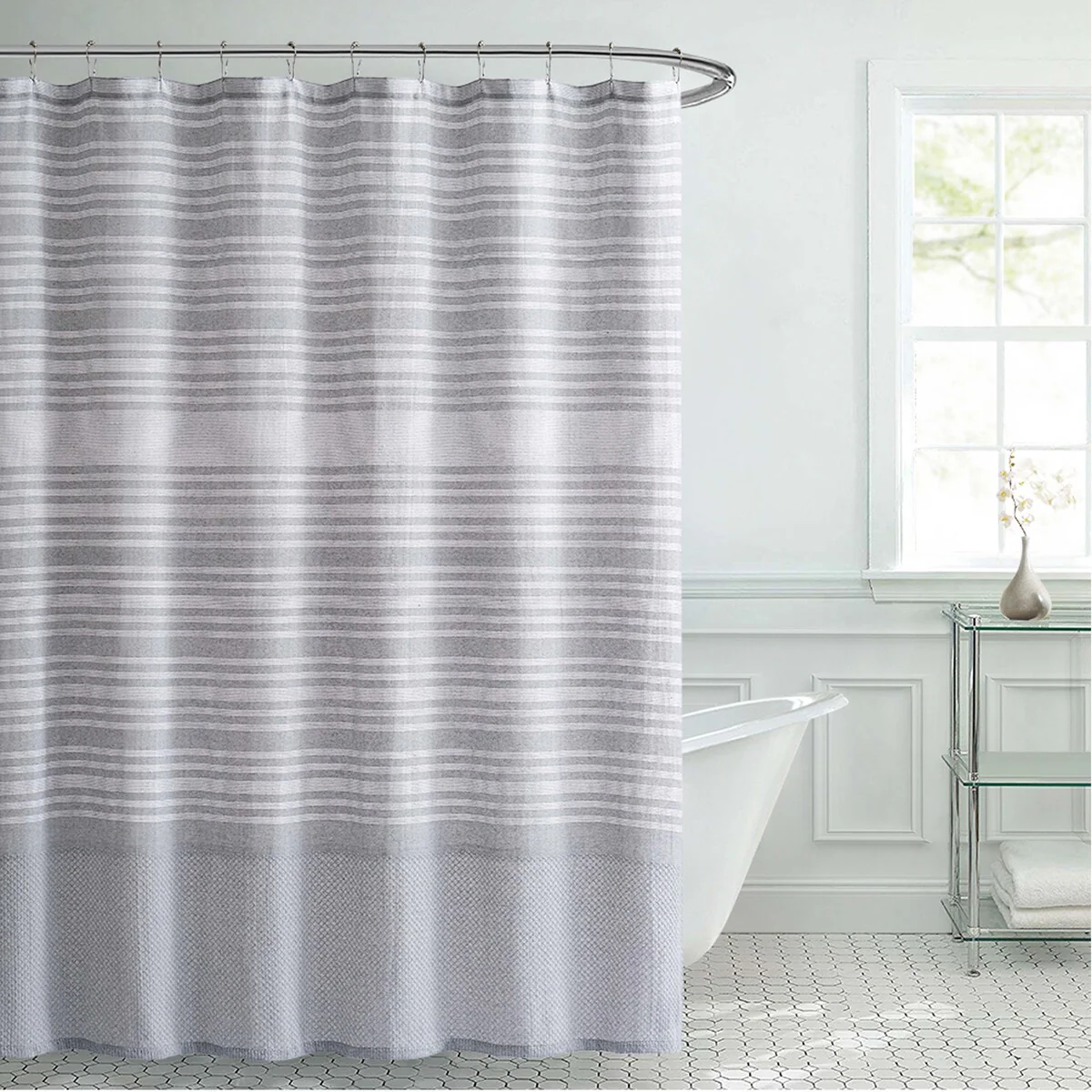 Cotton Blend Honeycomb Waffle Shower Curtain with Snap-in Liner