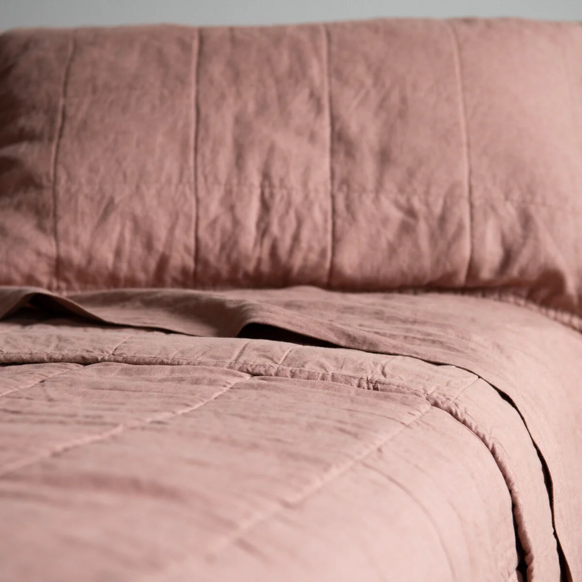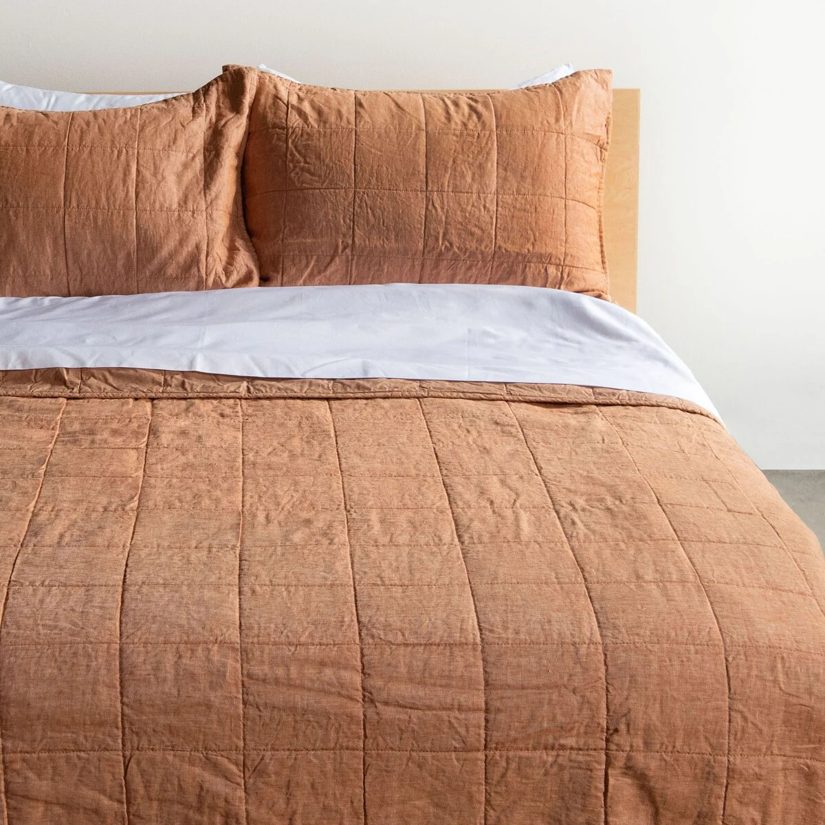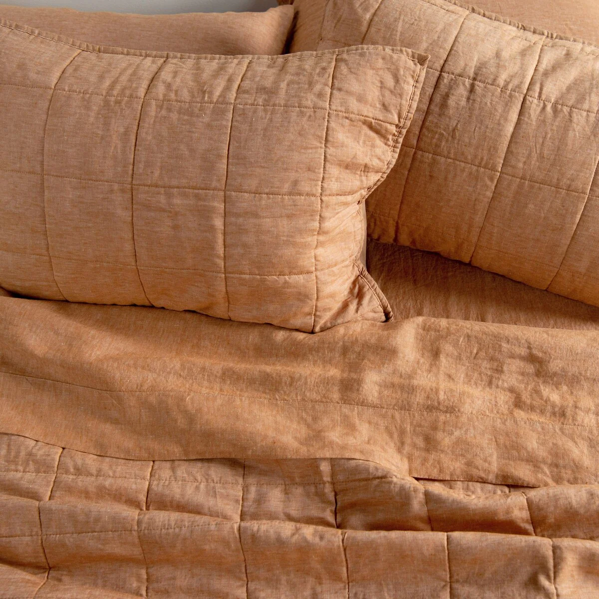 Our quilted shams have a 100% French linen front and 100% cotton reverse. The combination of textured washed linen and super soft cotton give this a sumptuous lived-in feel that keeps you warm in the winter and cool in the summer.