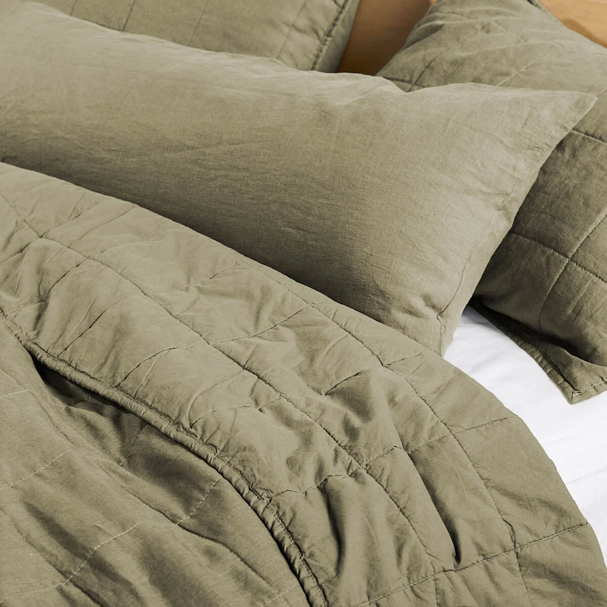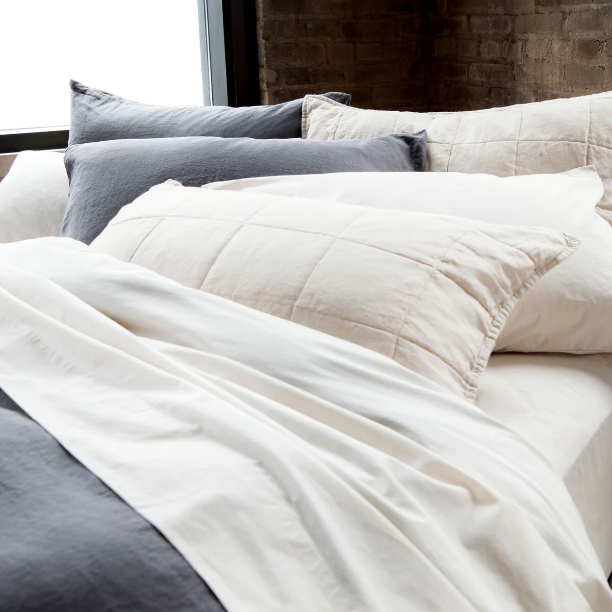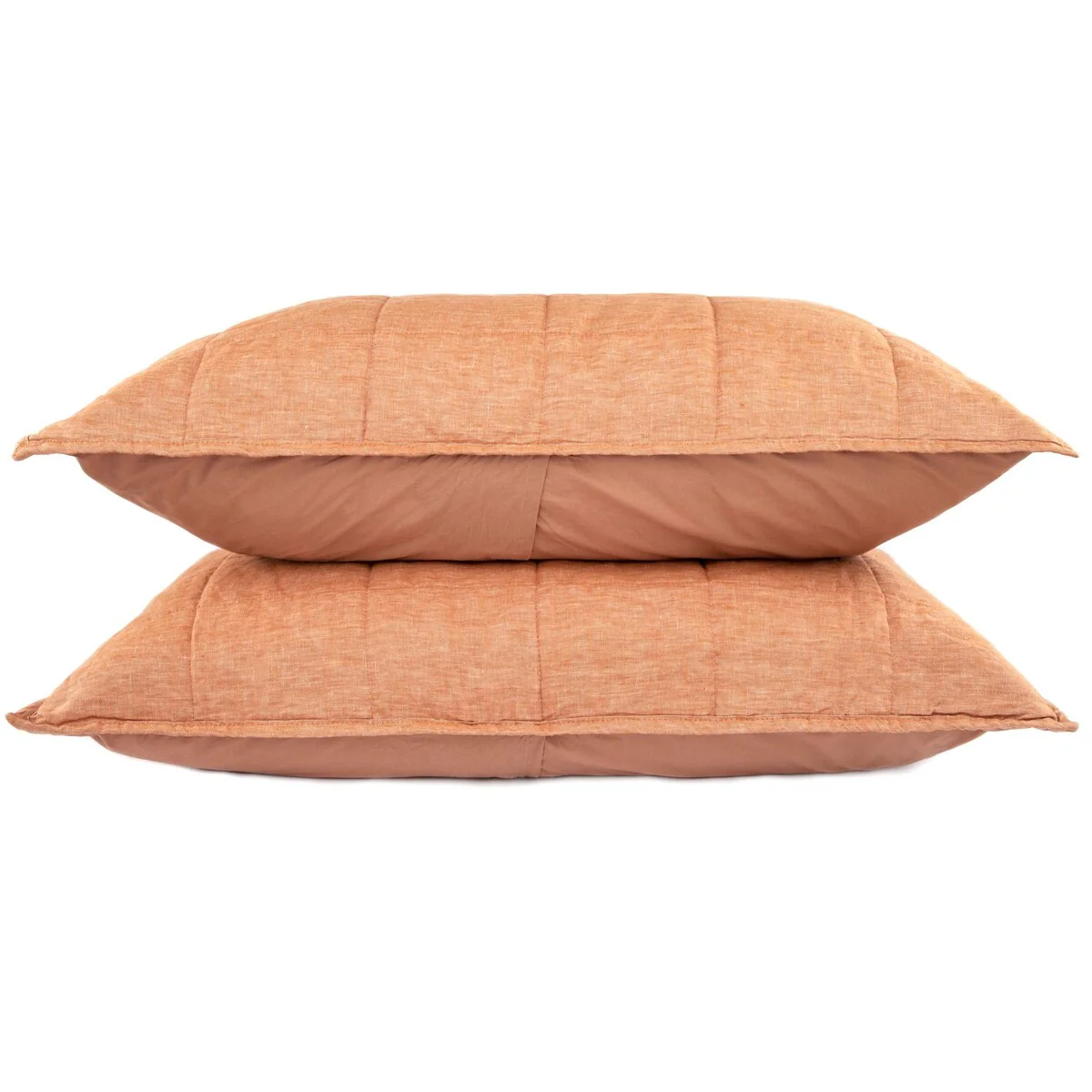 Our quilted shams have a 100% French linen front and 100% cotton reverse. The combination of textured washed linen and super soft cotton give this a sumptuous lived-in feel that keeps you warm in the winter and cool in the summer.