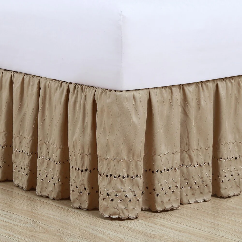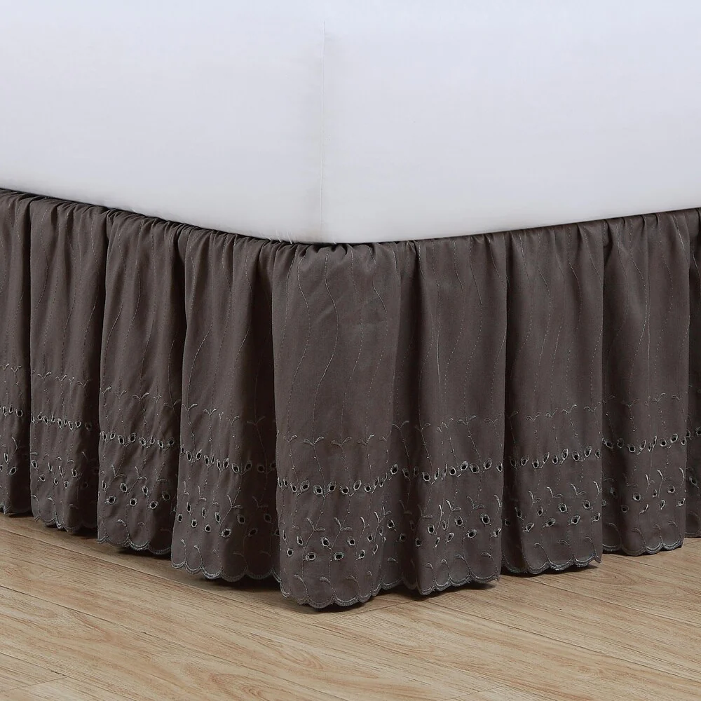 Complete the look of your bed with the Fresh Ideas Lauren Heirloom Ruffled Eyelet 14-inch Drop Bedskirt. This bedskirt is crafted from a soft cotton-poly blend that is both durable and machine washable. Its heirloom ruffled eyelet design adds a feminine touch to any bedroom decor. With a 14-inch drop, this bedskirt is perfect for hiding under-bed storage and comes in white, ivory, grey, or mocha to match your bedding.