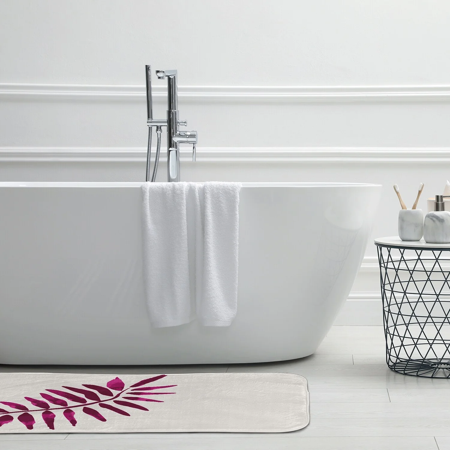 Create a lively tropical spirit and an inviting breezy atmosphere in your home with a 24" x 17" Purple Frond 2 Bath Mat from our Tropical Resort Collection. Place this bath mat beside your tub or shower to add pizzazz to your bath space! Your toes will appreciate that each bathmat is plush and cushy. Additionally, it has a non-slip backing and when laundering is needed, it comes out of the wash looking like new.