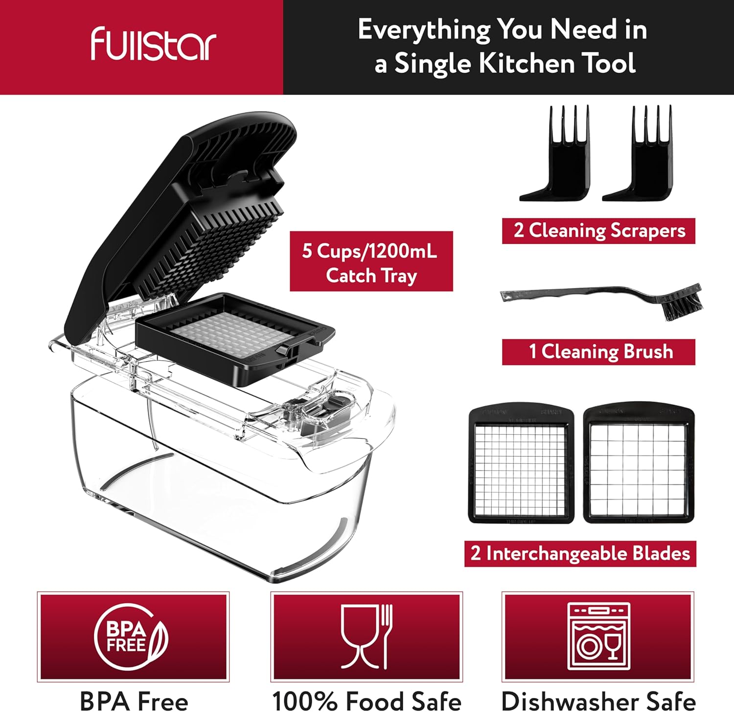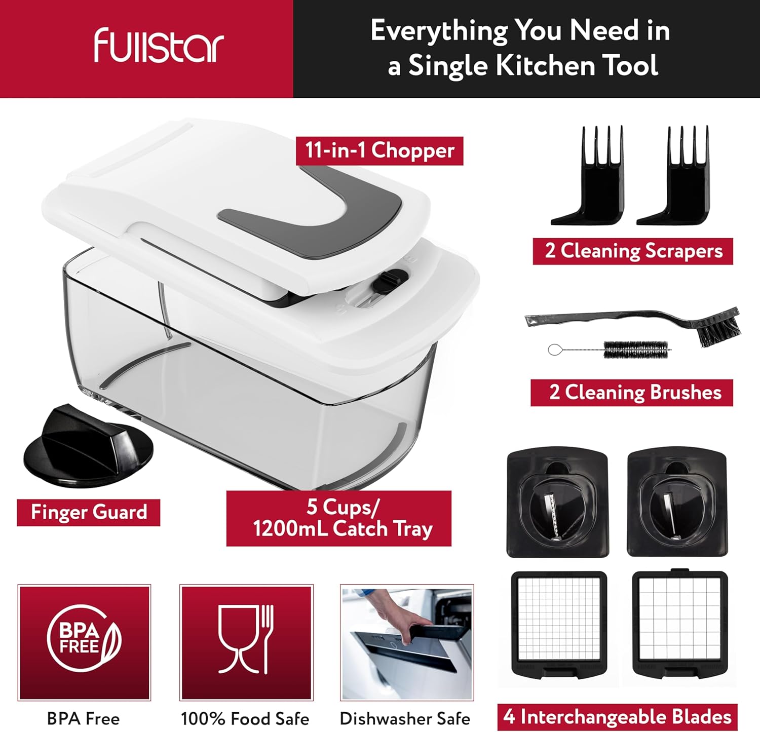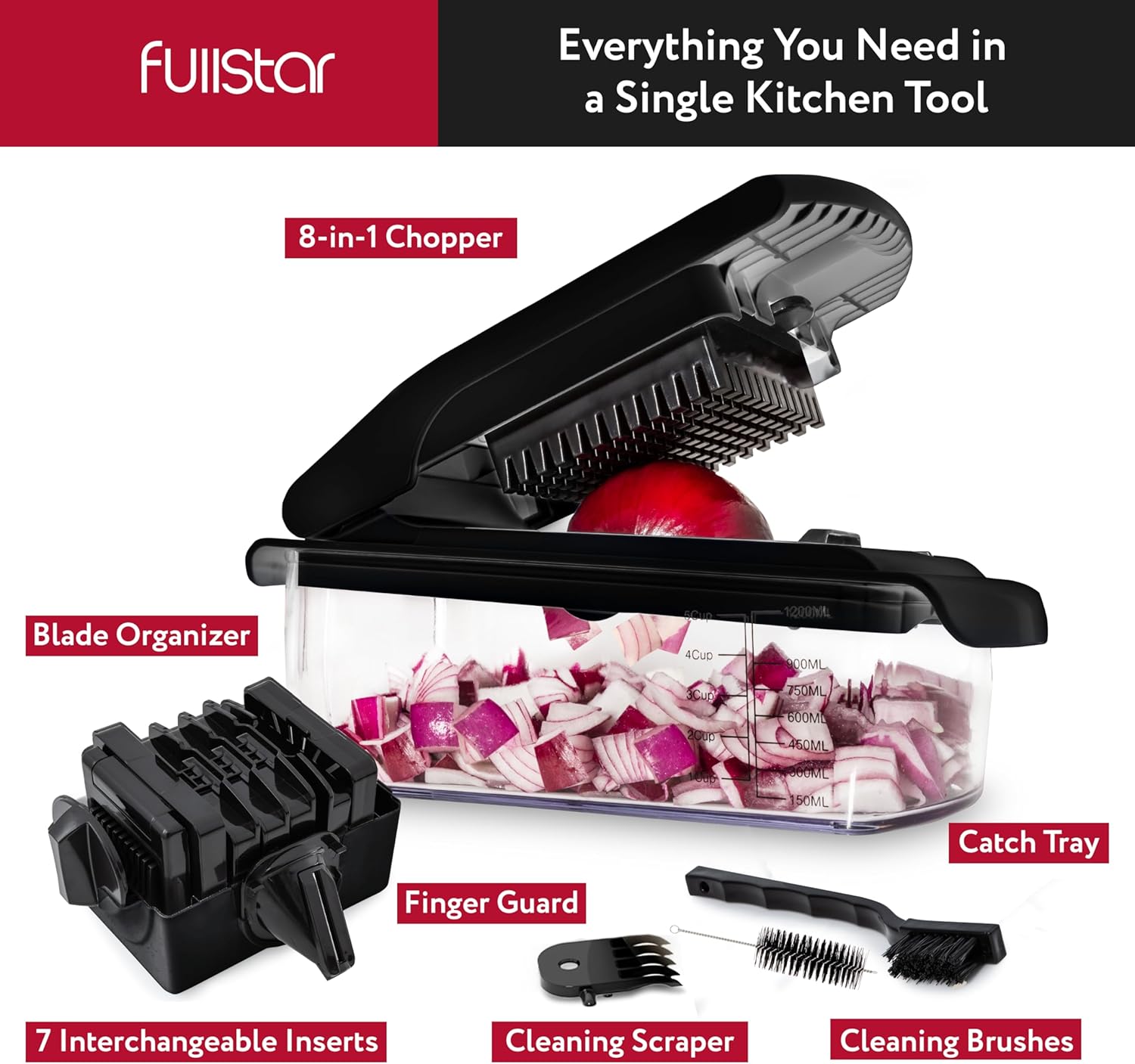 Fullstar Vegetable Chopper – Food Chopper – Onion Chopper – Vegetable Slicer & Spiralizer – Veggie Chopper with Container – Kitchen Gadgets – Home Essentials – Kitchen Accessories (4 in 1, White)