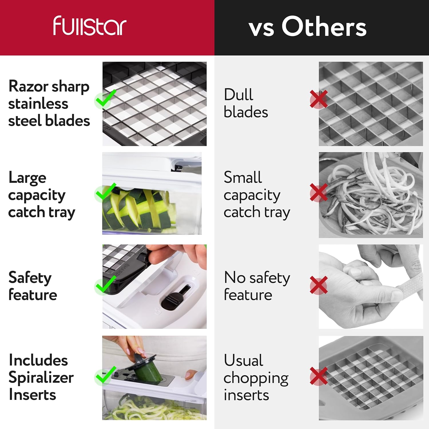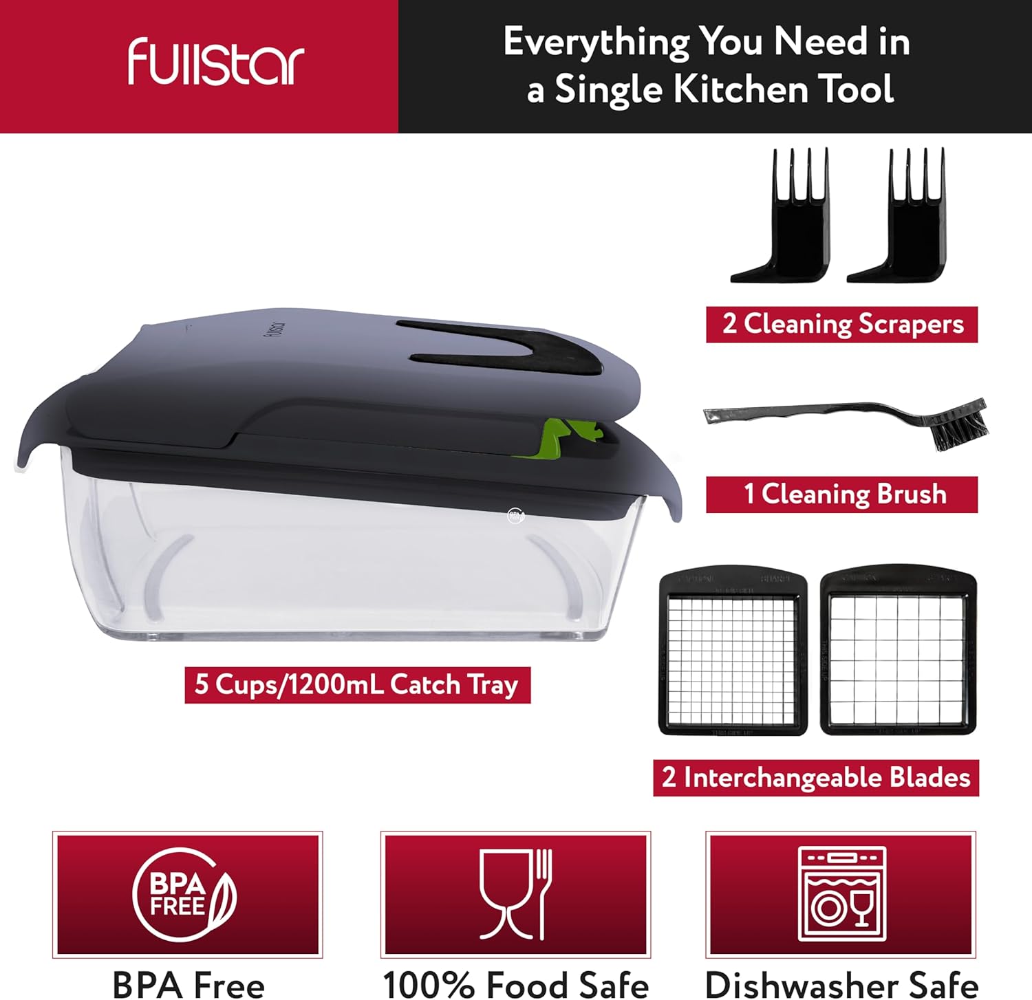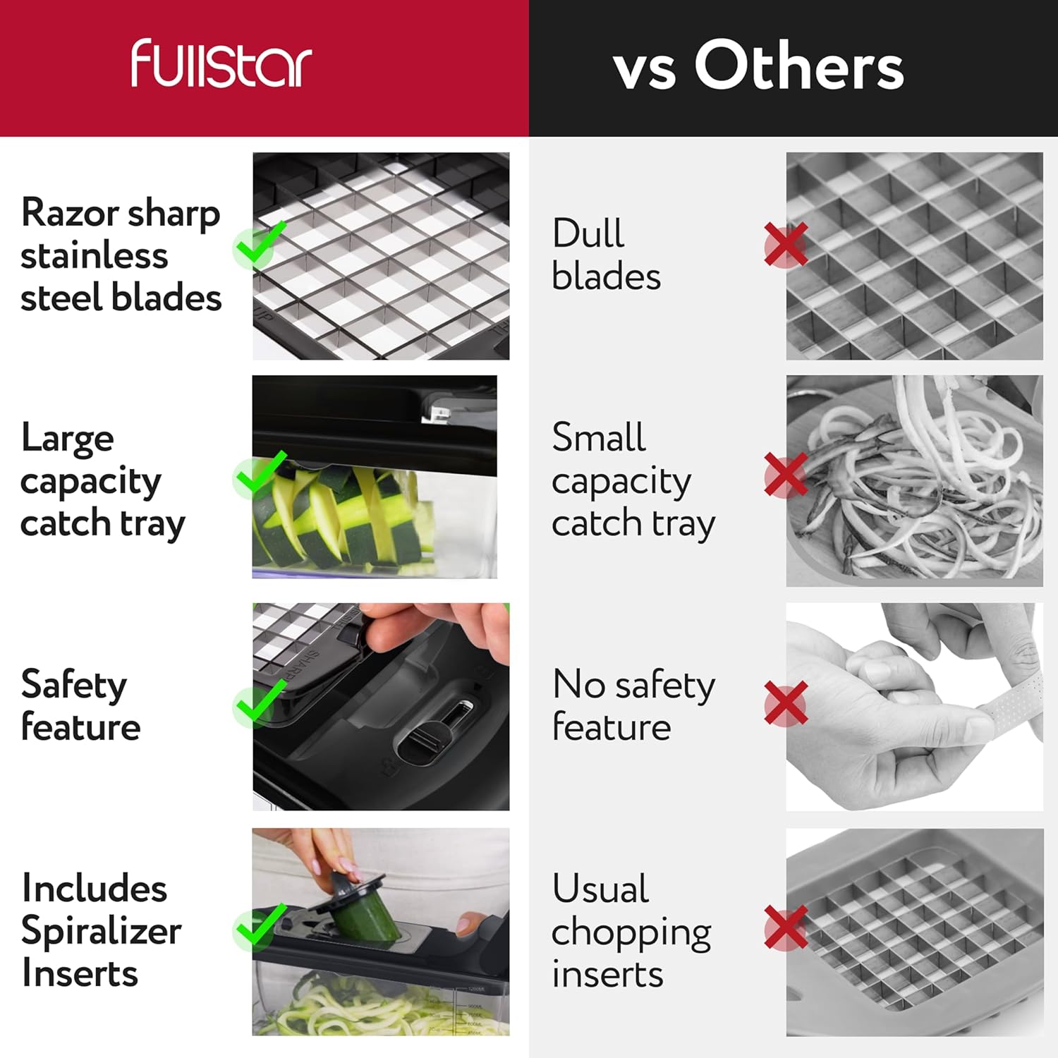 Fullstar Vegetable Chopper – Food Chopper – Onion Chopper – Vegetable Slicer & Spiralizer – Veggie Chopper with Container – Kitchen Gadgets – Home Essentials – Kitchen Accessories (4 in 1, White)