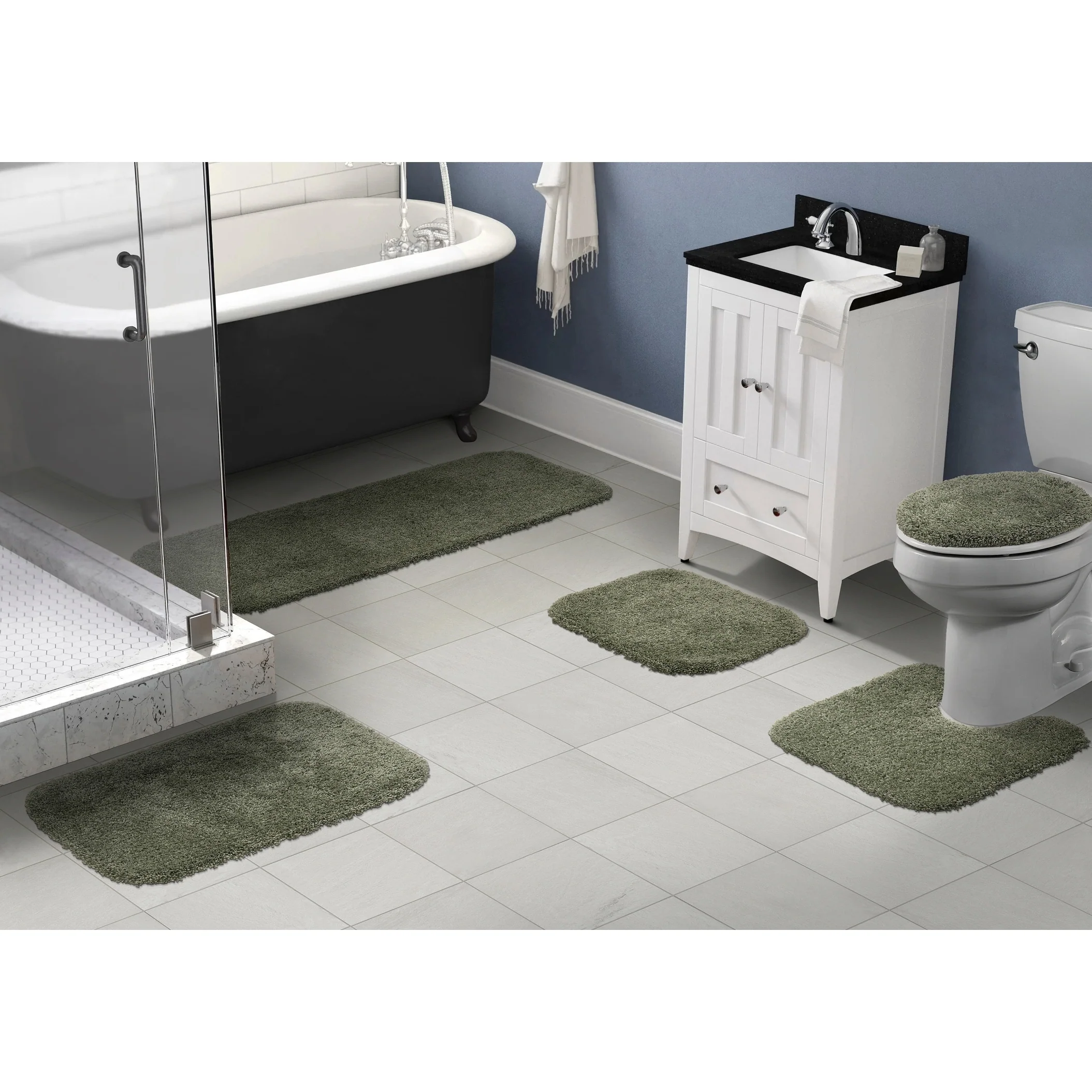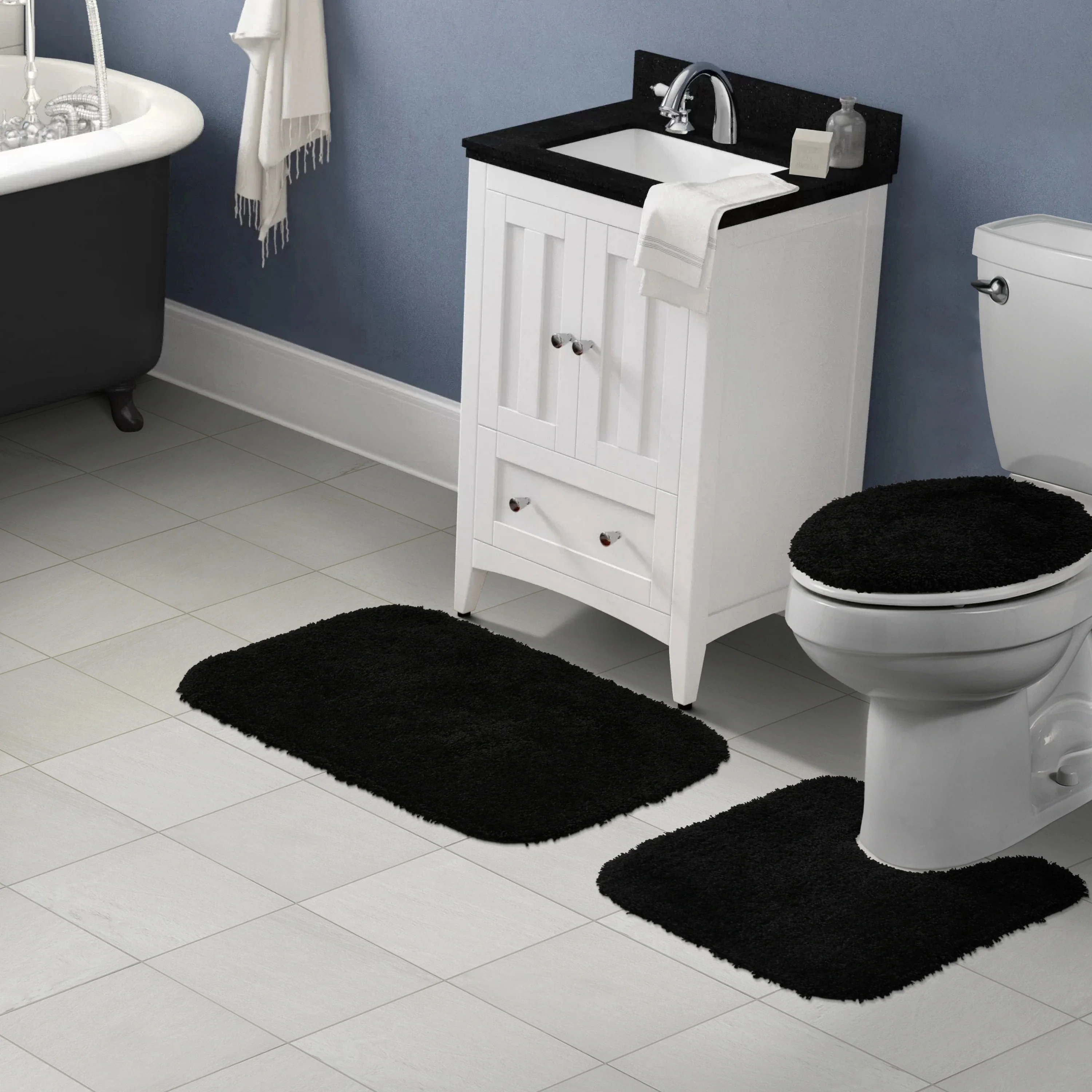 - 3 Piece Set: 21-in x 34-in Bath Rug, 21-in x 24-in Toilet Contour, and a 17-in x 14-in Toilet Lid Cover