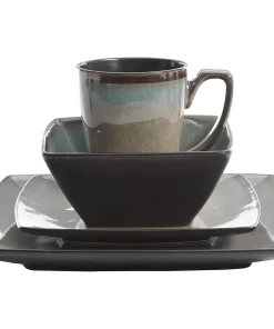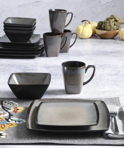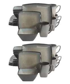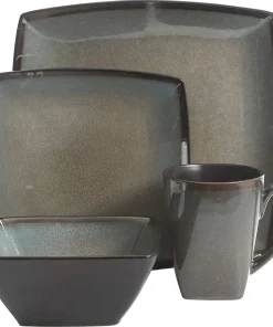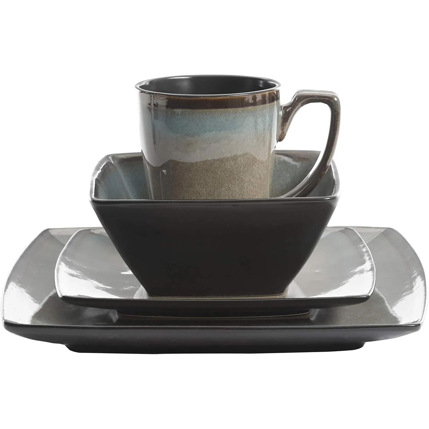Your dinner guests will admire the presentation of the embossed reactive glaze on the stoneware of the Gibson Elite Tequesta 16-Piece Square Dinnerware Set. The taupe 16-piece dishware set offers distinguished style for any table with a design that features simple details. This dinnerware set includes 4 dinner plates, 4 dessert plates, 4 bowls, and 4 mugs.Each dishware piece is made of durable stoneware and a reactive glaze finishing technique. This basic dishware set brings the beauty of nature to your tabletop while also being dishwasher and microwave safe to make cleaning easy. This table dish set is made for long-lasting beauty and durability to ensure use for many dinners to come.This formal or casual dining set is the perfect touch with every dinner of your choice. No matter the occasion, you’ll love setting the table with the Gibson elite 16-piece dinner set for years to come.