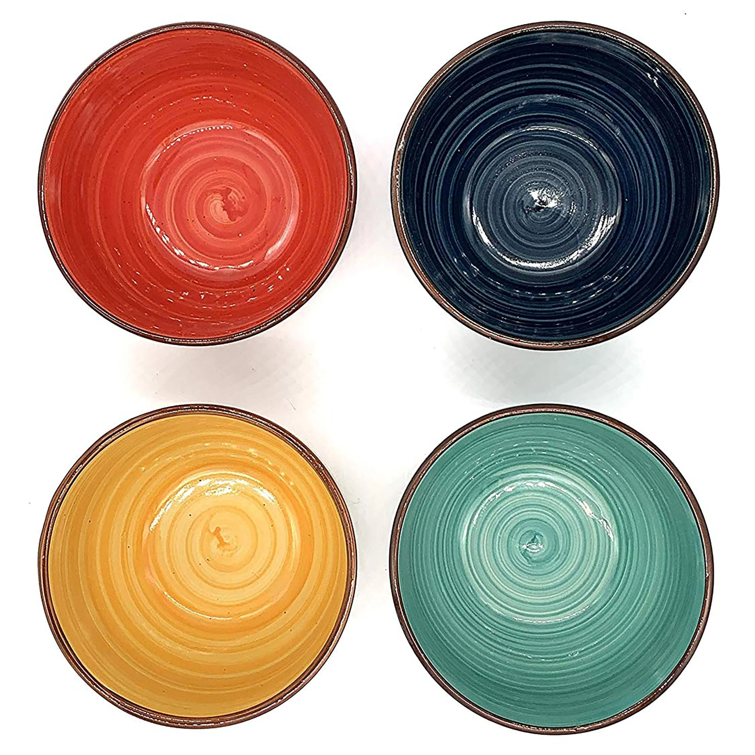 Gibson Color Speckle 4 pc 5.25" Cereal Bowl Set is the most inviting color rich dish set. Speckled with swirls, the eye is naturally drawn to the center of the meal the plates carry. Its’ bright colors will have your guests asking for more of the food you are serving.The dishes are stoneware with gloss finish making this set a must have!,,The set includes:,,Four Cereal Bowls in at 5.25 inches,,The set is dishwasher safe for easy cleaning