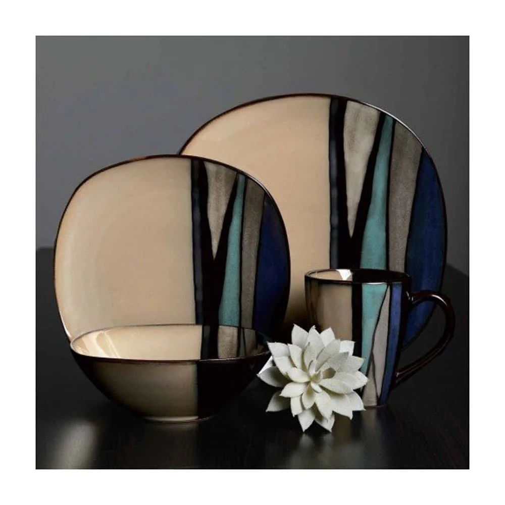 Your dinner guests will admire the presentation of the embossed reactive glaze on the stoneware of the Gibson Elite 16-Piece Reactive Glaze Dinnerware Set. The teal Gibson Elite 16-piece dishware set offers distinguished style for any table with a design that features a cool cream color and striking teal details. This dinnerware set includes 4 dinner plates, 4 dessert plates, 4 bowls, and 4 mugs.Each dishware piece is made of durable stoneware and a reactive glaze finishing technique. This basic dishware set brings the beauty of nature to your tabletop while also being dishwasher and microwave safe to make cleaning easy. This table dish set is made for long-lasting beauty and durability to ensure use for many dinners to come.This formal or casual dining set is the perfect touch with every dinner of your choice. No matter the occasion, you’ll love setting the table with the Gibson Elite 16-piece dinner set for years to come.