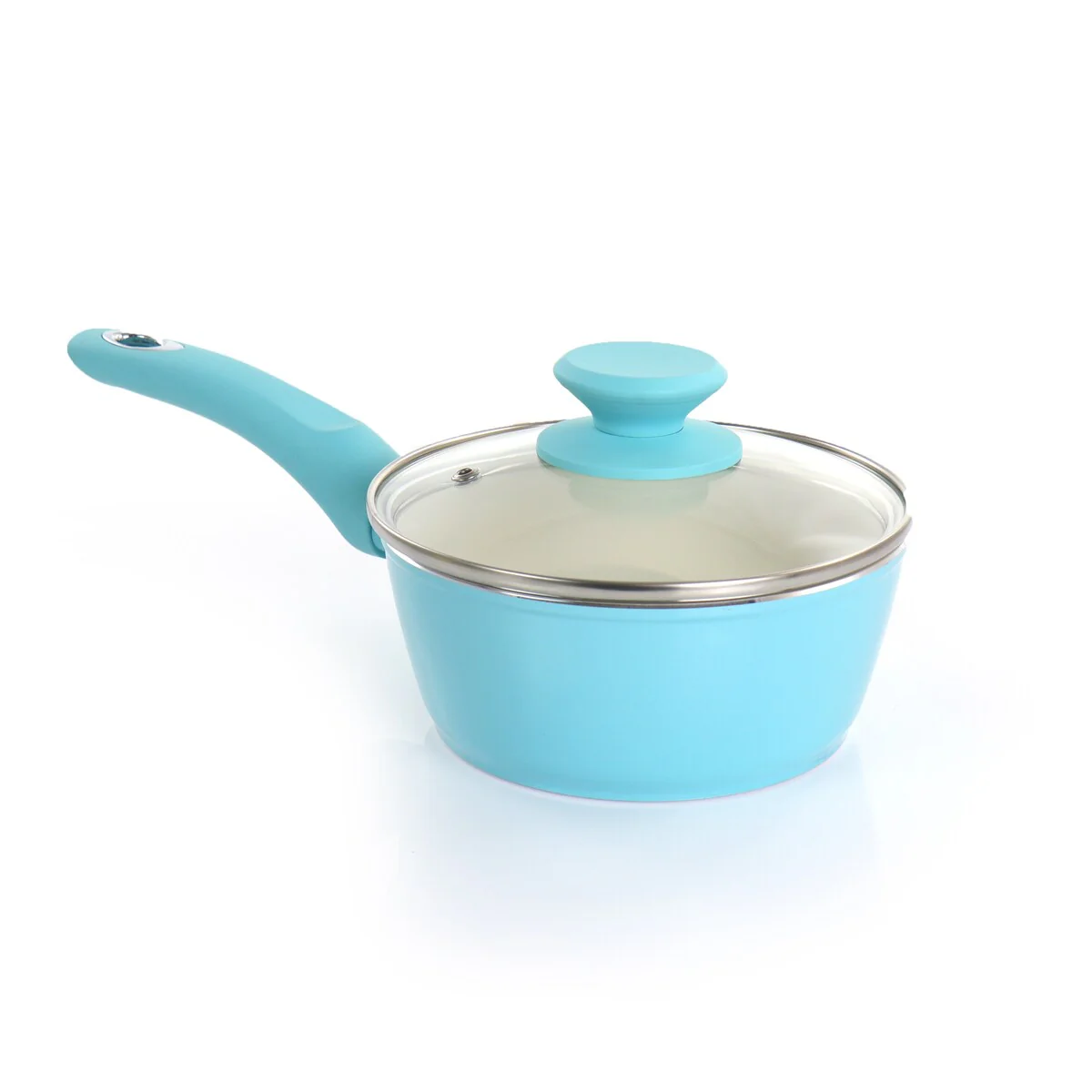 Step up your cooking game with the essential Gibson Home Pastel 19 Piece Aluminum Nonstick Ceramic Cookware Combo Set in Assorted Colors. The cookware set allows for multiple cooking jobs as each size can hold the appropriate portion for the perfect meal. The heavy gauge aluminum base is built to handle gas, electric, halogen, and induction heat. Cut down on fats and oils with the nonstick ceramic coating; allowing for much healthier dishes. Create outstanding omelettes, Cajun spiced chicken, fantastic fried rice or many other plates for guests to enjoy.