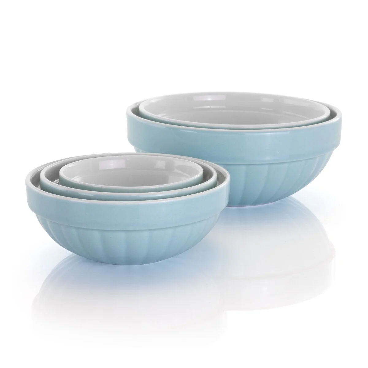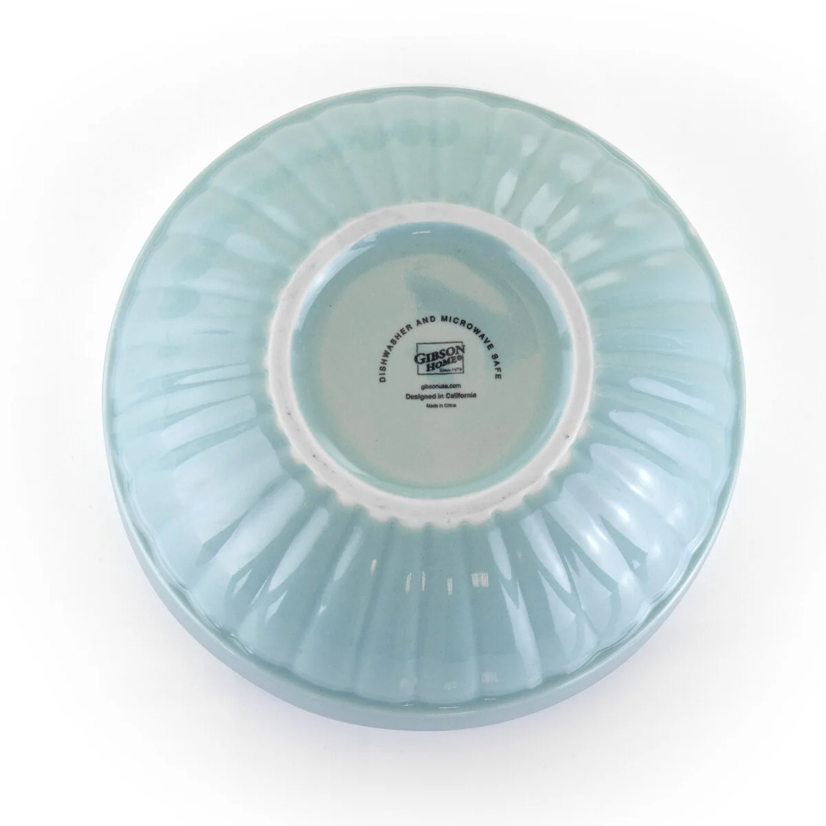 The Gibson Home Plaza Cafe 5 Piece Assortment Round Stoneware Bowl Set in Blue is a bare essential, crucial for any home kitchen. Featuring a round body with a scalloped under belly that brings a contemporary look to a simple design. The stoneware material of this dish set boast long lasting quality while providing everyday convenience. Each bowl is dish washer safe for fast cleaning and microwave safe for simple heating. The variety of sizes allows for an assortment of ingredients during cooking or a large of snacks and munchies!