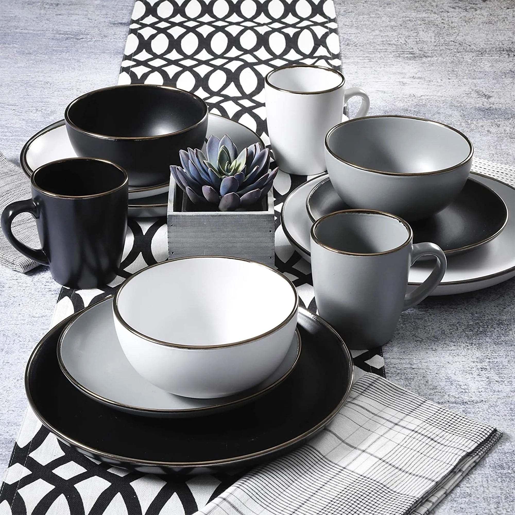 Delight in the perfect backdrop for your home-cooking creations with the Gibson Home Service for 4 Rockaway Round Stoneware Dinnerware Set in Matte White. This 16-piece dinnerware set is the perfect meeting place between contemporary style and everyday functionality. Every piece has a soft matte glaze finish that brings the latest on-trend colors to your dish collection. The Rockaway classic coupe shape looks great with any table setting and provides additional surface area for showing off delicious homemade meals. No matter what the occasion is this durable stoneware set is the versatile service set you need in your home. All items are made of durable stoneware that is dishwasher and microwave safe. The set offers service for 4 including 4 dinner plates, 4 dessert plates, 4 bowls, and 4 mugs. Bring fashionable elegance to your home today with the Rockaway dinnerware set and make sure to check out other color options for mix and match opportunities. Serve up modern elegance for every meal with the Rockaway Round Stoneware Dinnerware Set from Gibson Home.