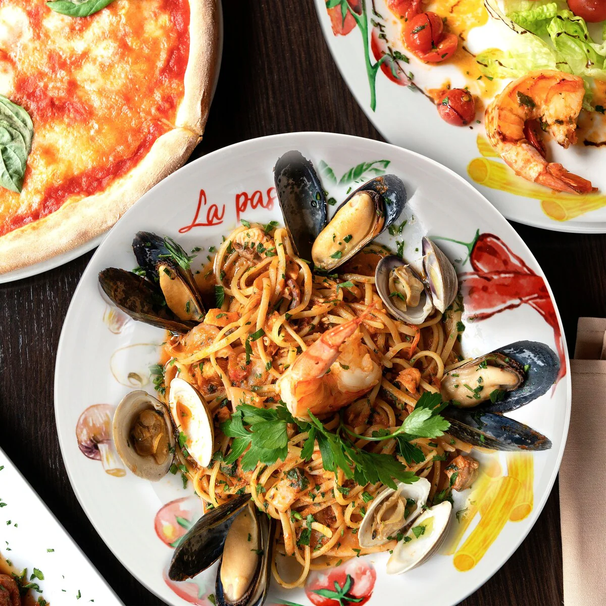 The Gibson Home Silva 5 piece round ceramic pasta bowl set lets you enjoy all your favorite Italian and Non-Italian pasta dishes. Each pasta bowl plate has an artistic array of Italian ingredients with a watercolor design. The serving bowl is large enough to contain more than enough food for all 4 plates. Never have your guest go hungry, serve a variety of meals from pasta, to meats, and even breads! This full serving set is dishwasher safe and microwave safe.