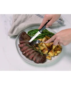 Sometimes you need more of a good thing – like Ginsu’s KISO steak knives! This 6-piece Back handled knife set sports the exclusive Ginsu serrations that makes these blades the perfect choice for when you need to set more than just a few place settings. Kiso is easy to own with blades that are polished to a mirror finish making them Dishwasher Safe! Kiso is easy to use. The exclusive Ginsu serration make small fruit and vegetable slicing and dicing effortless!
